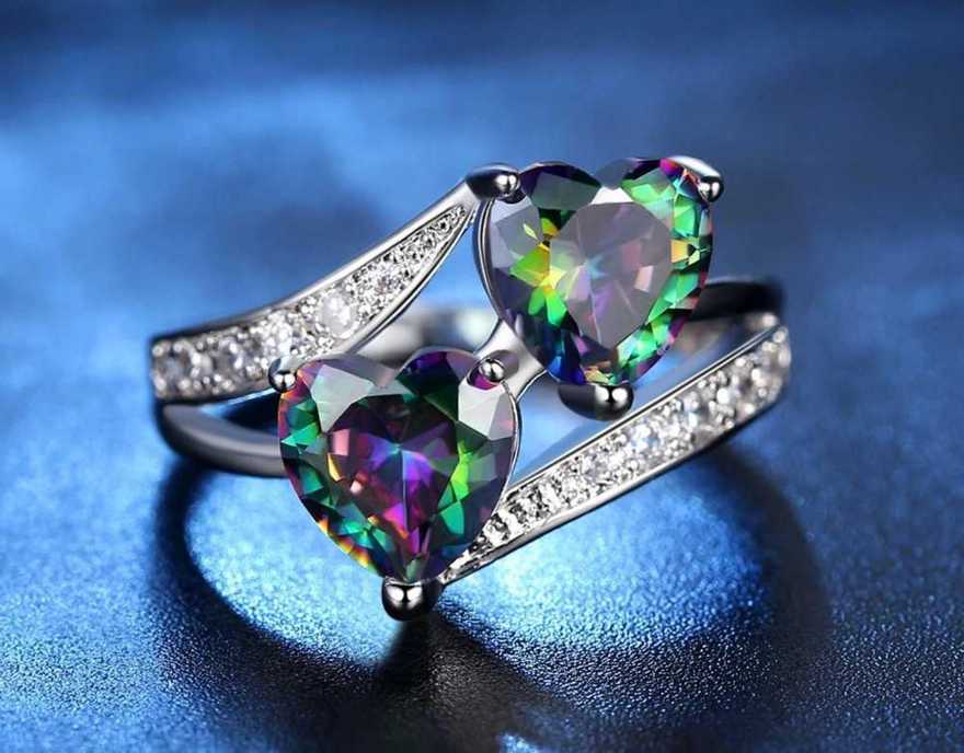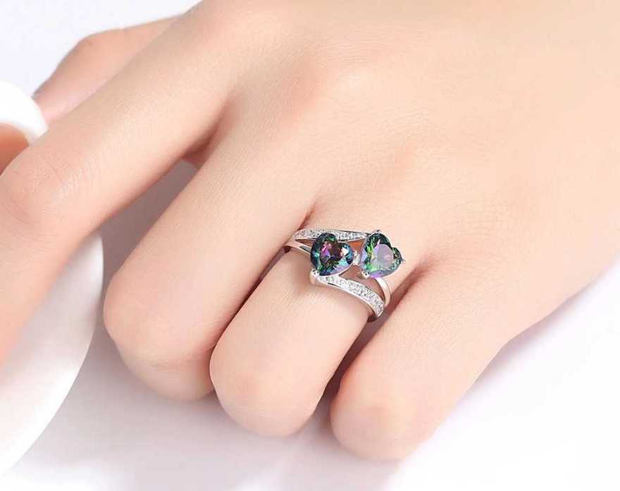 Stylish Double Heart Multicolor Stone Sterling Silver Zircon Ring For Women Girls |