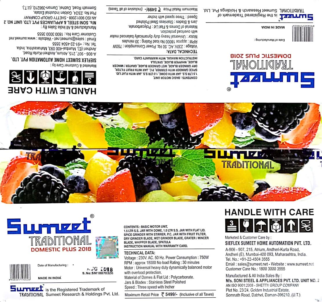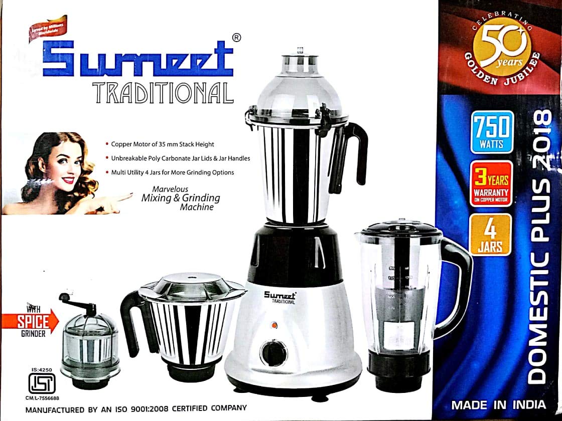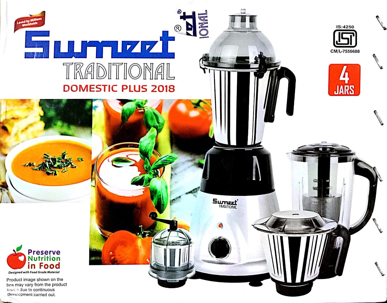 Sumeet Traditional Domestic Plus Steel 750W 2018 Mixer Grinder (White)