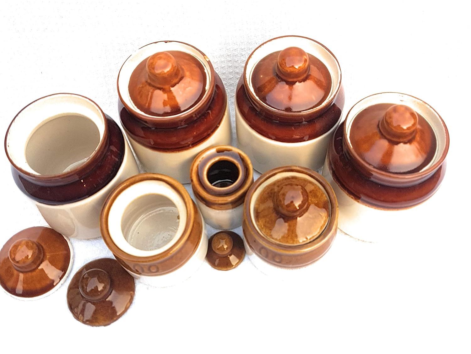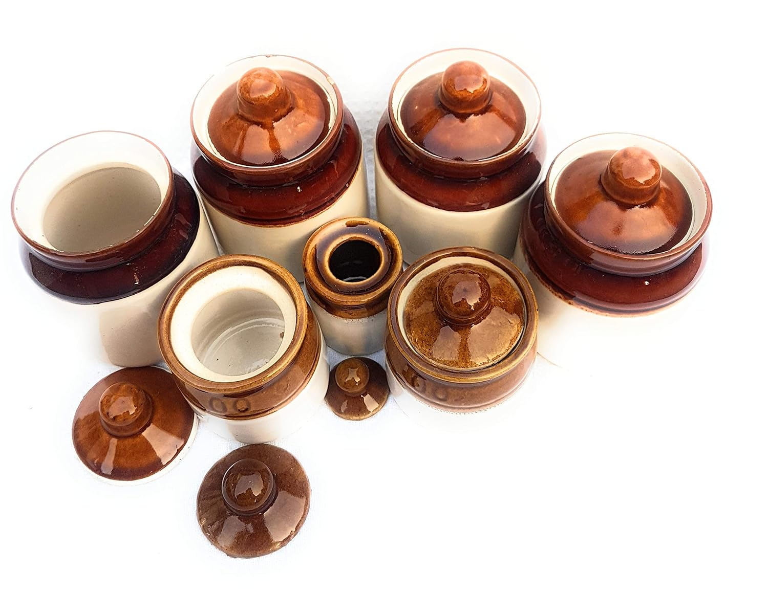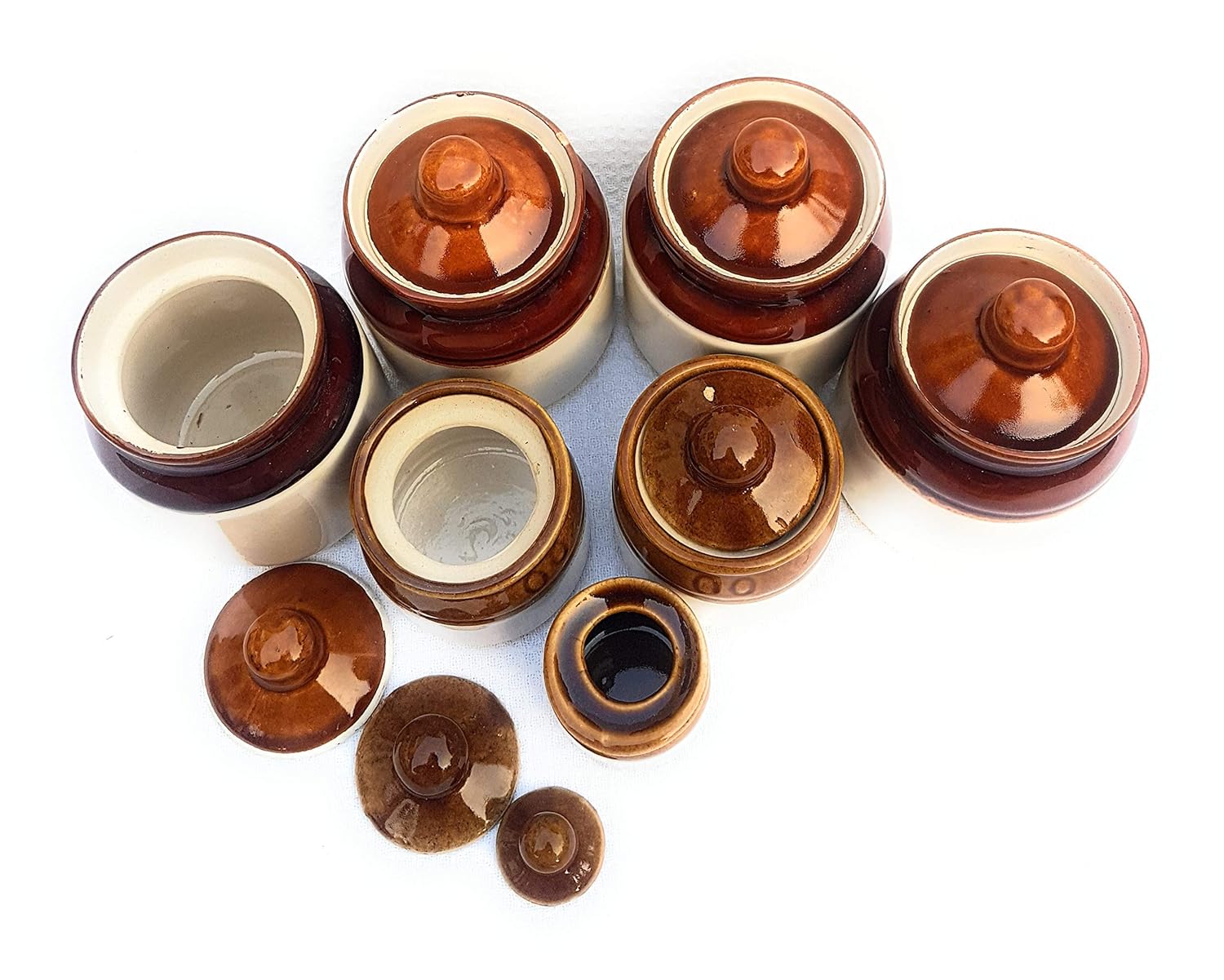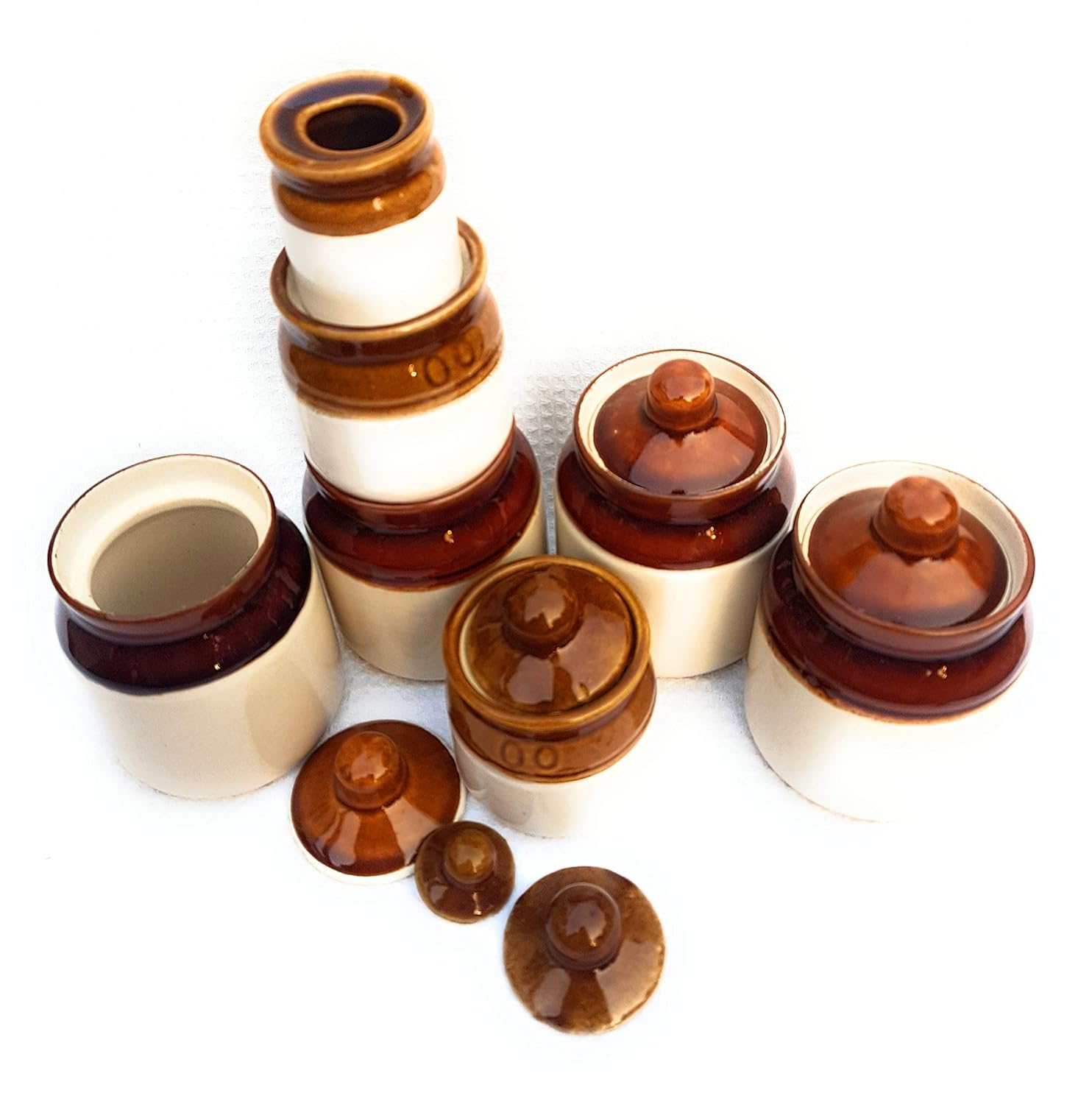 swadeshi enterprises Ceramic 180 ml Jars Set of 4 with two 100 ml Jar Plus 1 very small jar Set total 7 Jars Set