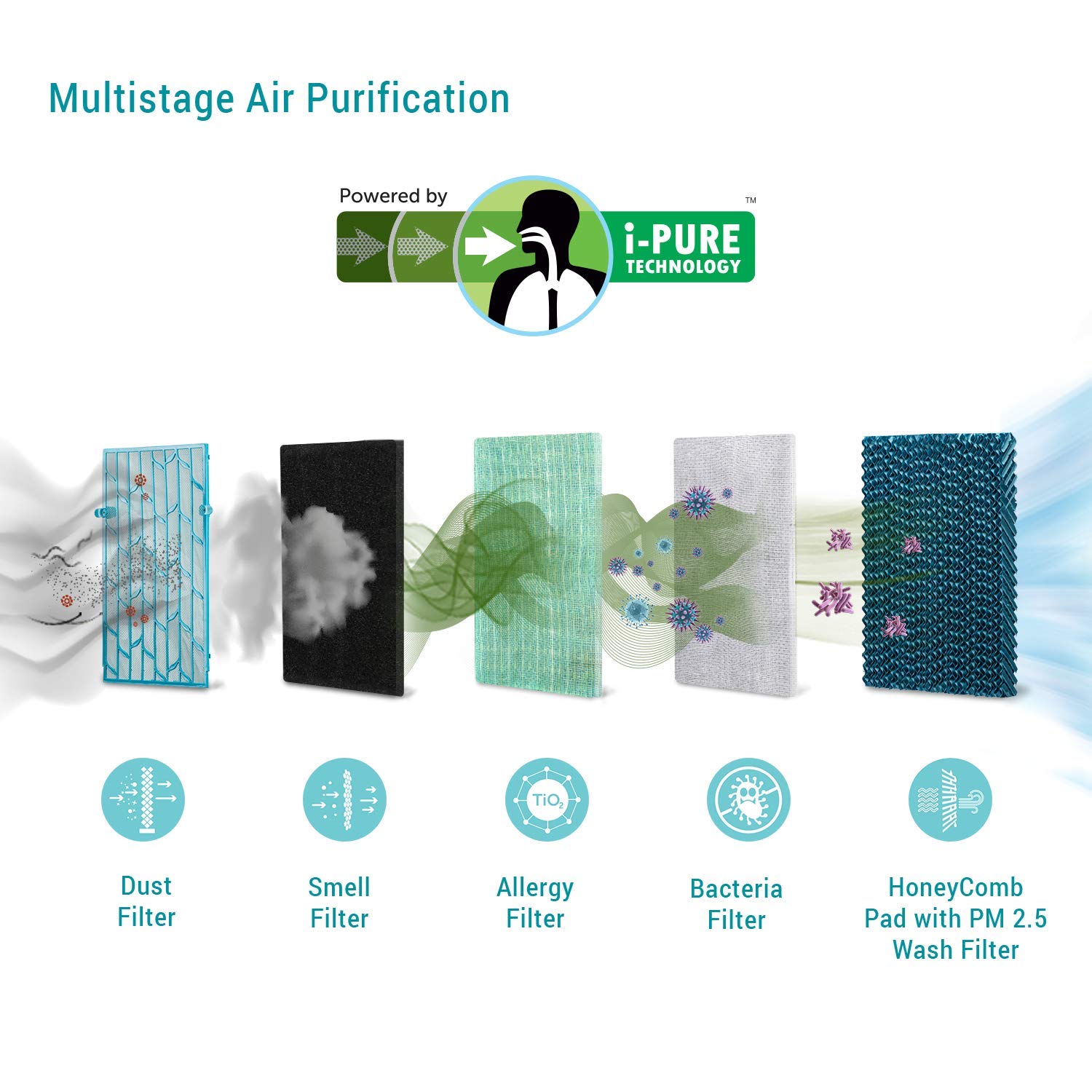 Mosquito and Dust net, auto louver movement, multi-directional castor wheels, works on inverter, ice chamber |
