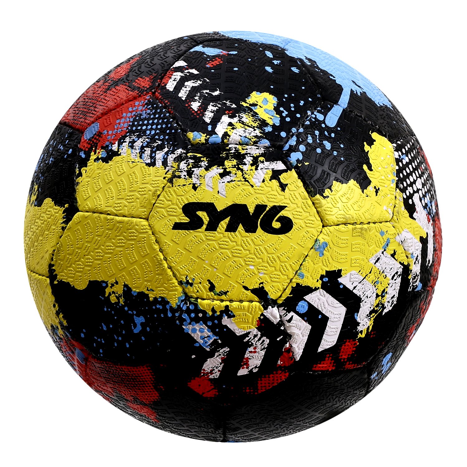 SYN6 Football, Street Soccer Ball Black, Made with Recycled Tyre, Excellent for Concret and Hard Grounds, Size 5 (Yellow & Black)