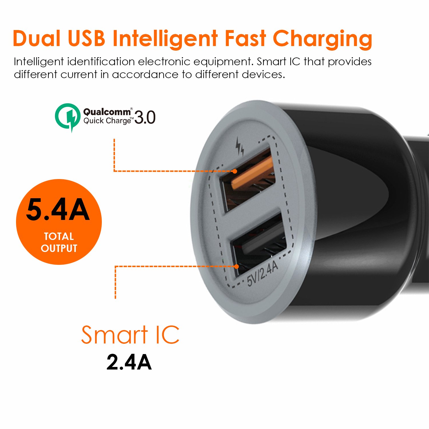 Safety first - multiple built-in safeguards to protect your devices against excessive current, overheating and overchargin, tested by ul, we comply to all qc 3.0 specifications, intelli sense with smart output - 5v 2.4A and qc 3.0, output - 3.6-6.5v/3A, 6.5-9v/2A and 9-12v/1.5A