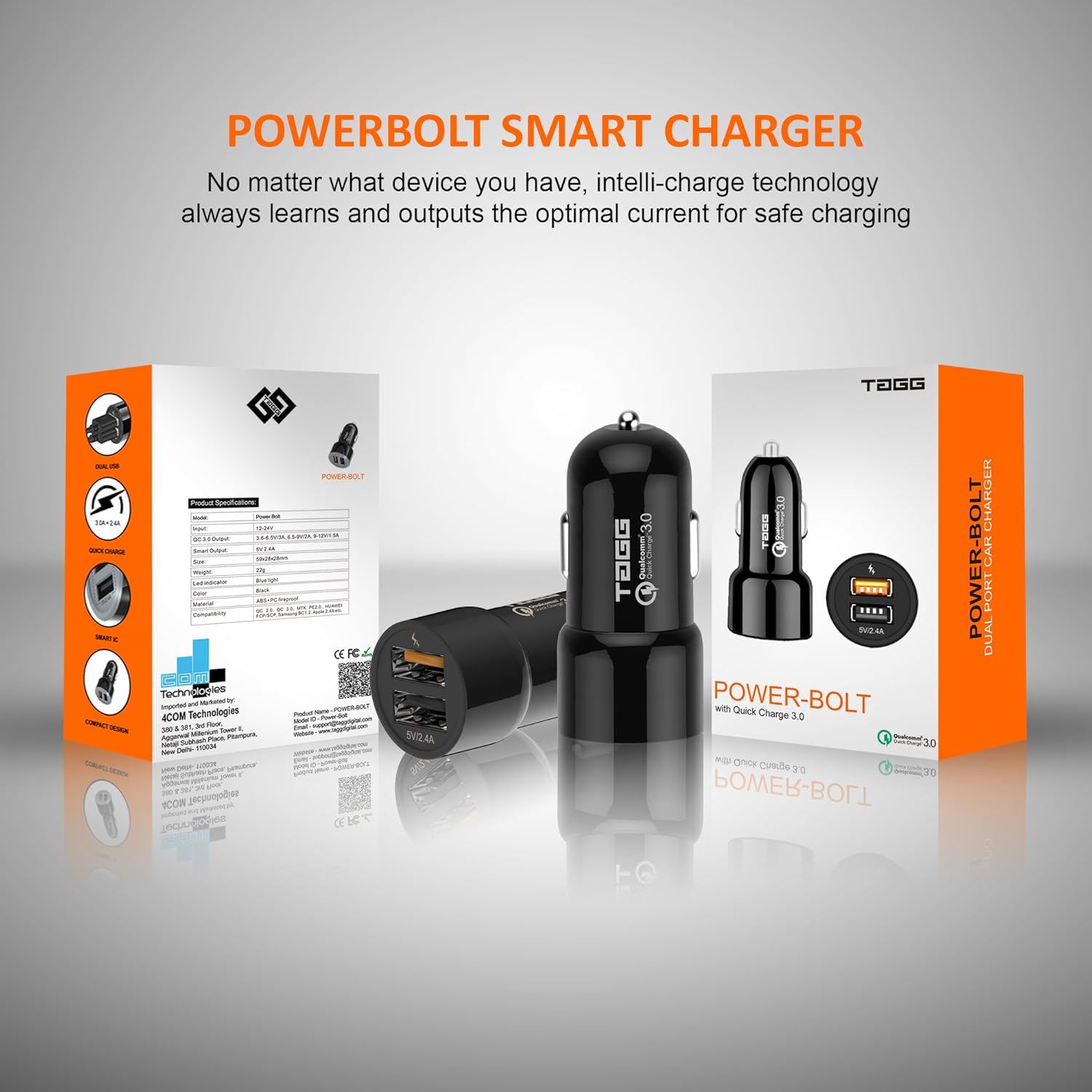TAGG power bolt exclusive qualcomm 3.0 certified dual usb car charger - possibly the latest, fastest and most efficient usb charging technology in the world, up to 4x faster than standard chargers, able to charge compatible devices to 80 percent in just 35 minutes