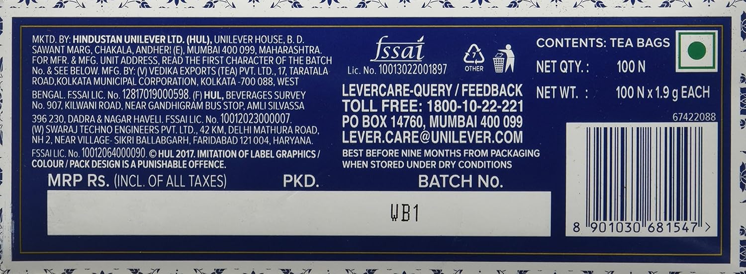 Taj Mahal Tea Bags, 100 Pieces