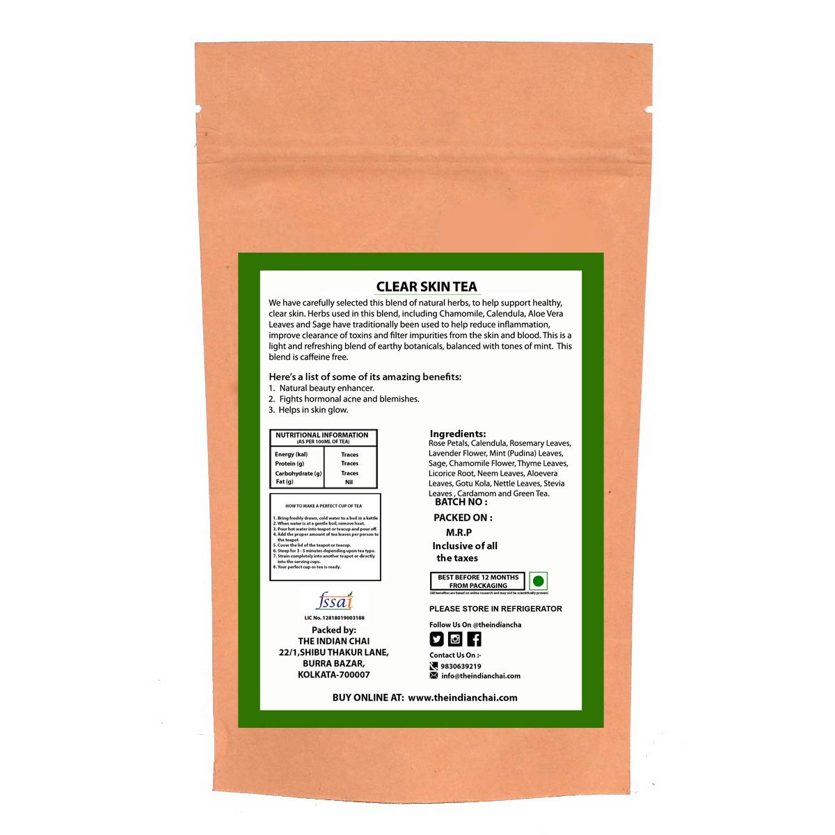 The Indian Chai - Clear Skin Tea 50g with Rose, Chamomile, Lavender Sage for Skin Glow, Natural Beauty Enhancer Tea