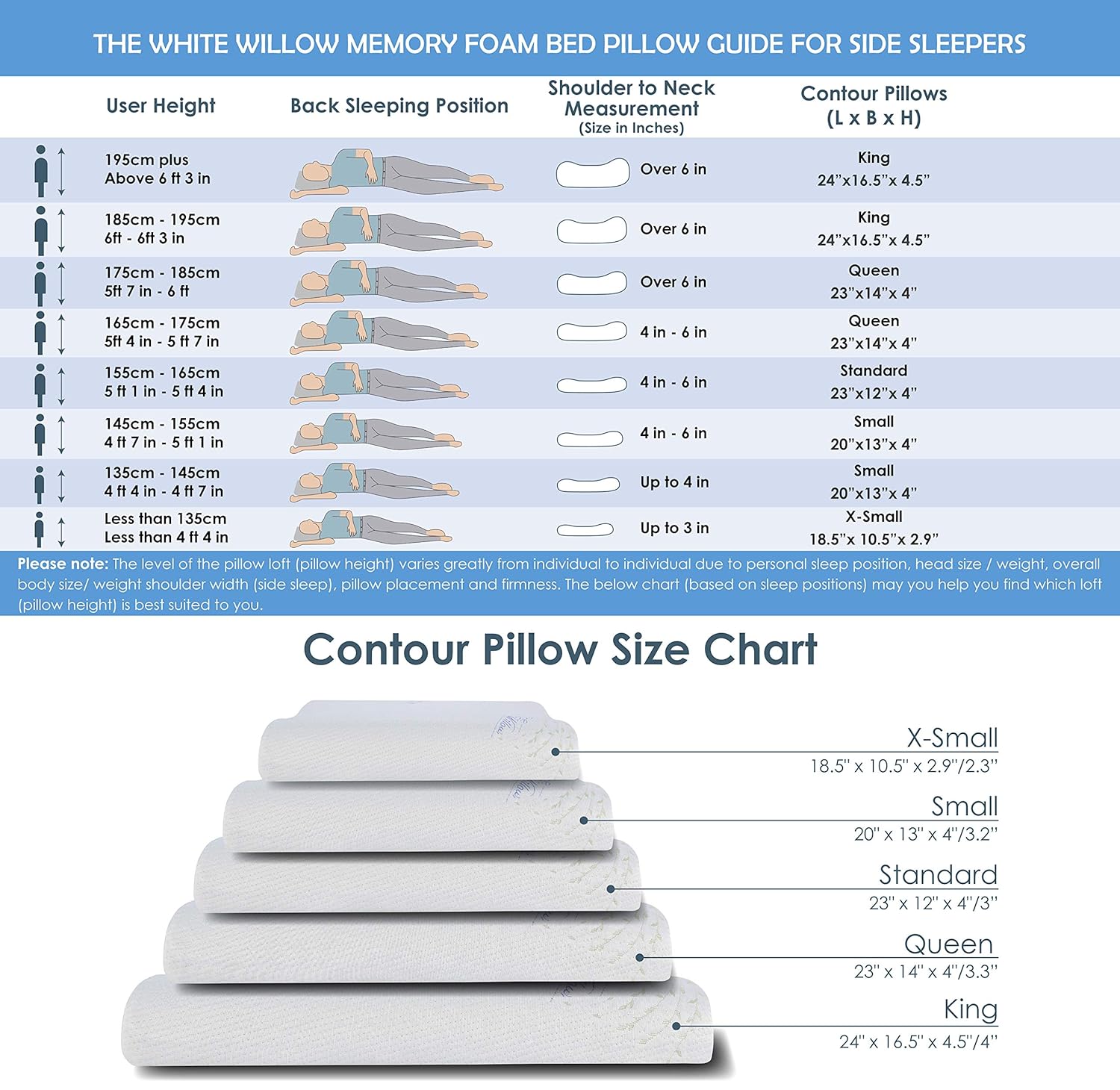 "HEIGHT & SIZE : The pillow is developed with several standard sizes, and contains different heights, where one can choose between the higher lobe, or the lower lobe to choose their comfort.The level of pillow loft varies from person to person due to personal sleep position, head size / height, overall body size / weight , shoulder width, etc. Suitable for all sleeping positions. Comes with a premium Outer Cover with a zip which is soft and easy on the skin."