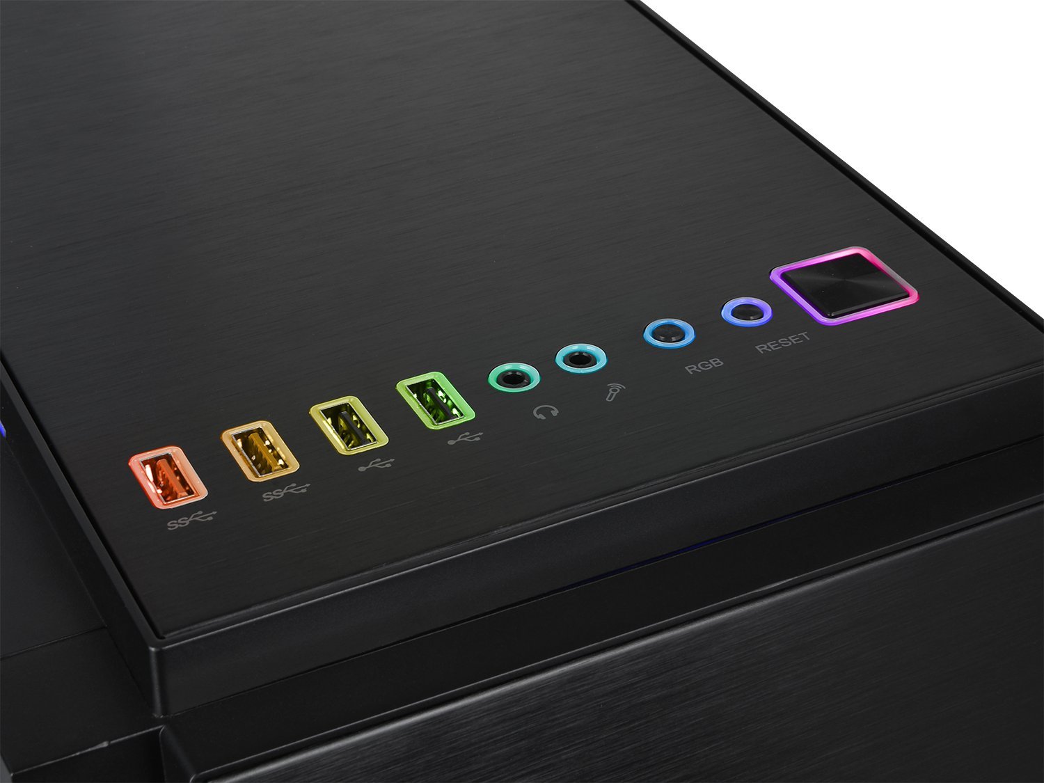 The new Versa C23 Tempered Glass RGB Edition Mid-Tower chassis comes with brushed aluminium front and top panels for elegant aesthetic, an 4mm thick enlarged tempered glass side panel for a direct view of the inner system and with the built-in RGB LED illuminating on front right and top right edges and also around top front I/O ports to give users a personal touch with 11 lighting modes whilst adding incredibly stunning visual perspective to the system. |