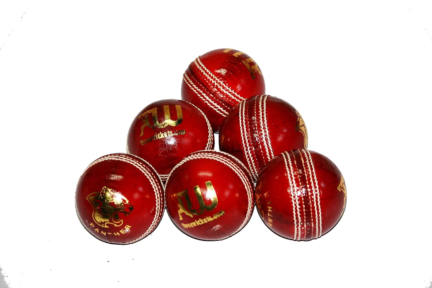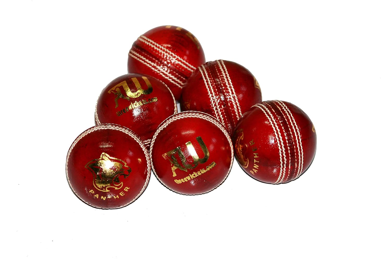 Three Wickets Panther Red Leather Cricket Ball (Pack of 6)