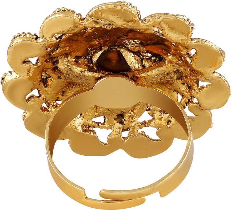 Traditional Flower Design Gold Plated Finger Ring For Women |