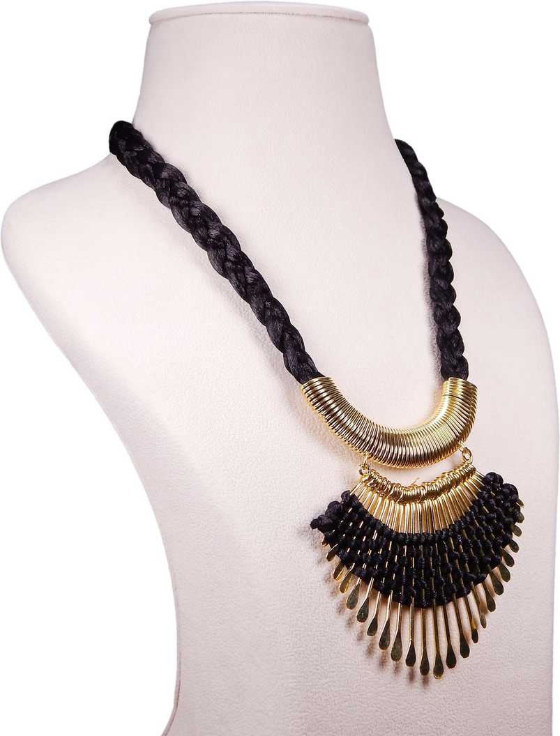 Traditional Tribal Black & Golden Charms Pendant Silk Thread Rope Necklace for Women |