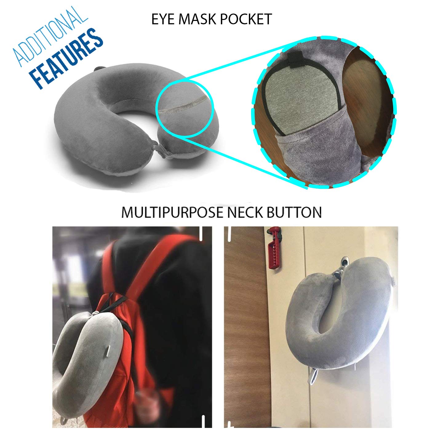 NEVER LOSE EYE MASK: Keep your eye mask safely in the pocket provided on the Neck Pillow
