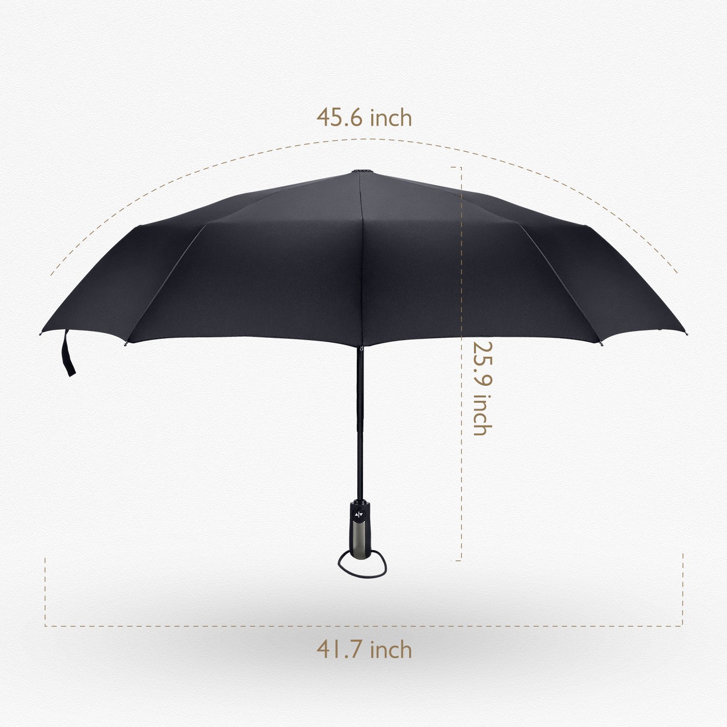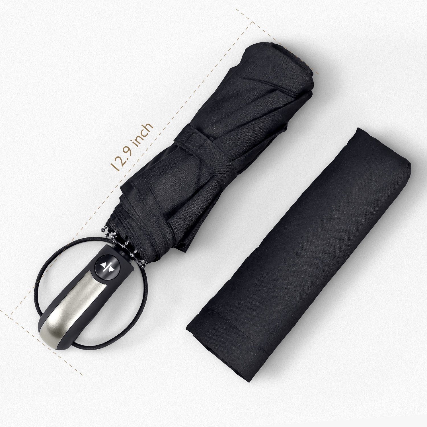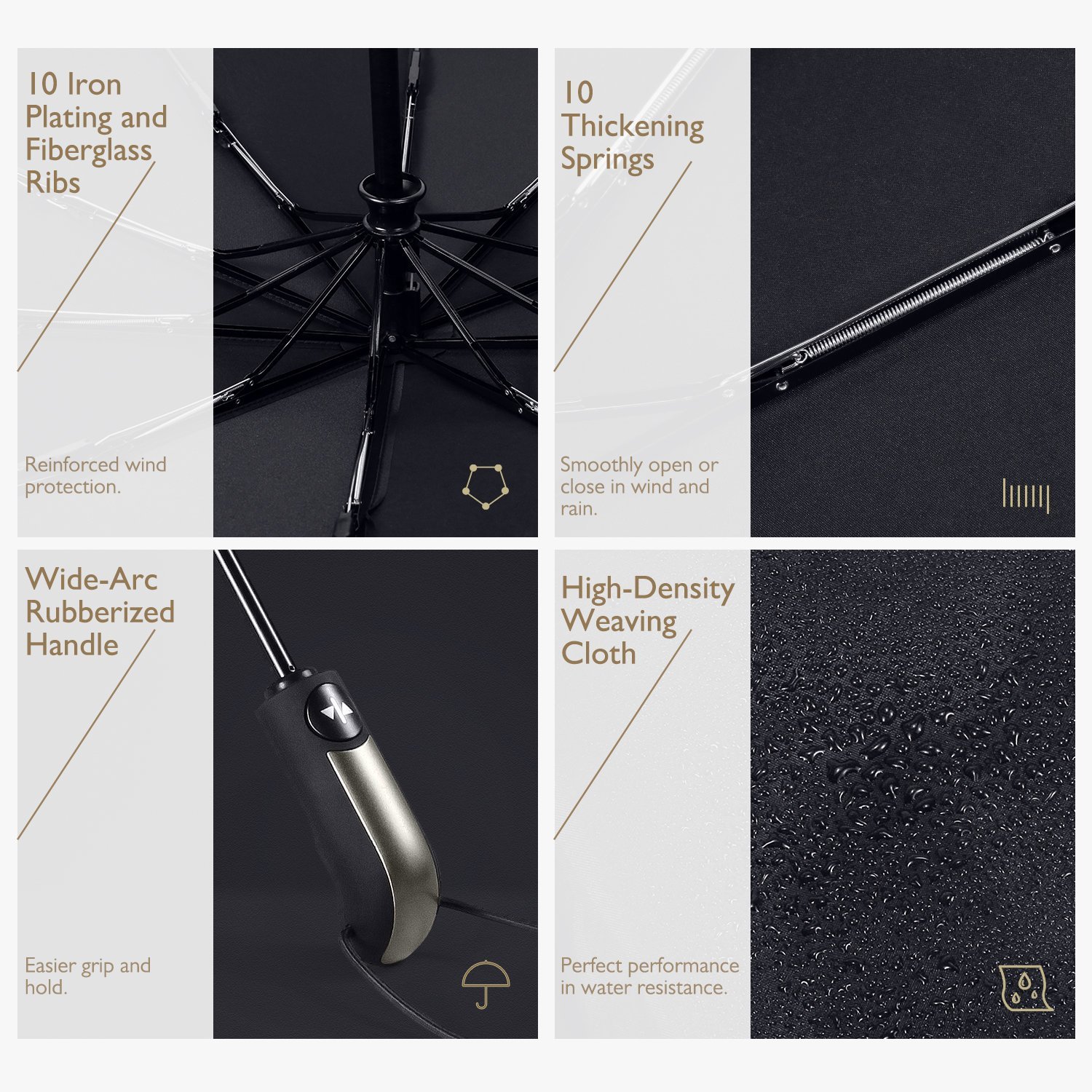 Travel Umbrella 10 Ribs Compact Windproof Umbrella with Reinforced Teflon Coating Canopy Folding Umbrella Auto Open Close for Men and Women