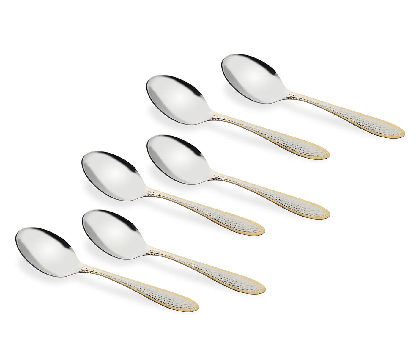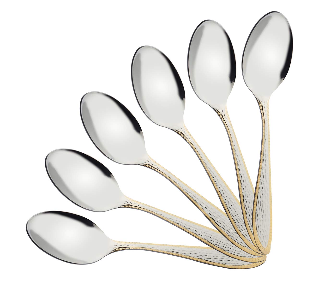 Tuelip Stainless Steel Dessert Spoon, Baby Spoon, Kids Spoon Beautiful Hammer Finish On Handle Spoon Set 6 Small Size