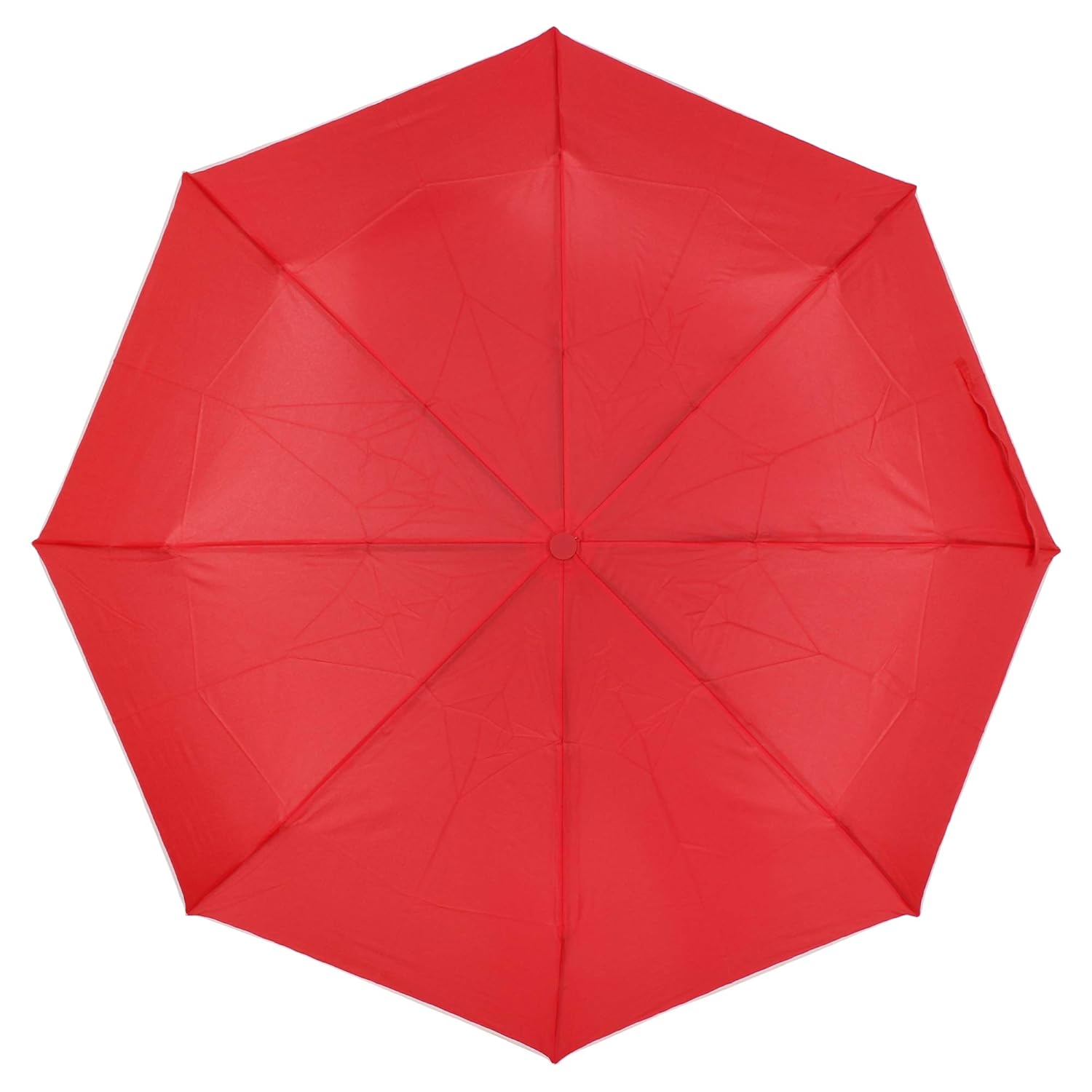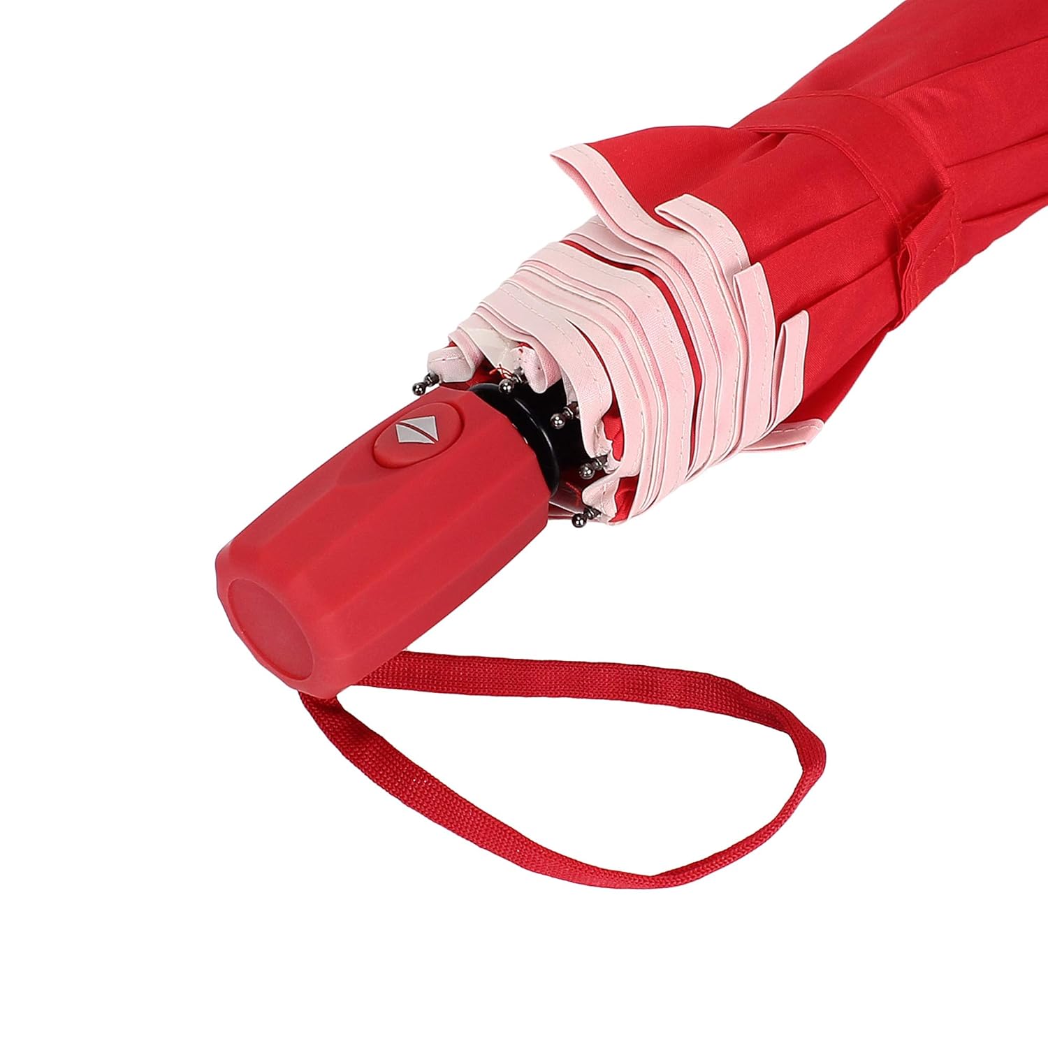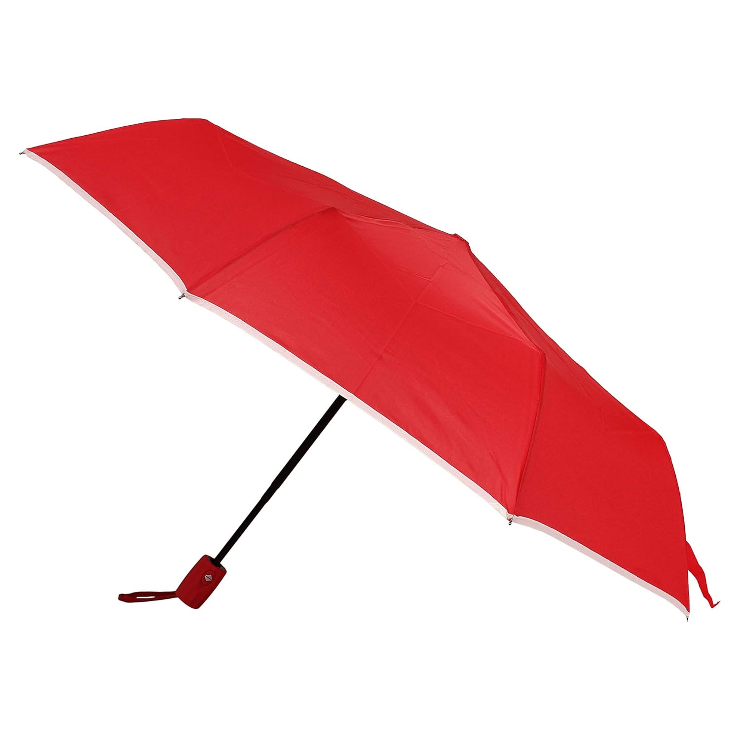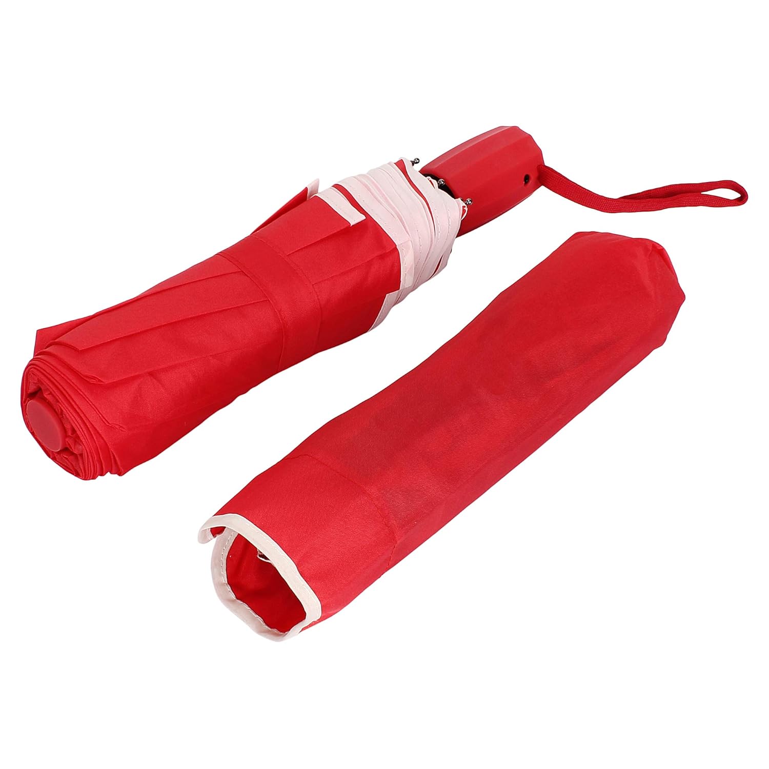 Umbrella Mart red Colour with white border solid 3 Fold fully Automatic Open & close with a touch of a button Umbrella with cover, For protection against Rains & Sun for Men, Women and Girls |