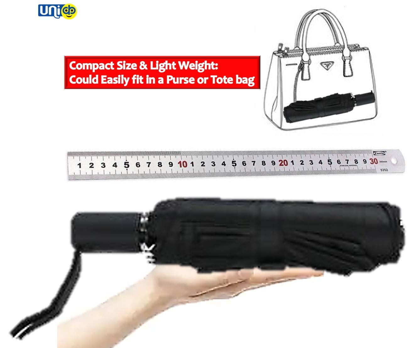 UNIq Automatic Open Function 3-Fold Umbrella – UV Protection Compact Lightweight Windproof with Anti-Slip Grip for Travel or Summer Wedding Gifts Evergreen Black Colour Umbrellas for Men Women Provide you with the most professional protection from rain or sunshine. Well-constructed umbrella frame with very cute pattern. Comes with its' own sleeve also with the same print. Functional: Semi-automatic system for one hand design only. One auto open & close button designed make you easy to touch it to expand or collapse It’s convenient to open and close, whether you're getting on the car or getting off the car, you don't have to worry about getting wet. Strong aluminium material umbrella ribs and centre pole make it more durable to withstand high winds and prevent the umbrella from flipping inside out. The generously sized ergonomic anti-slip rubberized handle more solid in the hand, lightweight design makes it comfortable to hold for a long time. At 44 inches when fully opened, wide enough to keep you and your friends out of the rain, folded at the size of 11.8 inches, portable enough for a handbag. |
