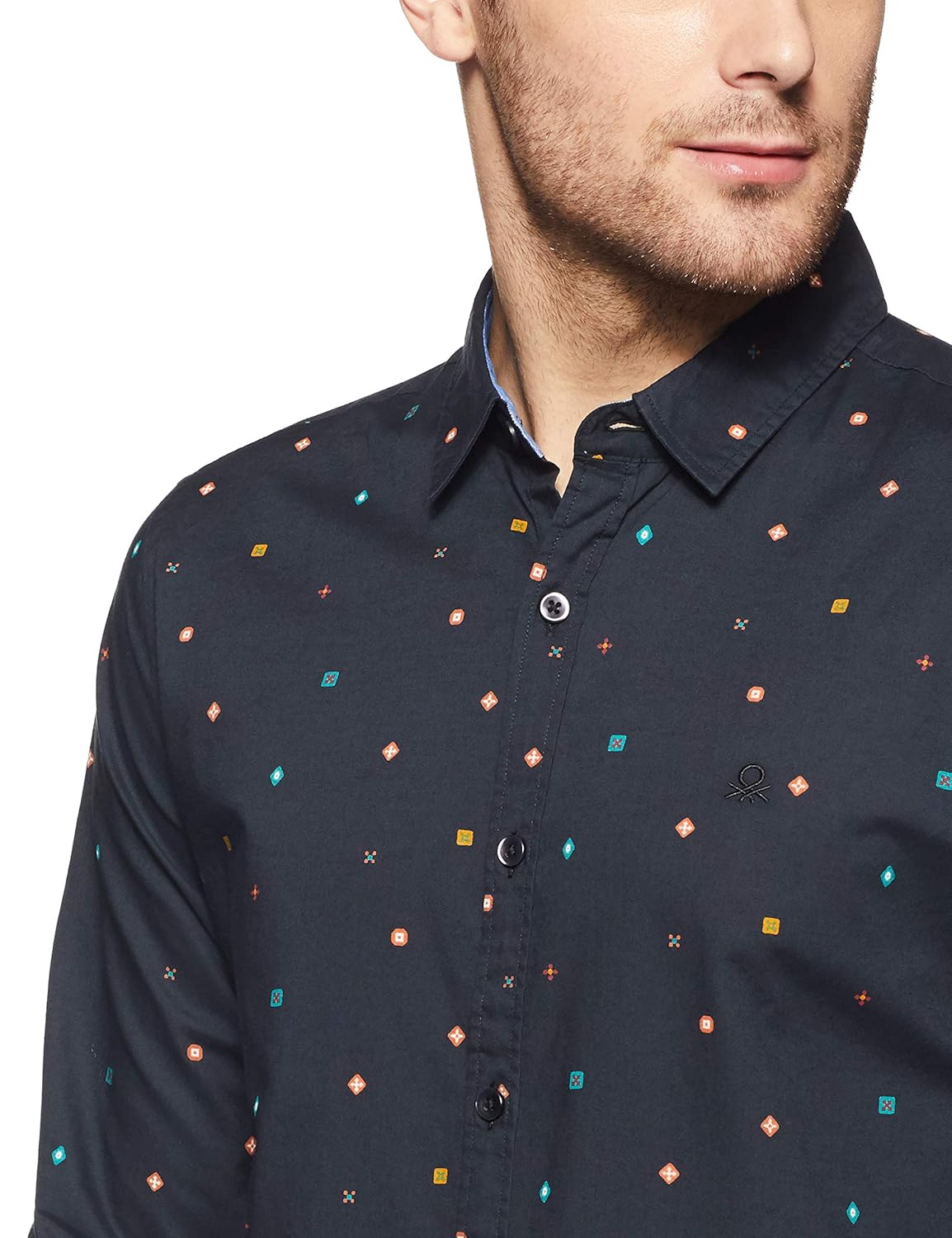 United Colors of Benetton shirt for men's fabric use 100% cotton, f/s foundation printed oxford shirt slim fit pattern printed, long sleeve regular collar casual.