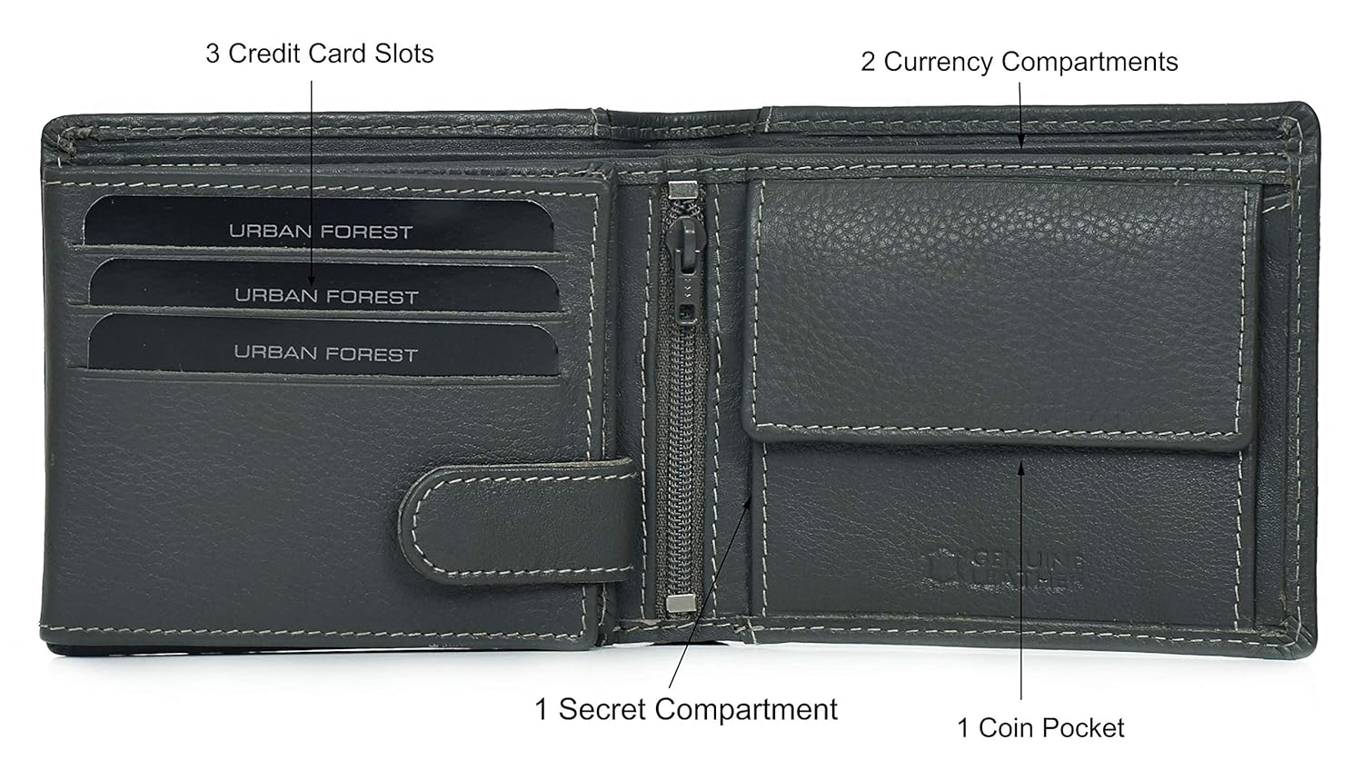 INGENIOUS DESIGN – Keep all your essentials neat and organized in this stylish wallet. It’s typically a bi-fold wallet with a button closure inside which opens to reveal an extra flap. It has 6 in-build card slots, 2 currency slots, 1 secret compartment, a coin pocket and 3 transparent windows for your Driver’s License or work ID. The most distinctive feature of this wallet is an inside zippered compartment which gives you ample space to keep important bills or notes.