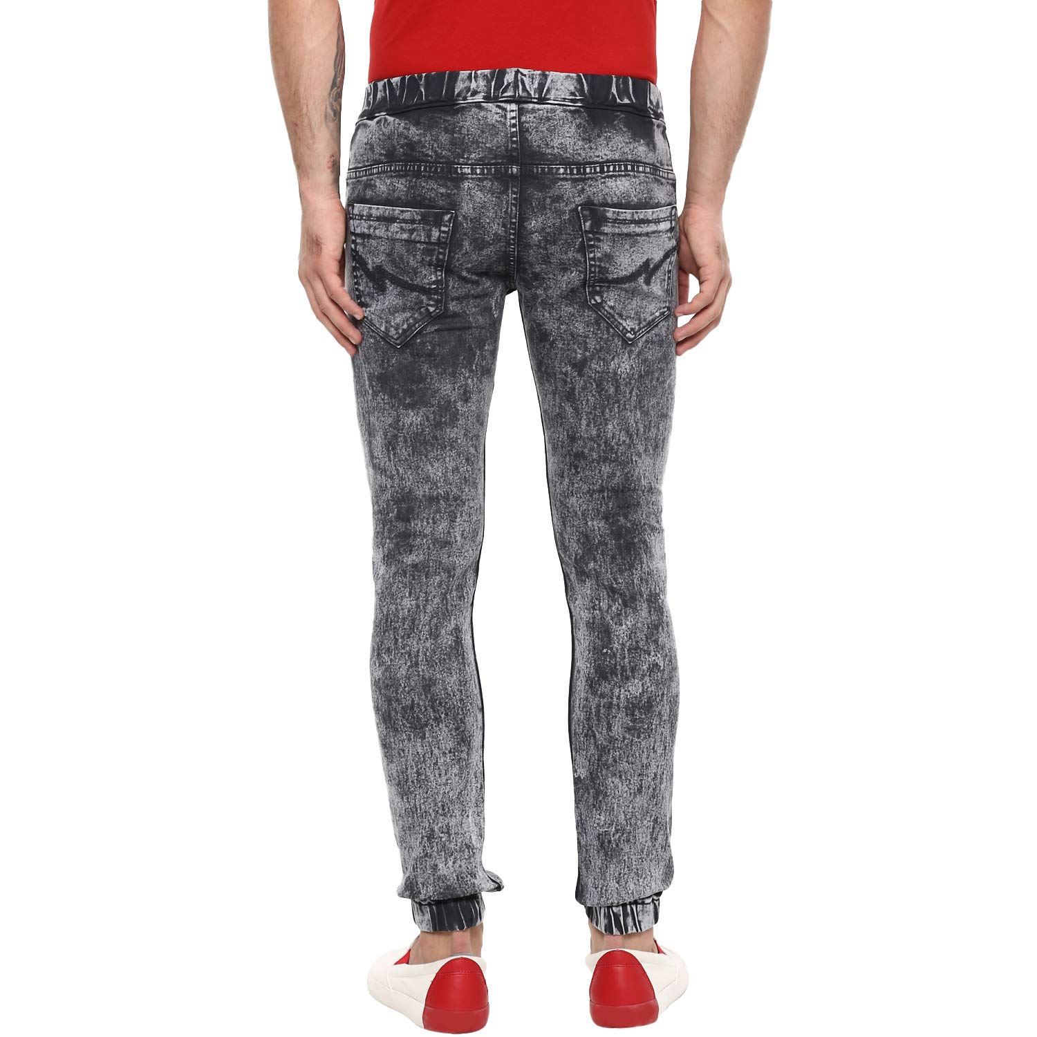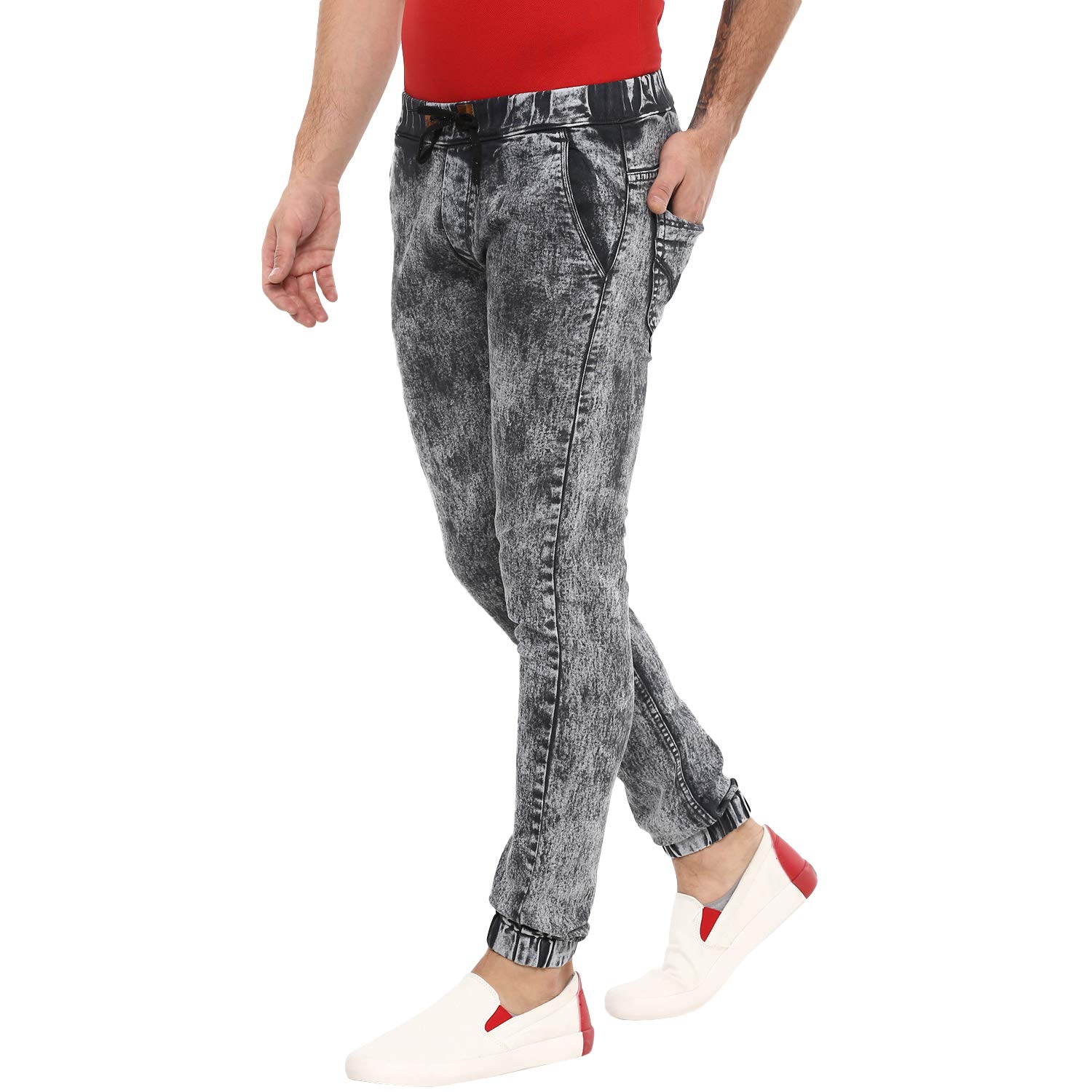 Stylish Heavy Washed Dark Grey Jogger Jeans - Elasticized Waistband with Drawstring and Elasticized Hem