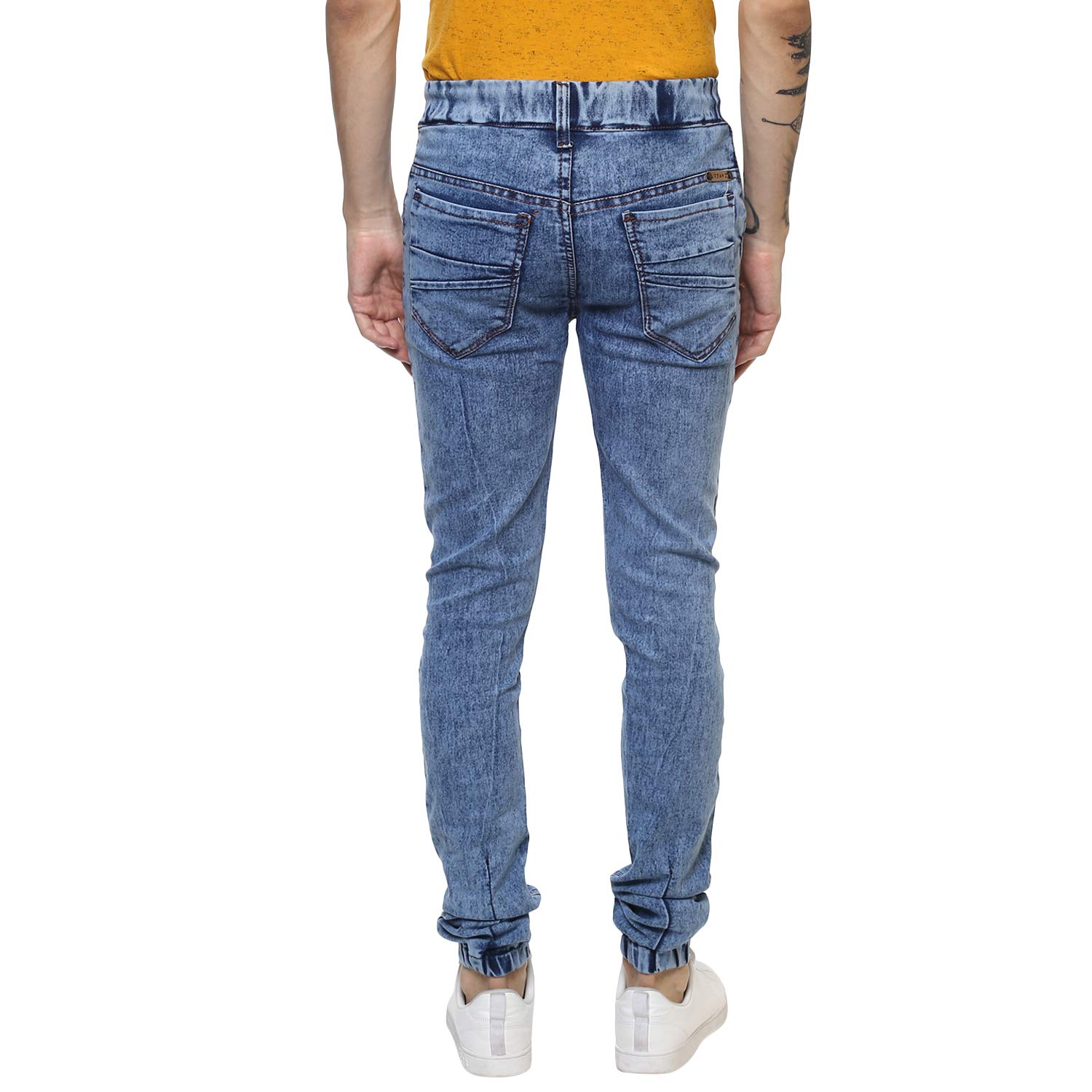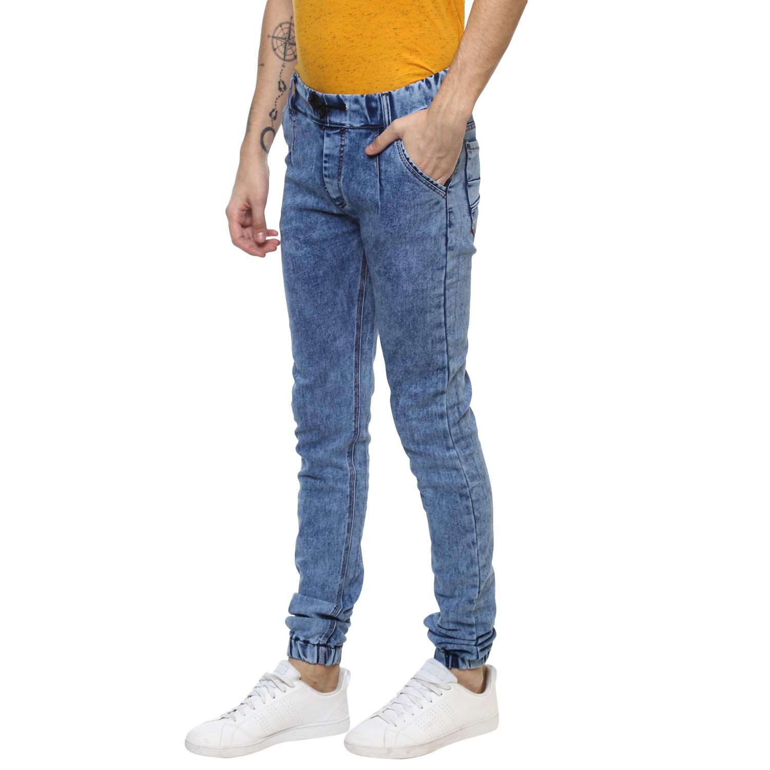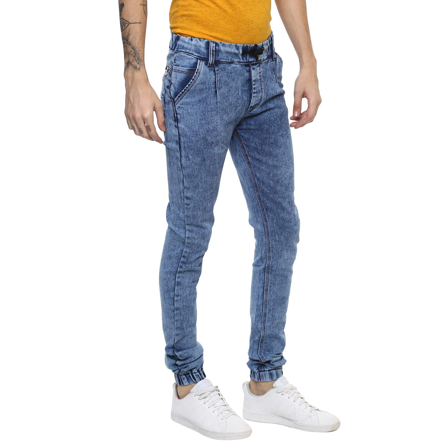 Stylish Heavy Washed Light Blue Jogger Jeans - Elasticized Waistband with Drawstring and Elasticized Ankle Rib