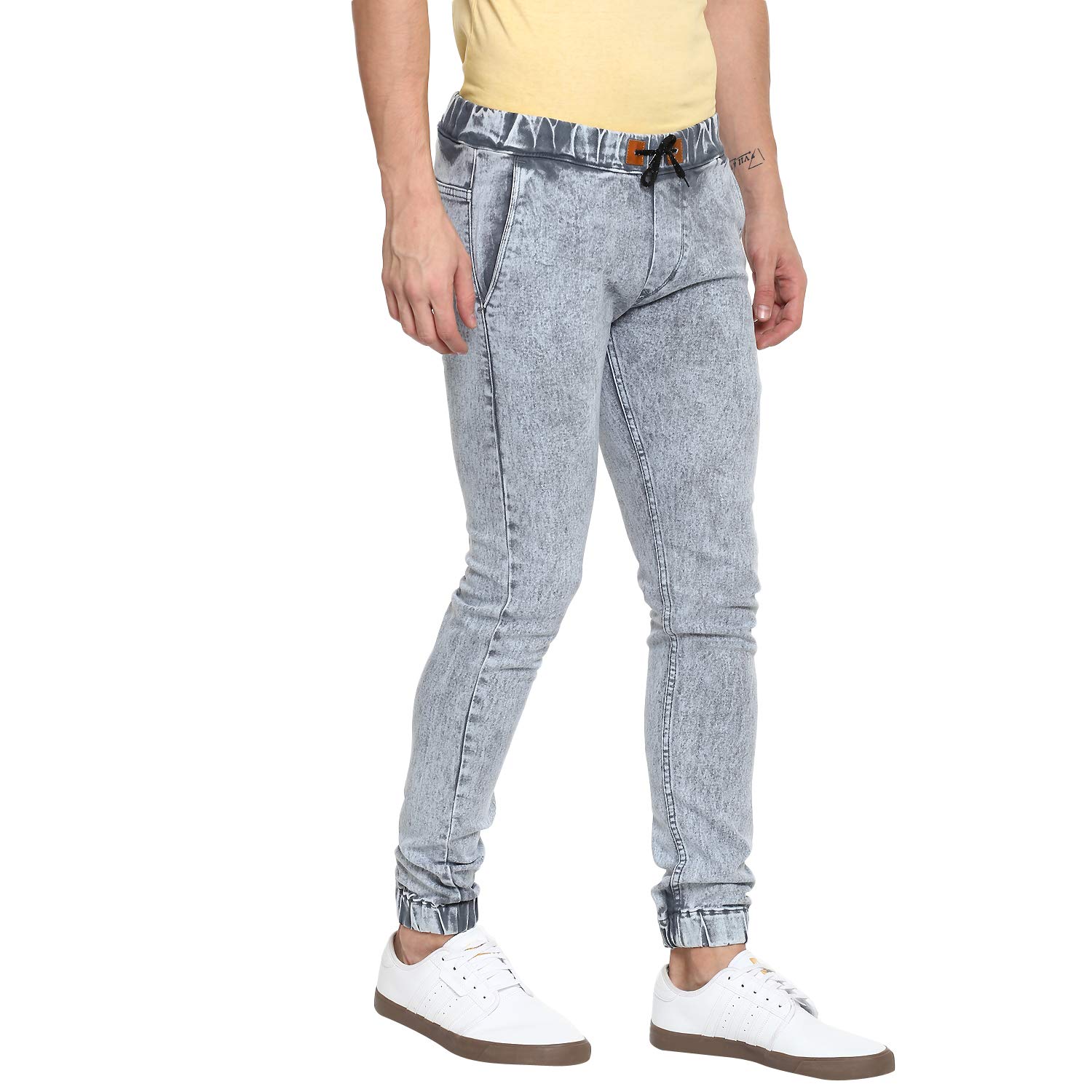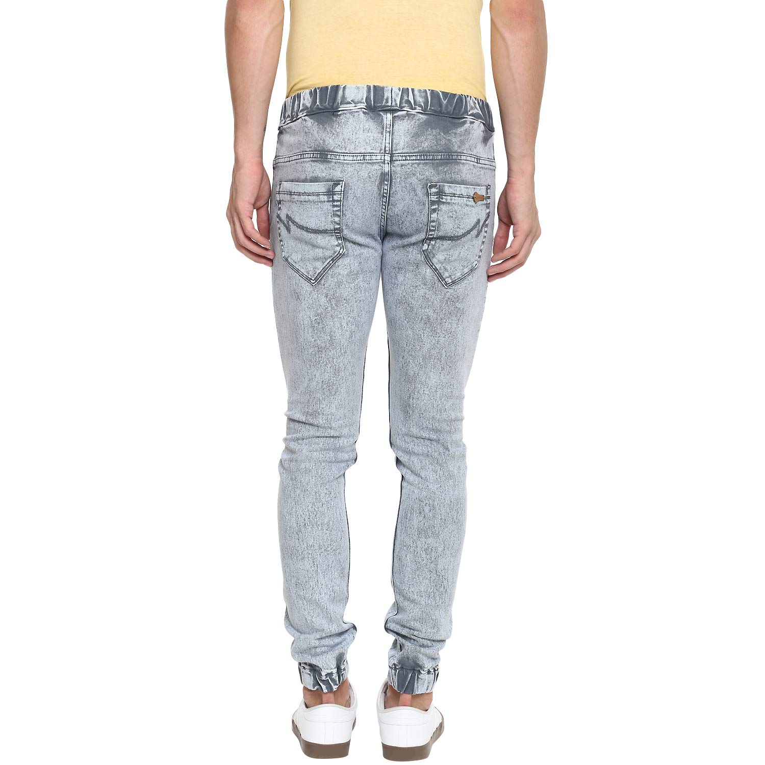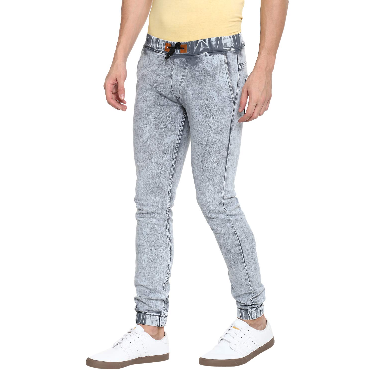Stylish Premium Heavy Washed Light Grey Jogger Jeans - Elasticized Waistband with Drawstring and Elasticized Hem
