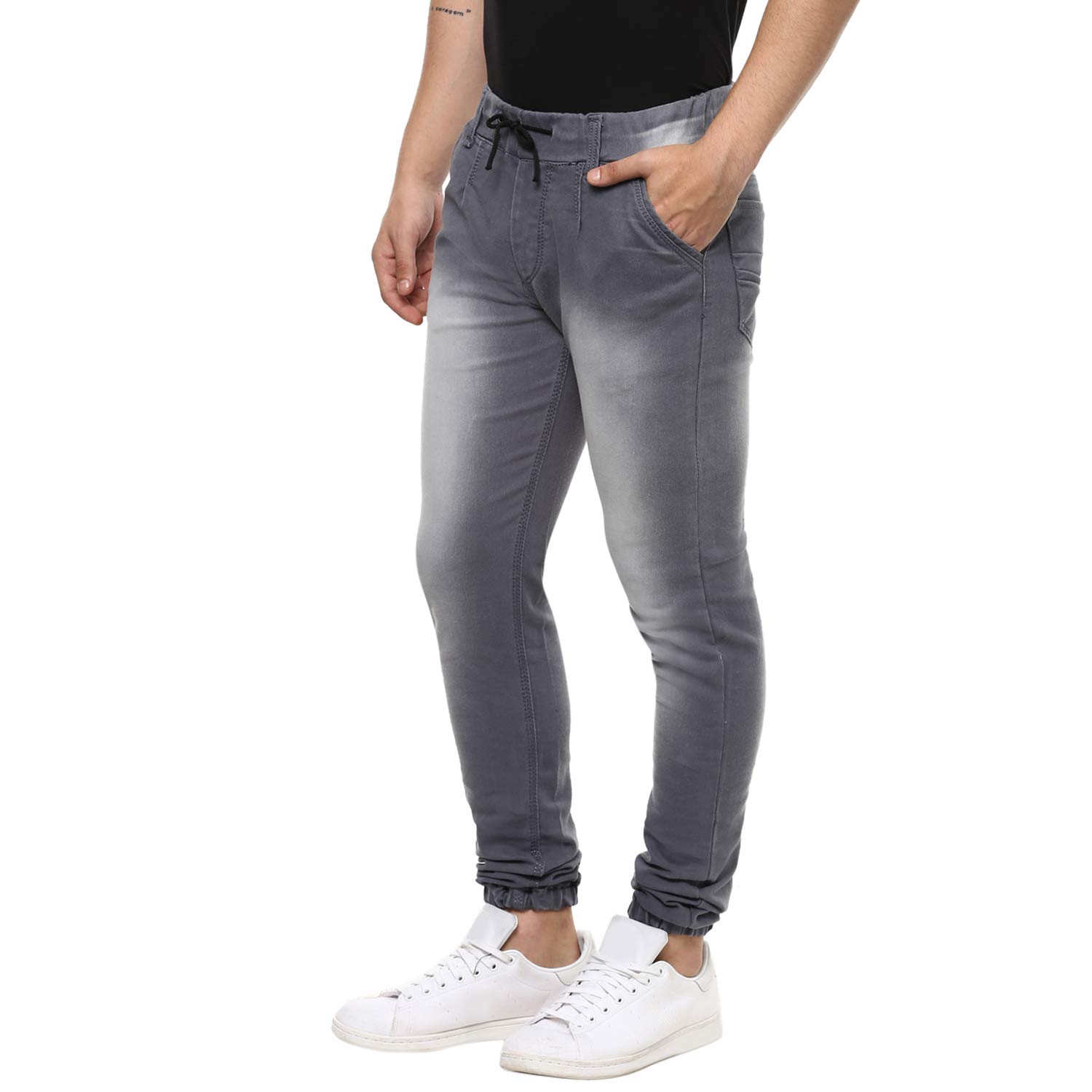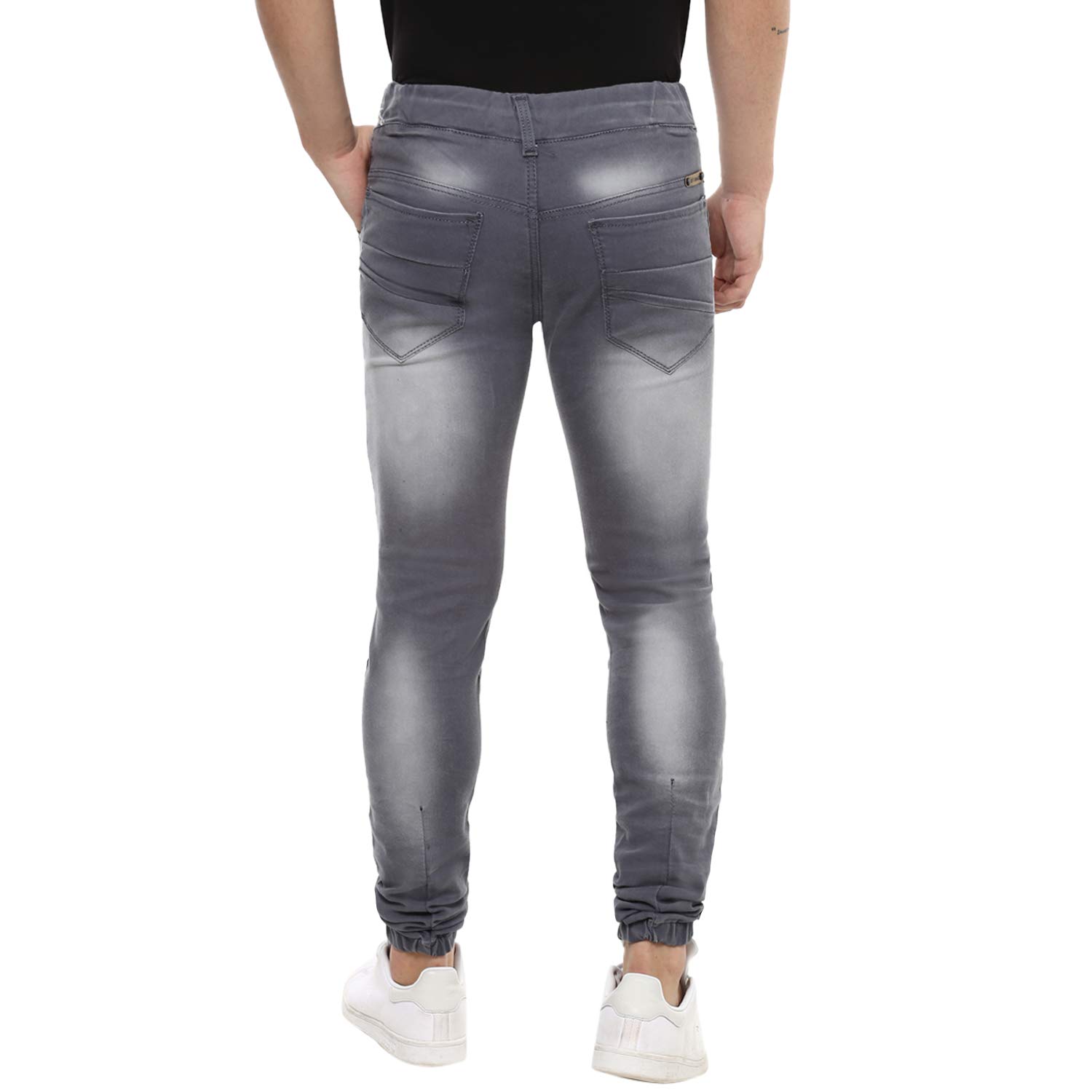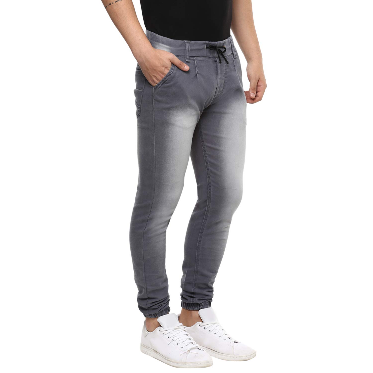 Stylish Heavy Washed & Vibrant Grey Jogger Jeans - Elasticized Waistband with Drawstring and Elasticized Hem