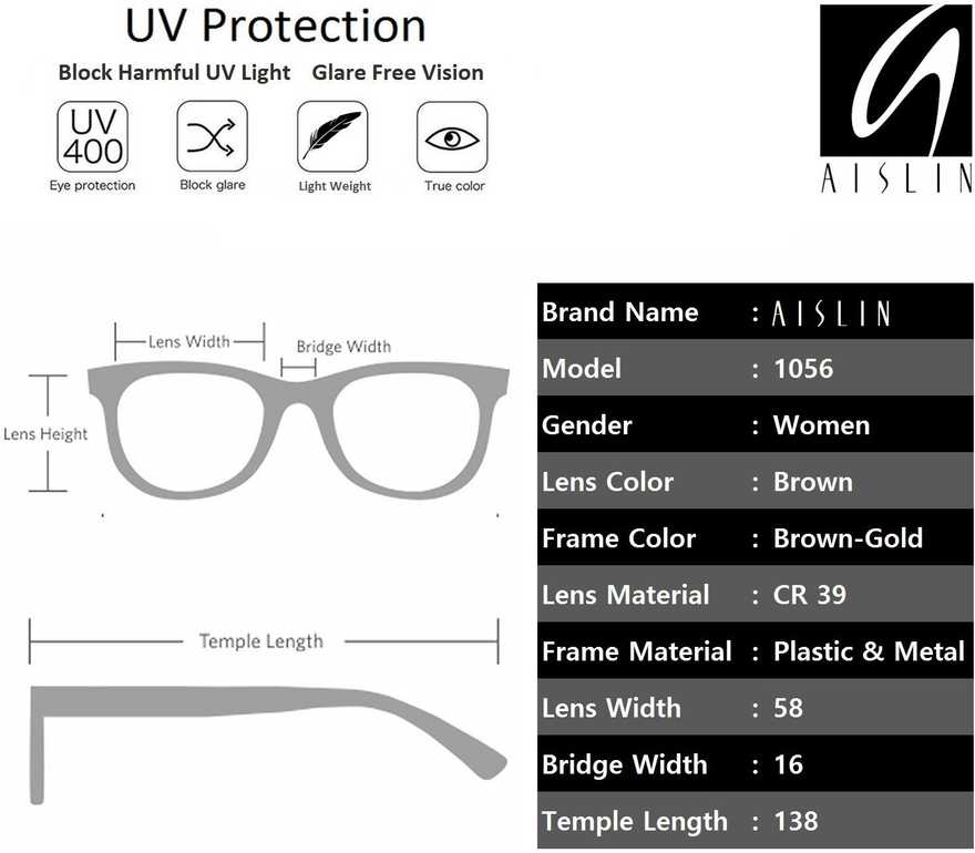 1 AISLIN Sunglass, 1 Canvas Zippered Case with Hook, 1 Micro Fibre Cleaning Cloth |