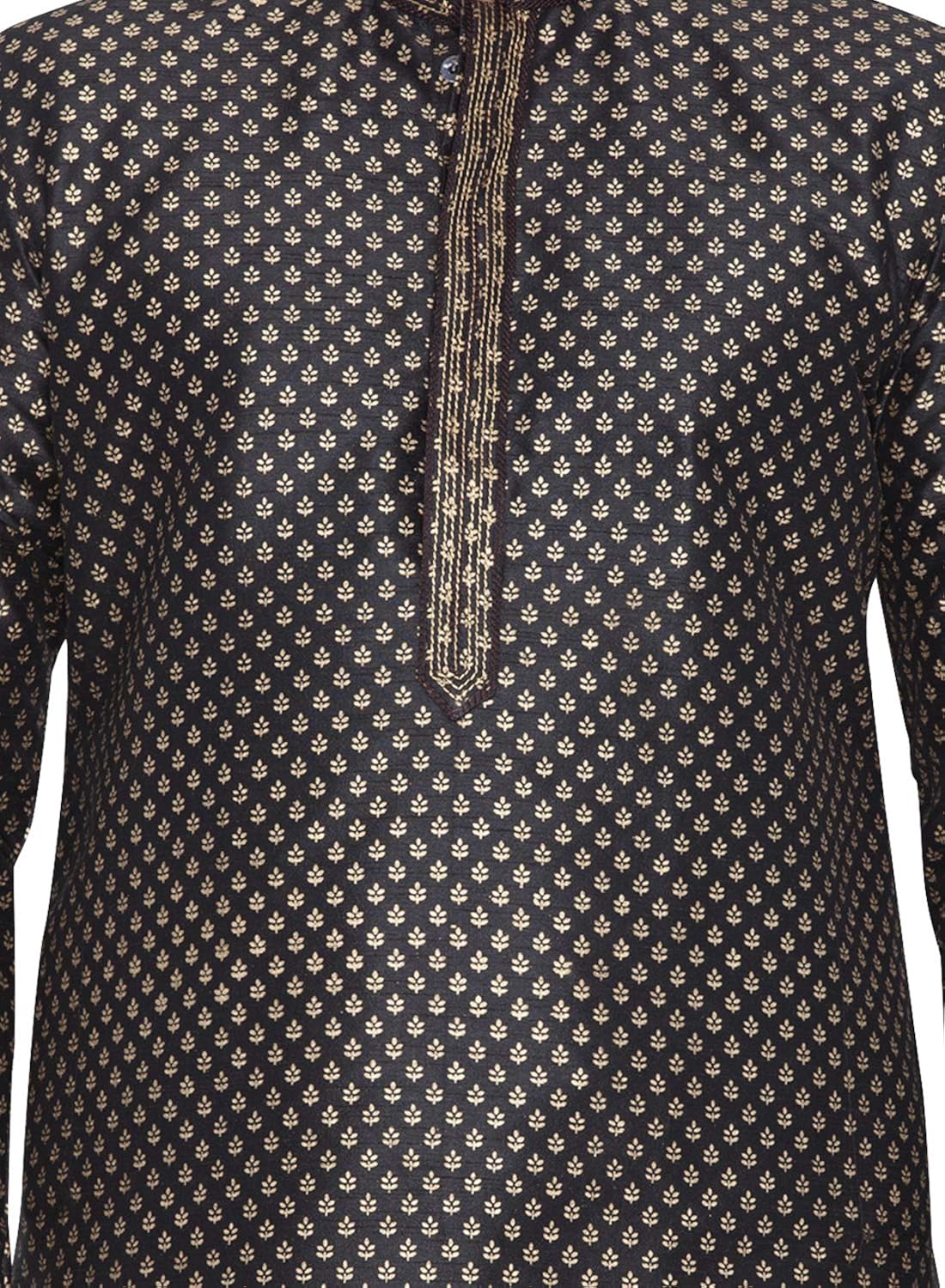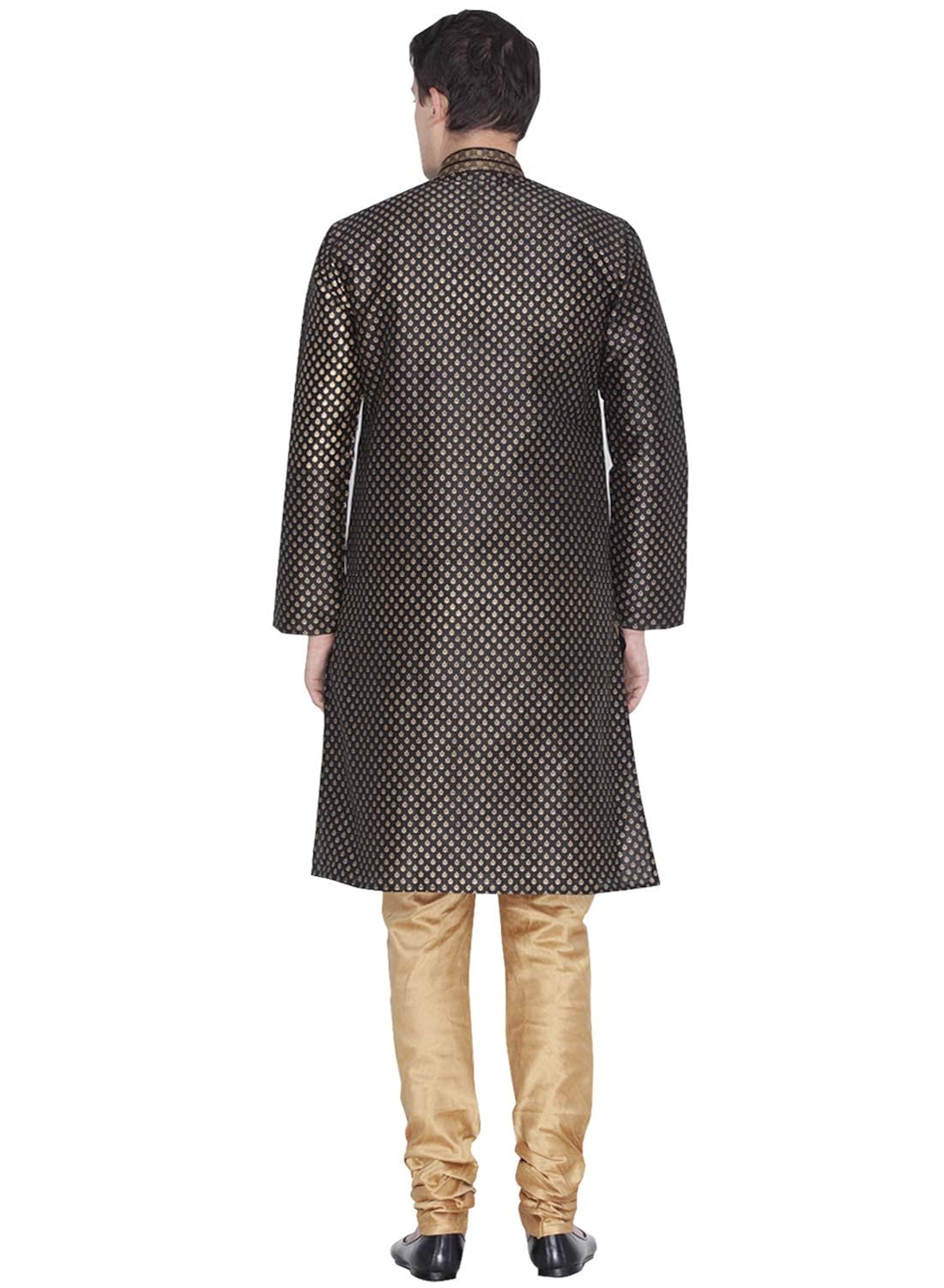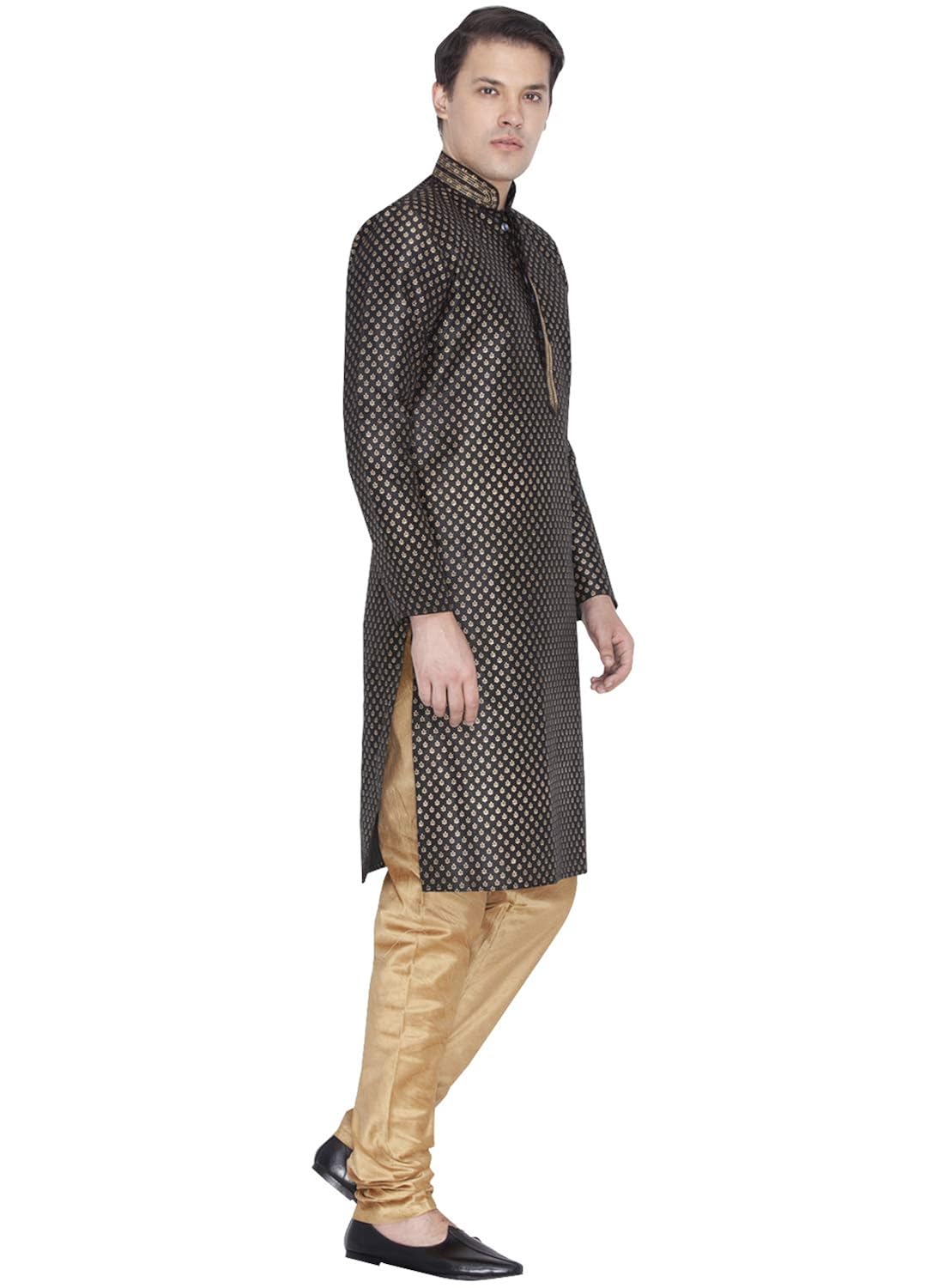 Vastramay brings to you this Stylish yet Comfortable Men Black and Rose Gold Gold Foil Ethnic Motif Printed Kurta With Churidar Pyjama Set. Adorn it for a perfect Classy & Trendy look. Pair it with a juti or a mojari for the Royal feel. |