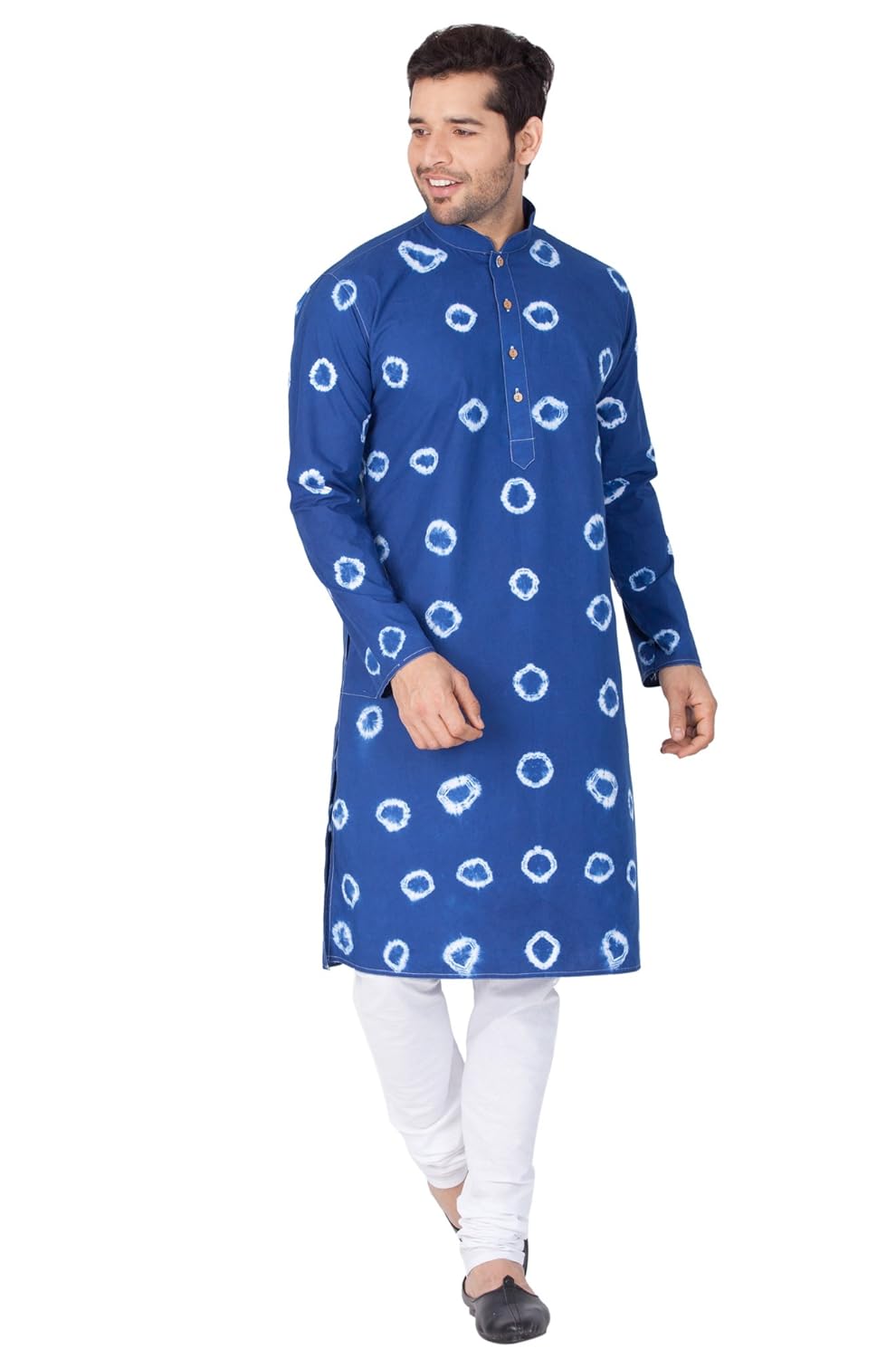 Vastramay brings to you this Stylish yet Comfortable Men Egyptian Blue Dyed Kurta in Rajasthani Bandhni Style and Churidar Pyjama Set. Adorn it for a perfect Classy & Trendy look. Pair it with a juti or a mojari for the Royal look. |
