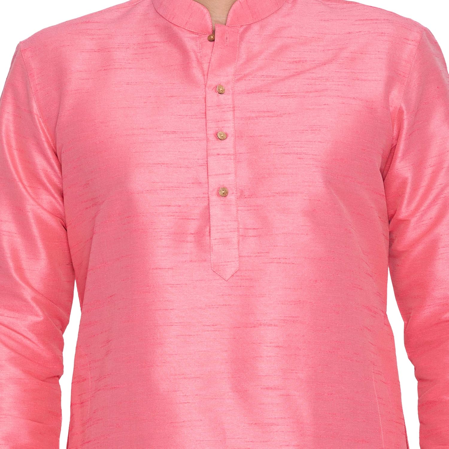 Vastramay brings to you this Stylish yet Comfortable Men Pink Cotton Silk Solid Kurta and Churidar Pyjama Set. Adorn it for a perfect Classy & Trendy look. Pair it with a juti or a mojari for the Royal feel. |