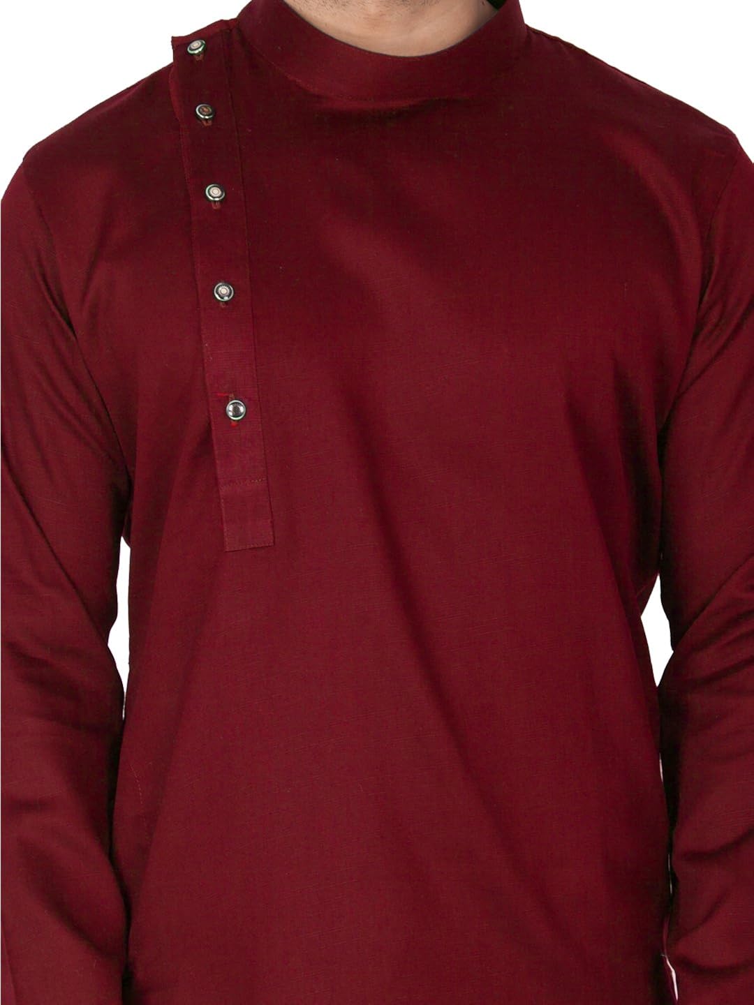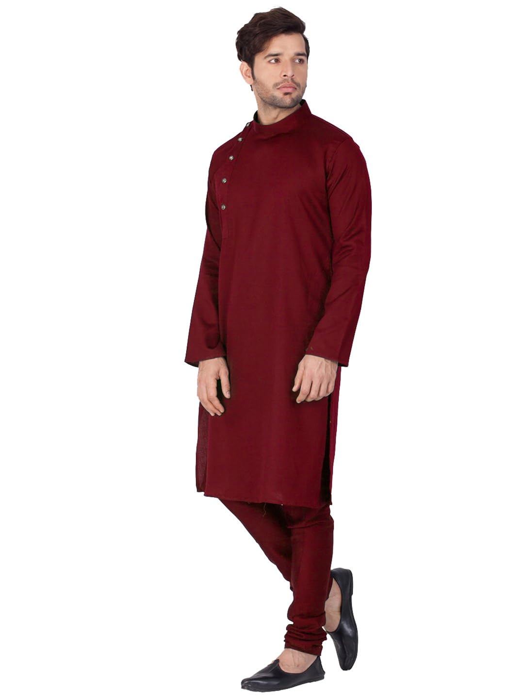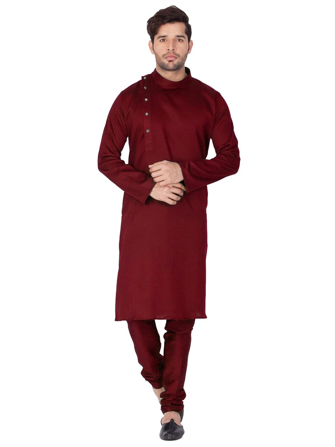 Vastramay brings to you this Stylish yet Comfortable Men Maroon Men Soft Shiny Cotton Kurta with a Side Placket Styling For a Designer Wear Look paired with a Churidar Pyjama Set.. Adorn it for a perfect Classy & Trendy look. Pair it with a juti or a mojari for the Royal look. |