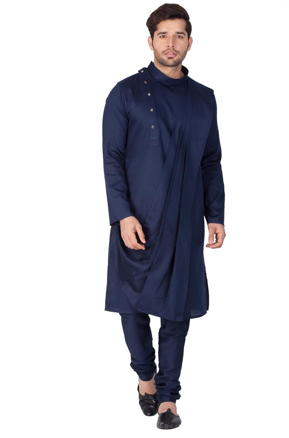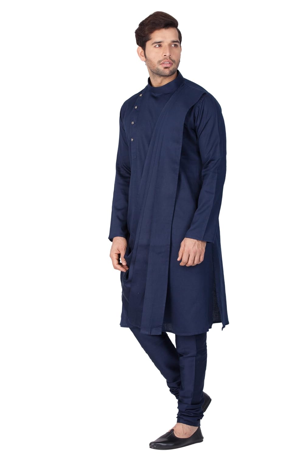 Vastramay brings to you this Stylish yet Comfortable Men Navy Blue Men Soft Shiny Cotton Kurta with an attached Dupatta Styling For a Designer Wear Look paired with a Churidar Pyjama Set.. Adorn it for a perfect Classy & Trendy look. Pair it with a juti or a mojari for the Royal look |