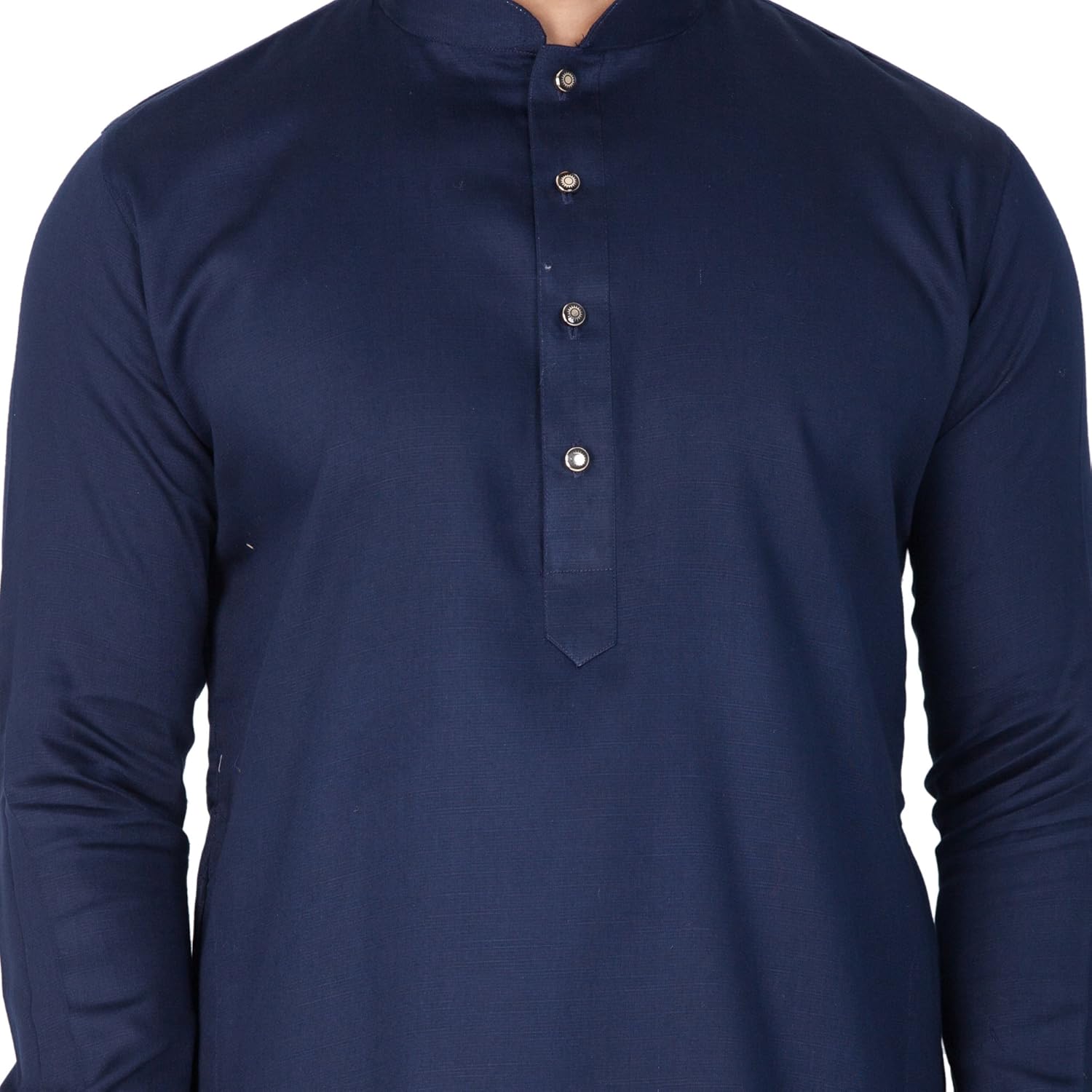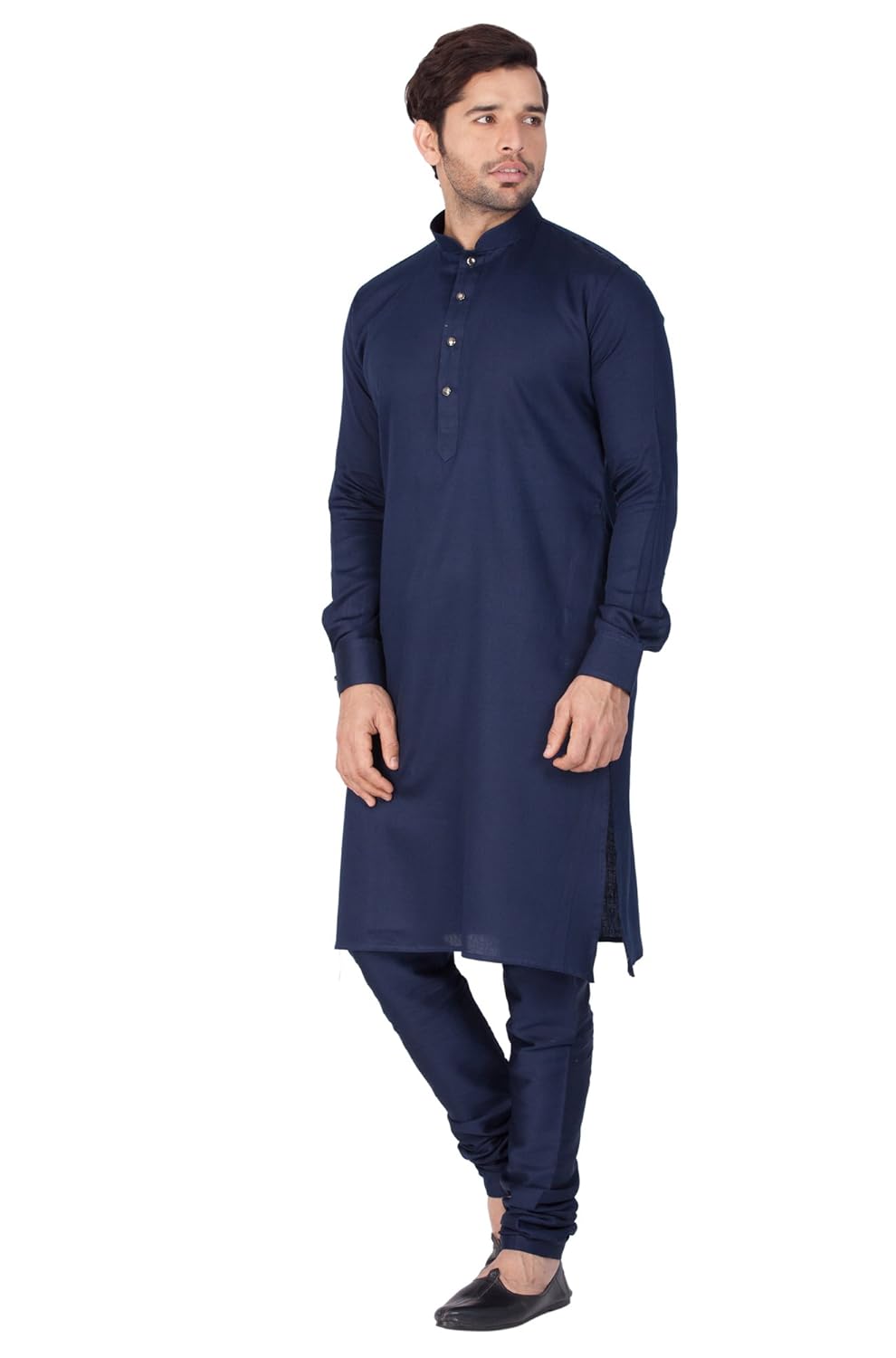 Vastramay brings to you this Stylish yet Comfortable Men Navy Blue Men Soft Shiny Cotton Kurta with a Buttoned Cuff Styling paired with a Churidar Pyjama Set.. Adorn it for a perfect Classy & Trendy look. Pair it with a juti or a mojari for the Royal look. |