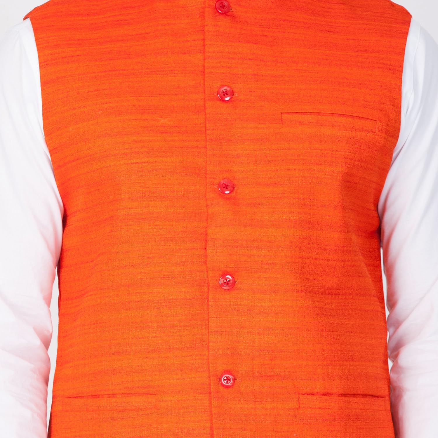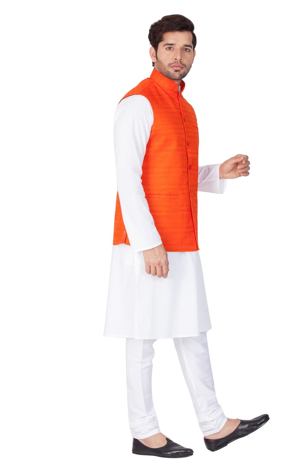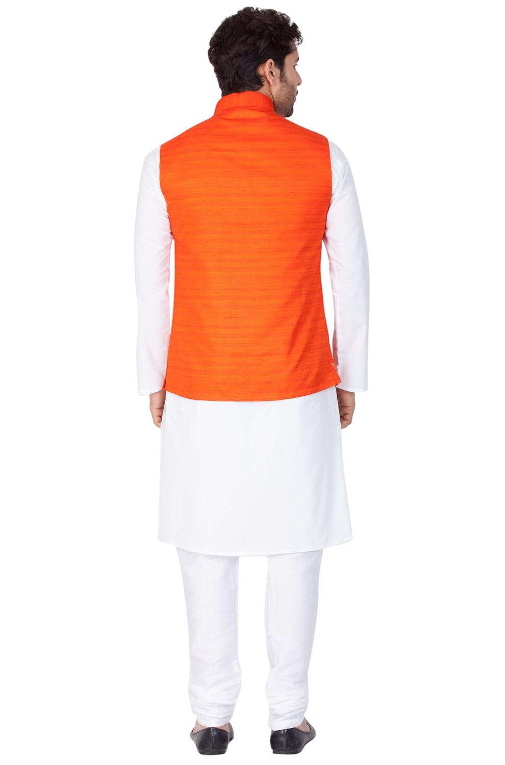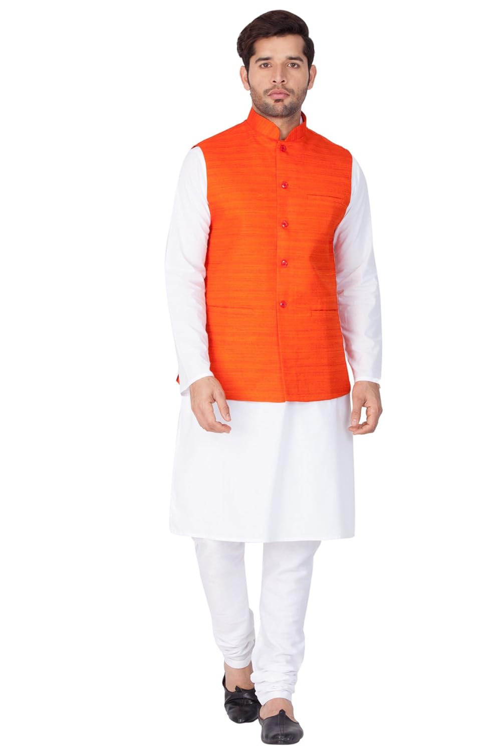 Vastramay brings to you this Stylish yet Comfortable Men White Men Bhagalpuri Matka Feel Blended Cotton Modi Jacket, Pure Cotton White Kurta and Churidar Pyjama Set. Adorn it for a perfect Classy & Trendy look. Pair it with a juti or a mojari for the Royal look. |