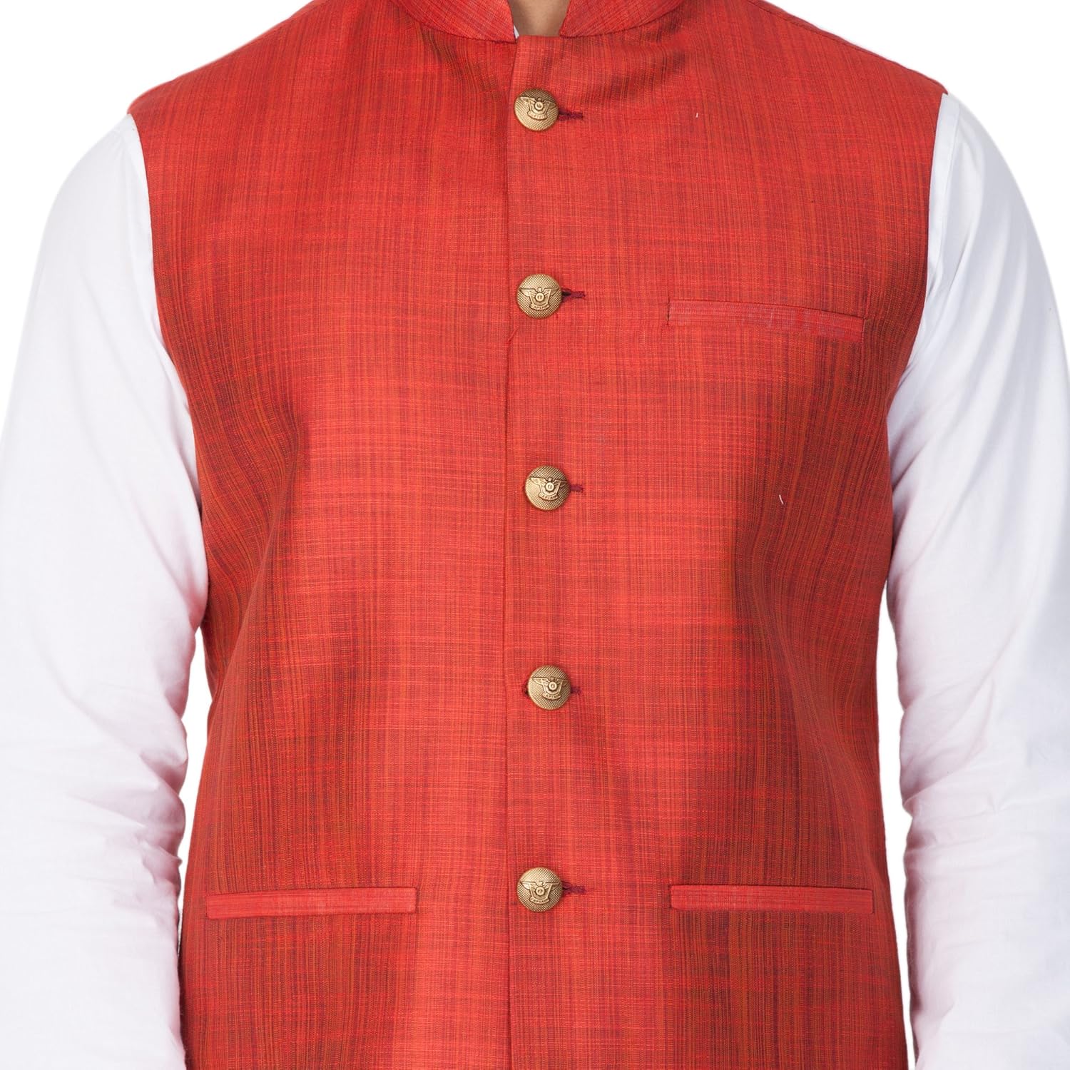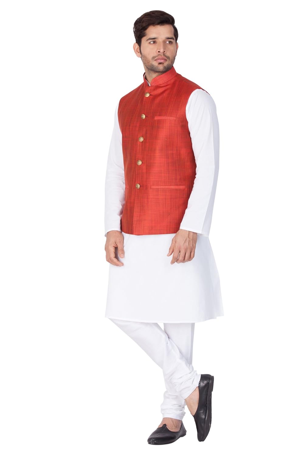 Vastramay brings to you this Stylish yet Comfortable Men White Men Self Design Blended Cotton Modi Jacket, Pure Cotton White Kurta and Churidar Pyjama Set. Adorn it for a perfect Classy & Trendy look. Pair it with a juti or a mojari for the Royal look. |
