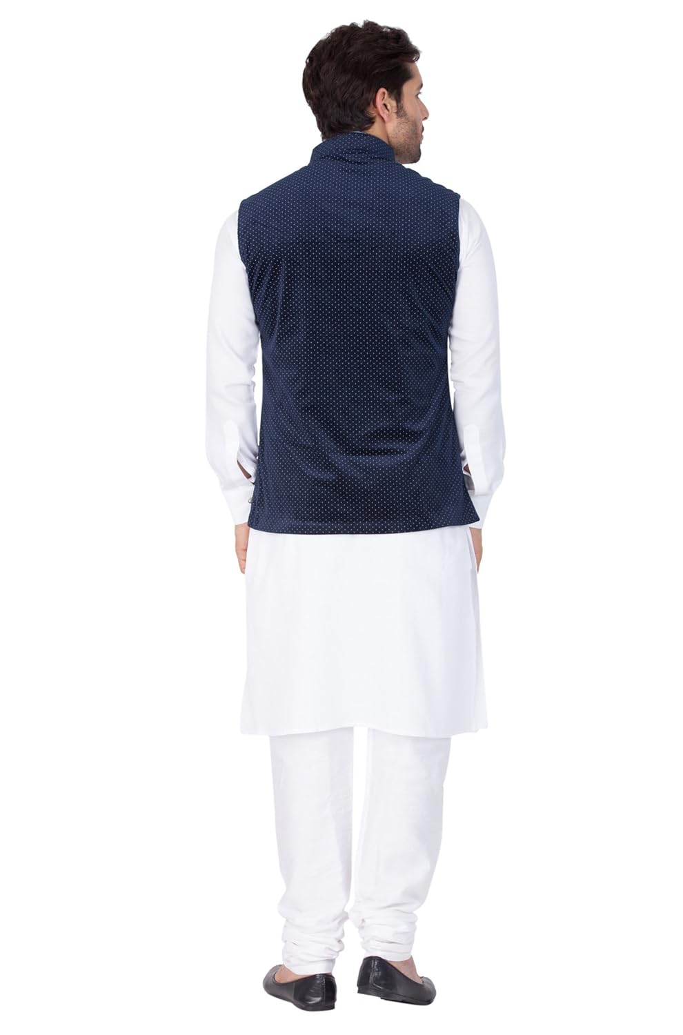 Vastramay brings to you this Stylish yet Comfortable Men White Men Bhagalpuri Matka Feel Blended Cotton Modi Jacket, Pure Cotton White Kurta and Churidar Pyjama Set. Adorn it for a perfect Classy & Trendy look. Pair it with a juti or a mojari for the Royal look. |