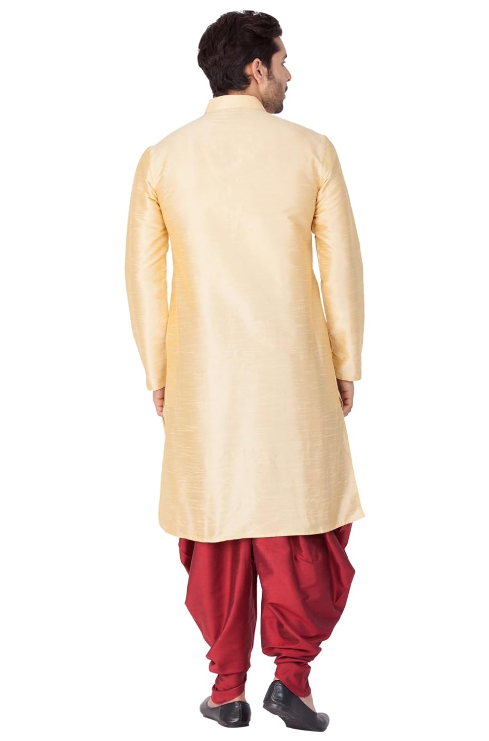 Vastramay brings to you this Stylish yet Comfortable Men Gold Men Cotton Silk Solid Kurta with Cowl Style Patiala Dhoti Pant Set. Adorn it for a perfect Classy & Trendy look. Pair it with a juti or a mojari for the Royal look. |