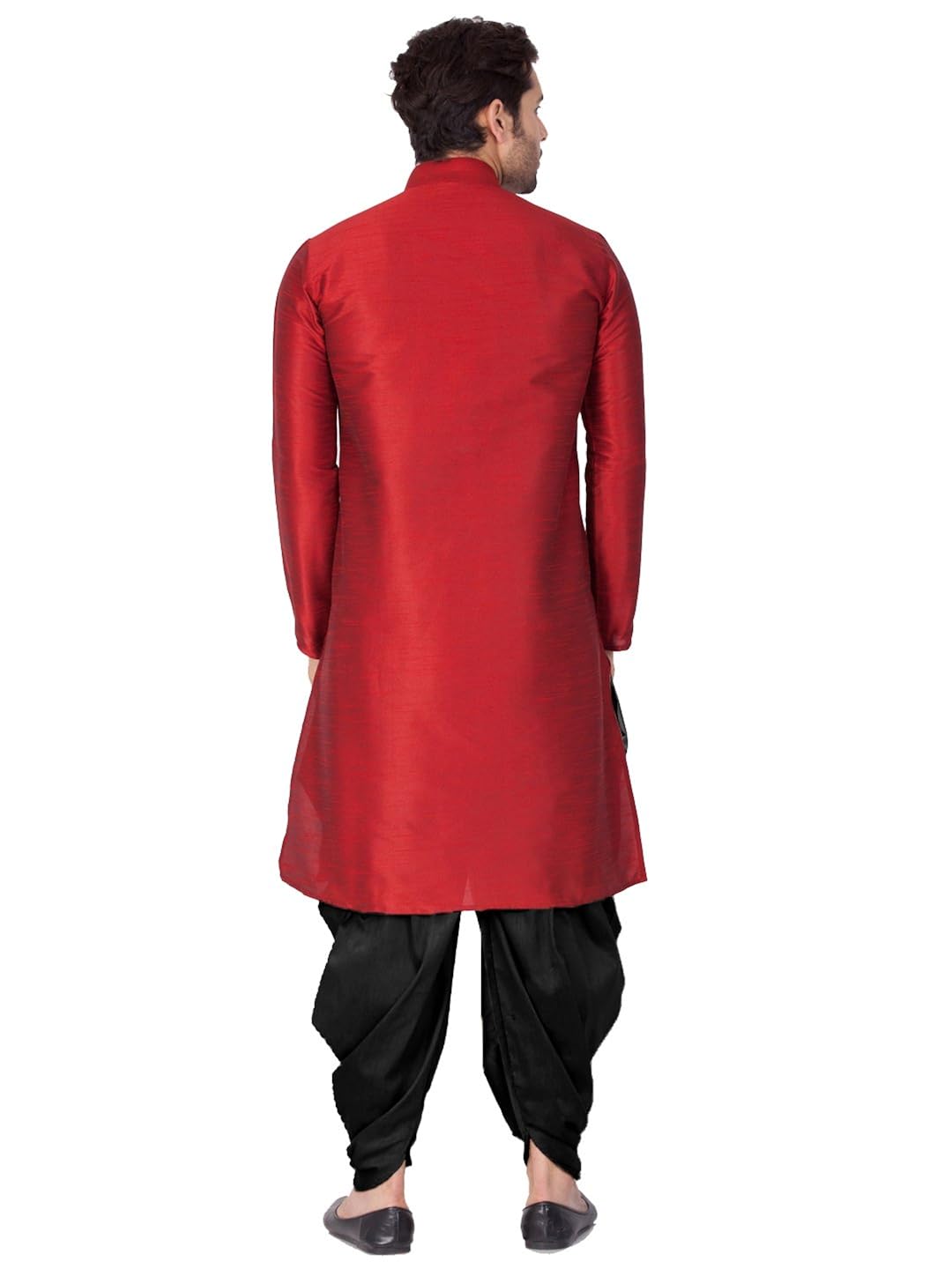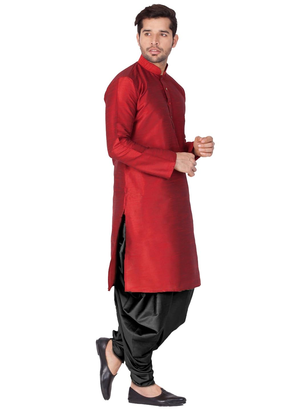 Vastramay brings to you this Stylish yet Comfortable Men Maroon Men Cotton Silk Solid Kurta with Cowl Style Patiala Dhoti Pant Set. Adorn it for a perfect Classy & Trendy look. Pair it with a juti or a mojari for the Royal look. |