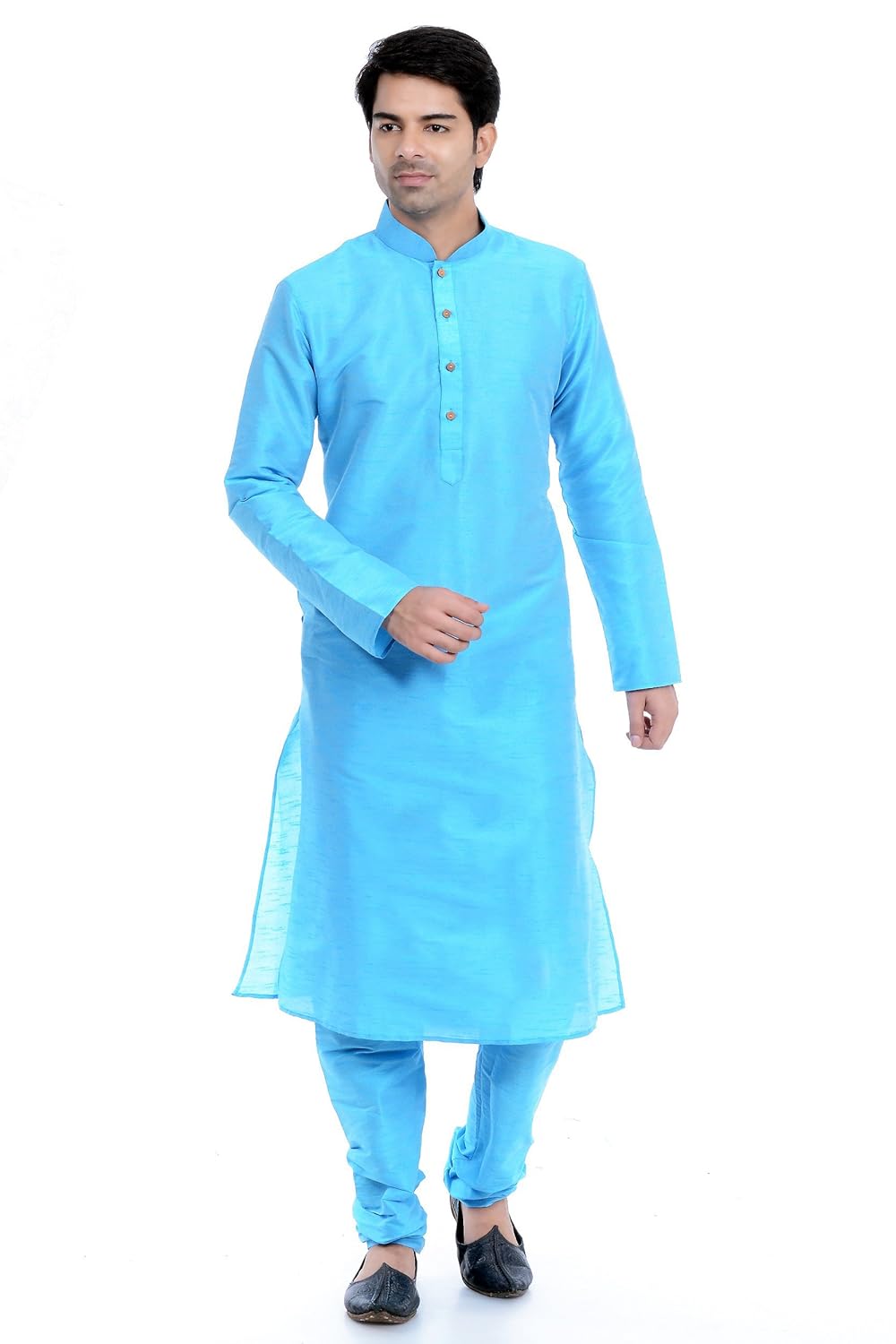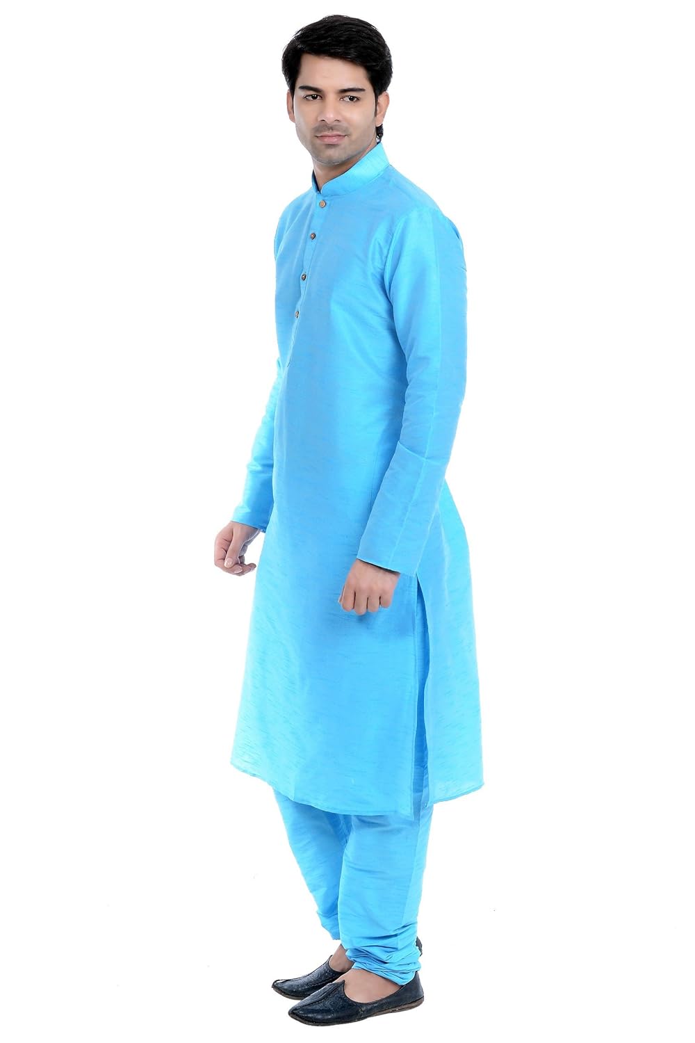 Vastramay brings to you this Stylish yet Comfortable Men Aqua Men Cotton Silk Solid Kurta and Churidar Pyjama Set. Adorn it for a perfect Classy & Trendy look. Pair it with a juti or a mojari for the Royal feel. |