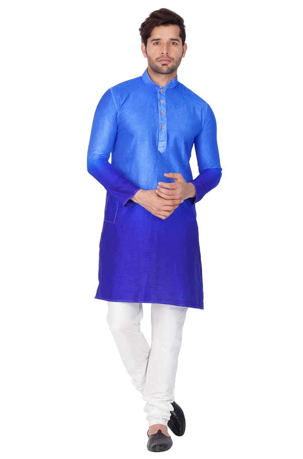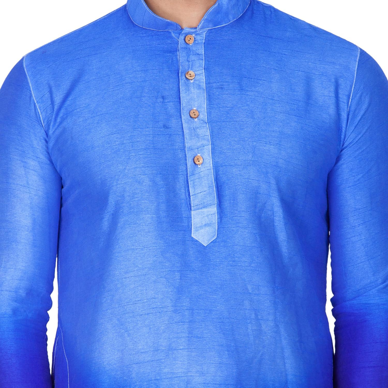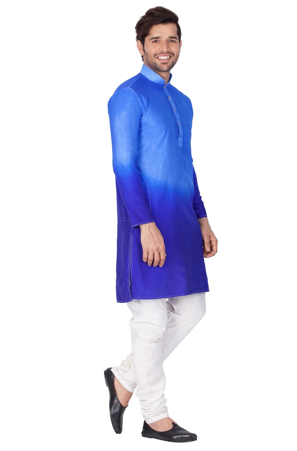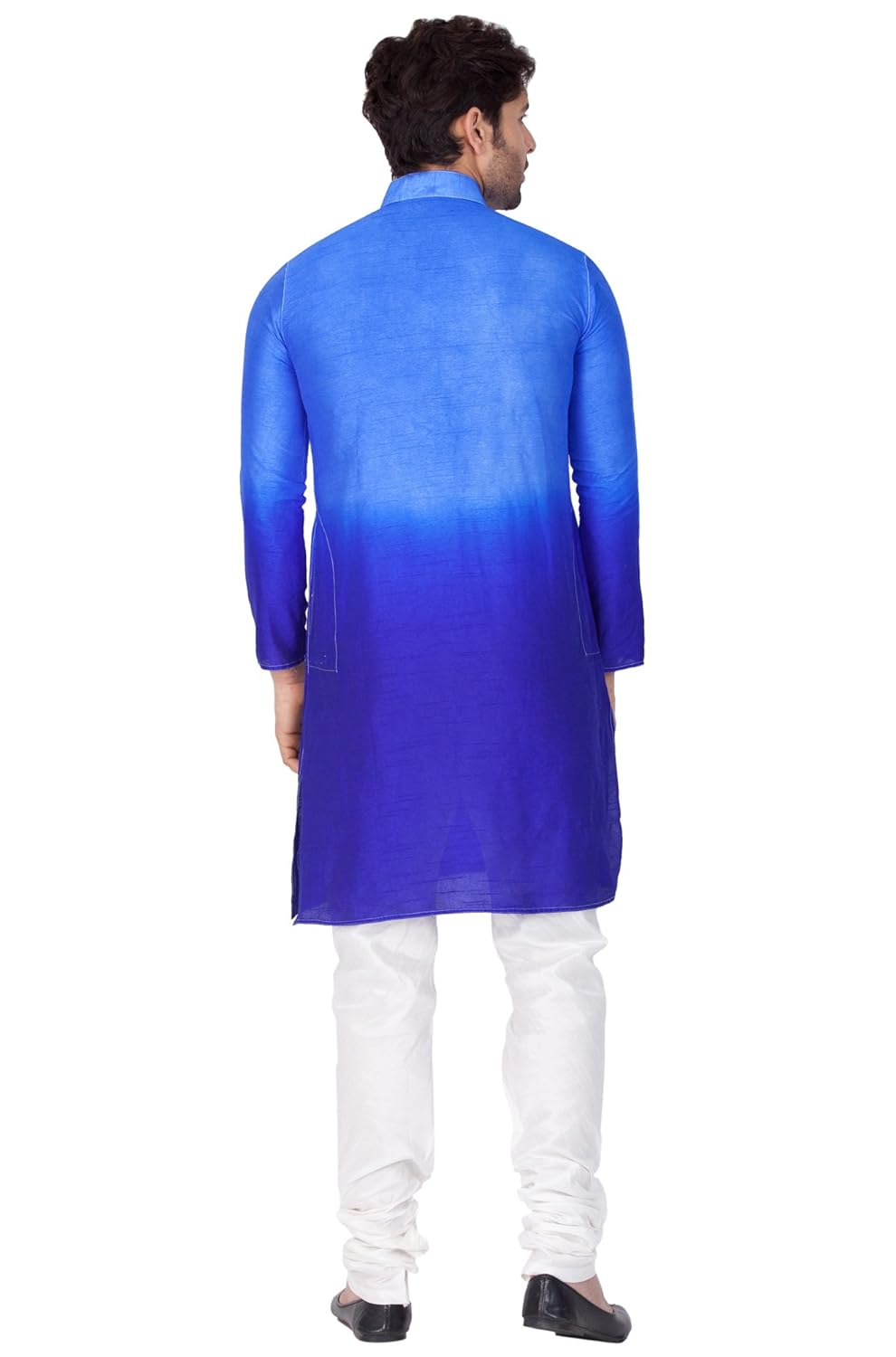 Vastramay brings to you this Stylish yet Comfortable Men Azure to Blue Dyed Kurta in Contrasting Shades and Churidar Pyjama Set. Adorn it for a perfect Classy & Trendy look. Pair it with a juti or a mojari for the Royal look. |