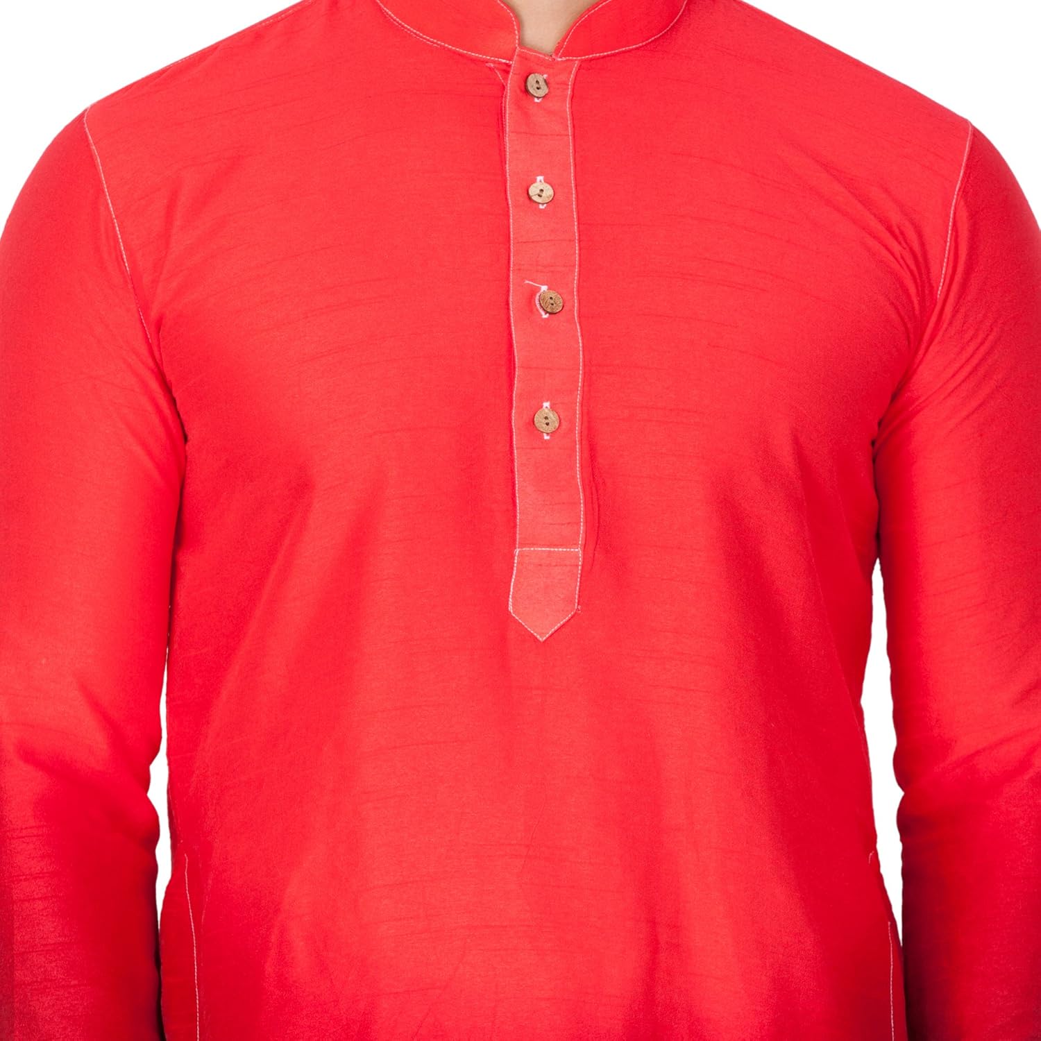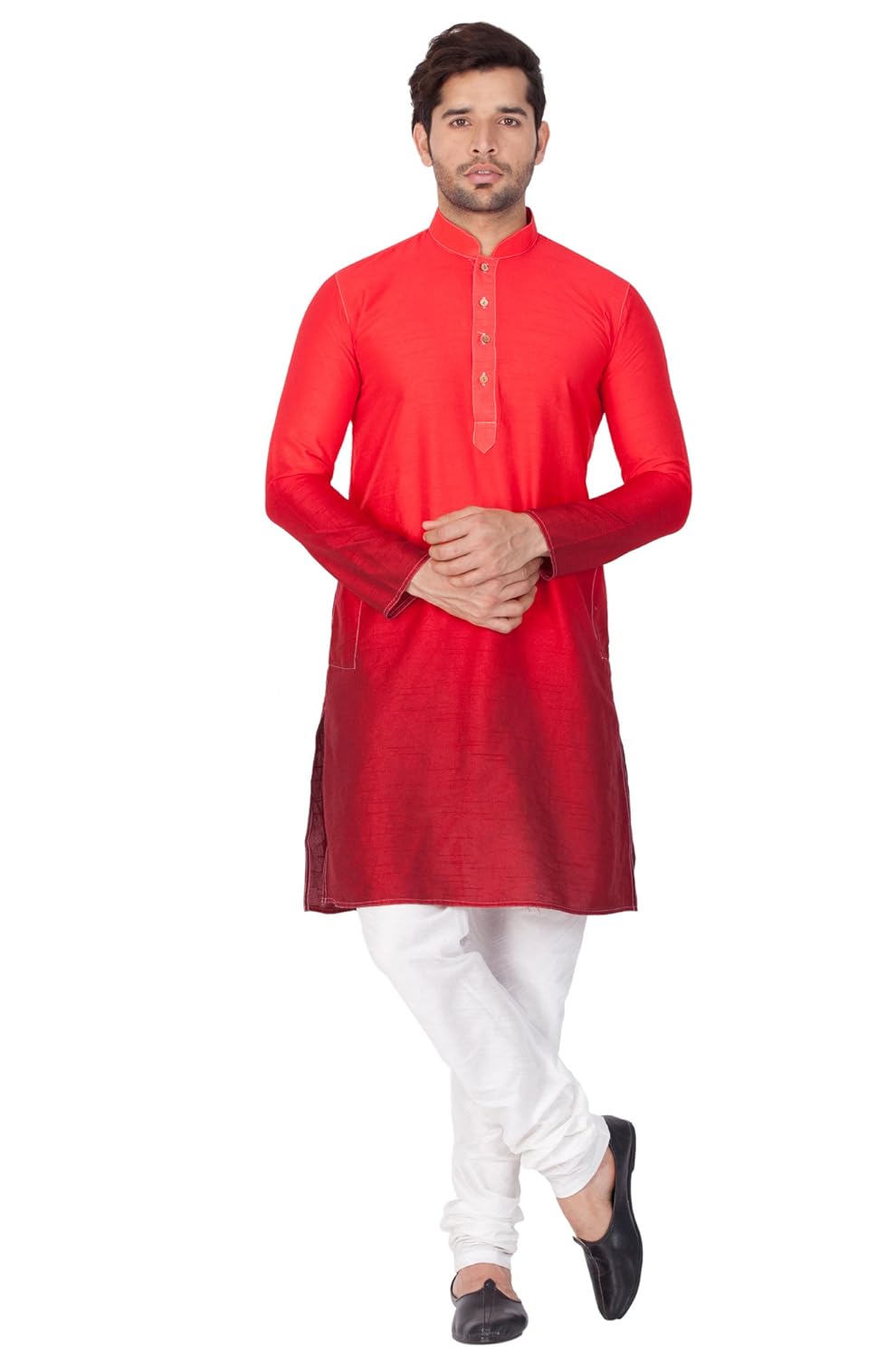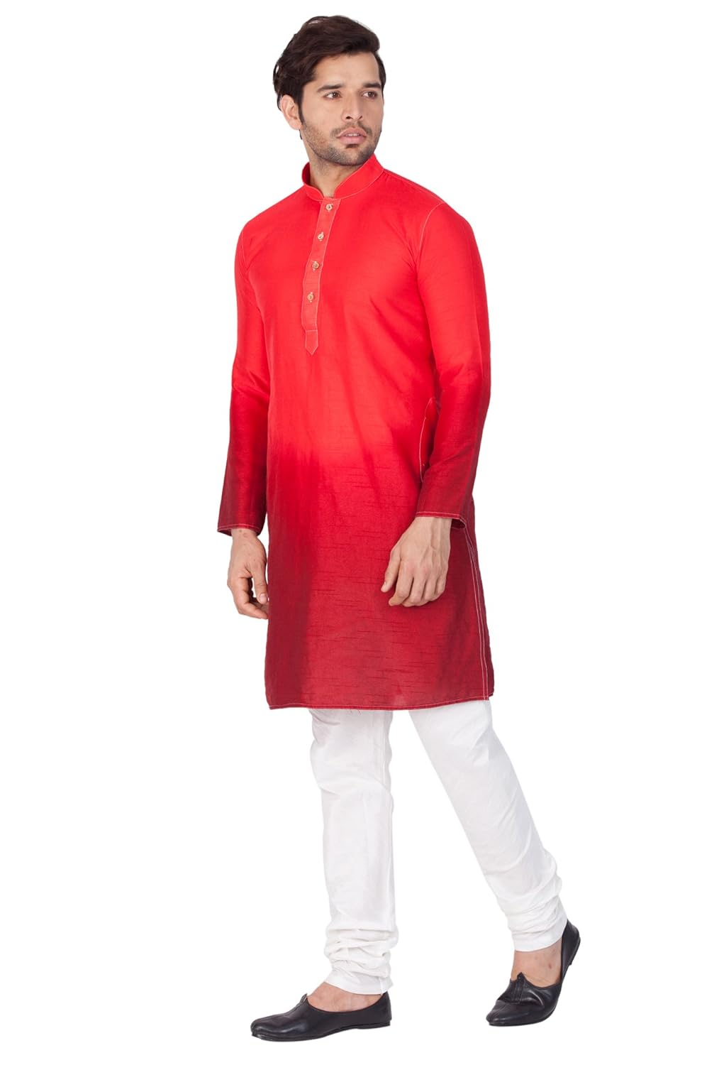 Vastramay brings to you this Stylish yet Comfortable Men Candy Apple Red to Deep Red Dyed Kurta in Contrasting Shades and Churidar Pyjama Set. Adorn it for a perfect Classy & Trendy look. Pair it with a juti or a mojari for the Royal look. |