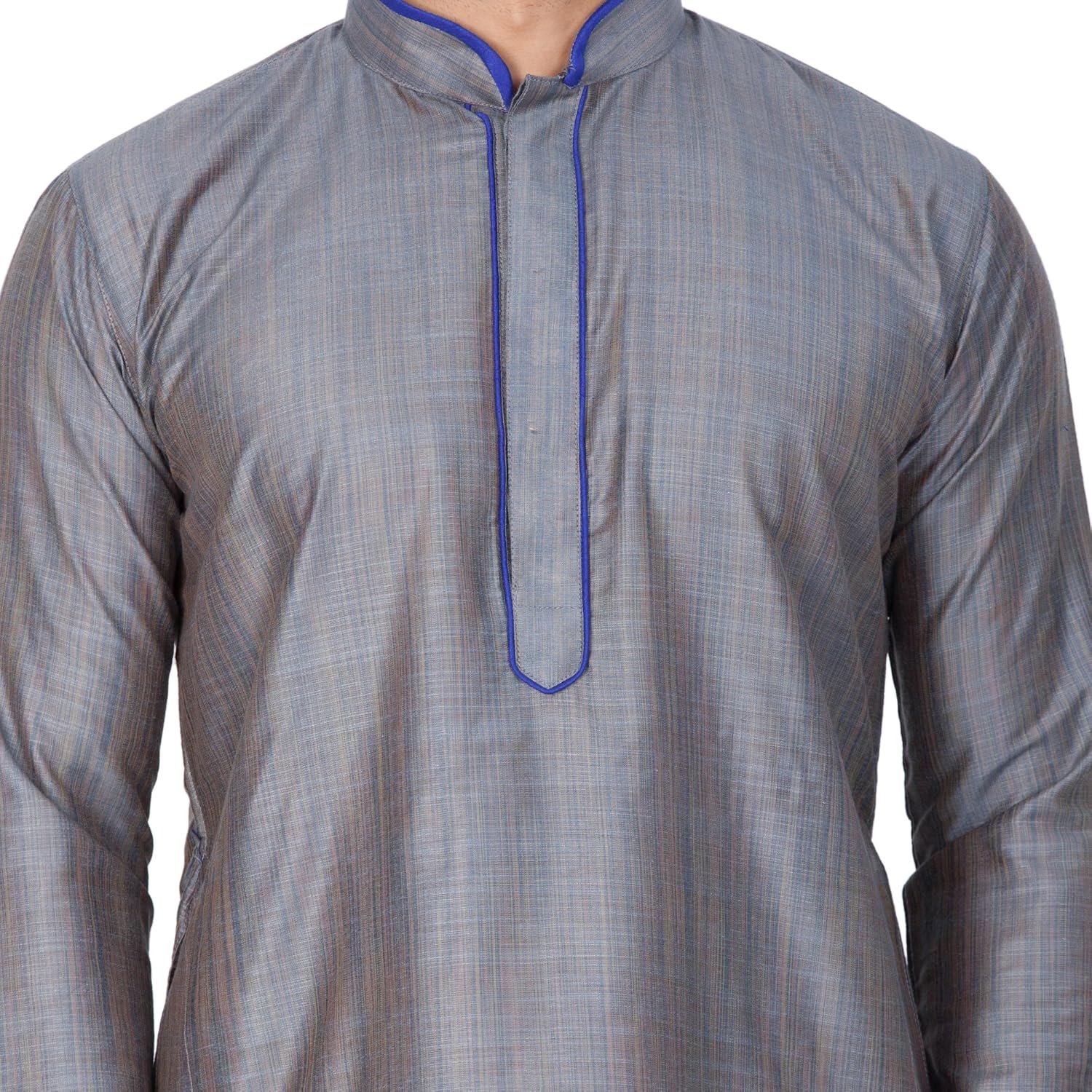 Vastramay brings to you this Stylish yet Comfortable Men Cool Grey Self Design Kurta With Minimal Contrast Piping Highlight on Collar and Placket and Churidar Pyjama Set. Adorn it for a perfect Classy & Trendy look. Pair it with a juti or a mojari for the Royal look. |