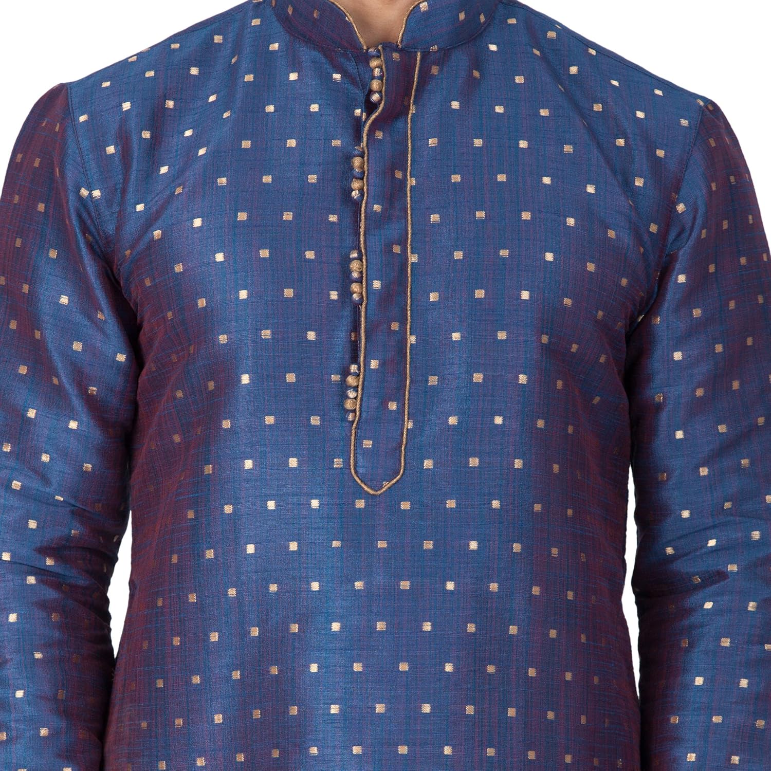 Vastramay brings to you this Stylish yet Comfortable Men Egyptian Blue Banarasi Jaquard Kurta with Designer Placket paired with a Churidar Pyjama. Adorn it for a perfect Classy & Trendy look. Pair it with a juti or a mojari for the Royal look. |