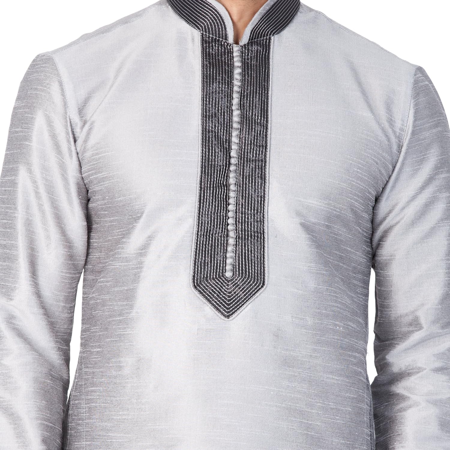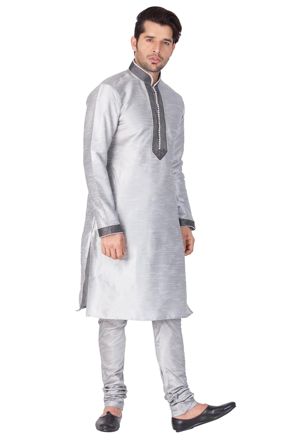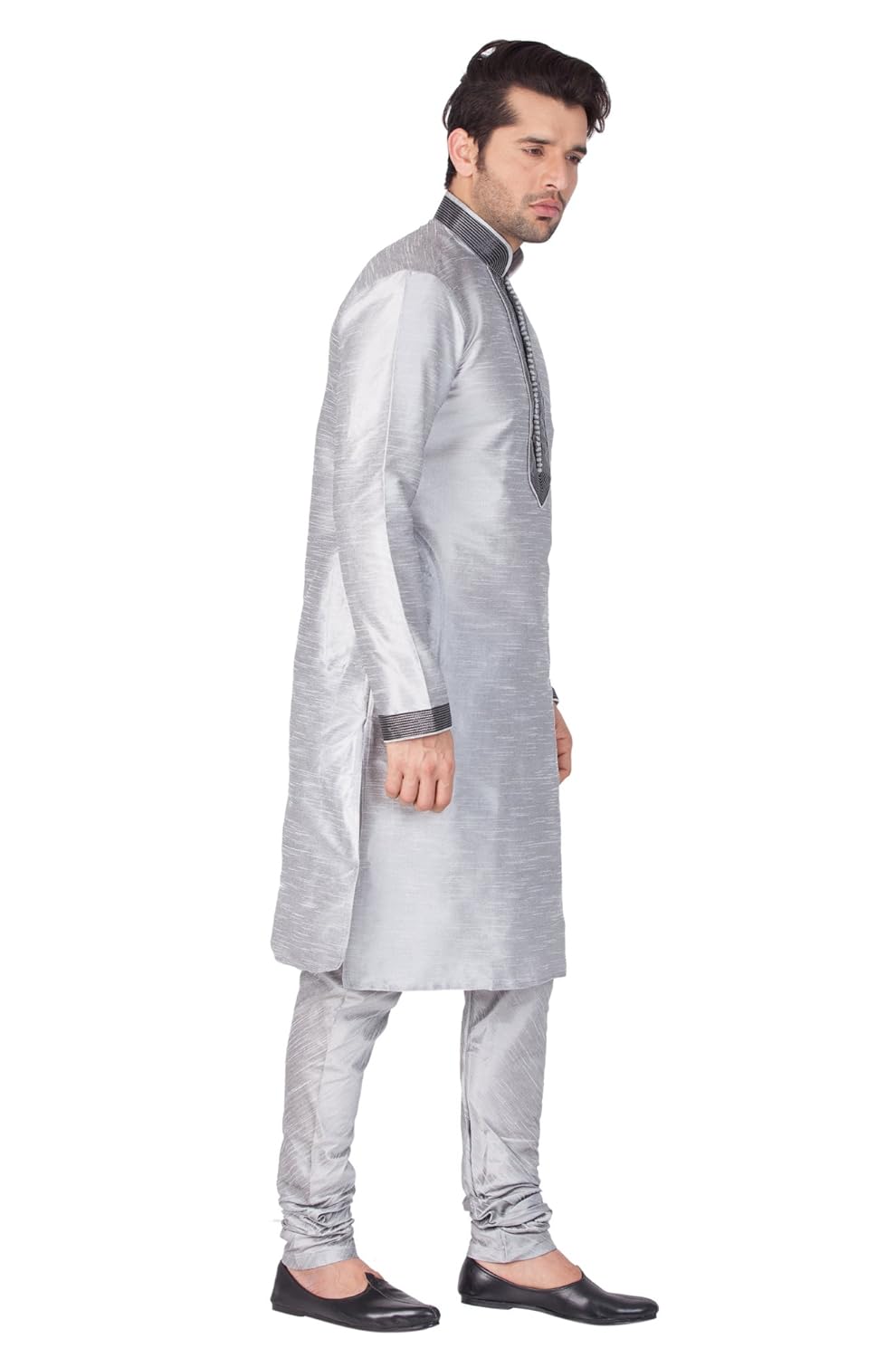 Vastramay brings to you this Stylish yet Comfortable Men Grey Kurta With Ebroidered Collar, Placket and Cuff and Churidar Pyjama Set. Adorn it for a perfect Classy & Trendy look. Pair it with a juti or a mojari for the Royal look. |