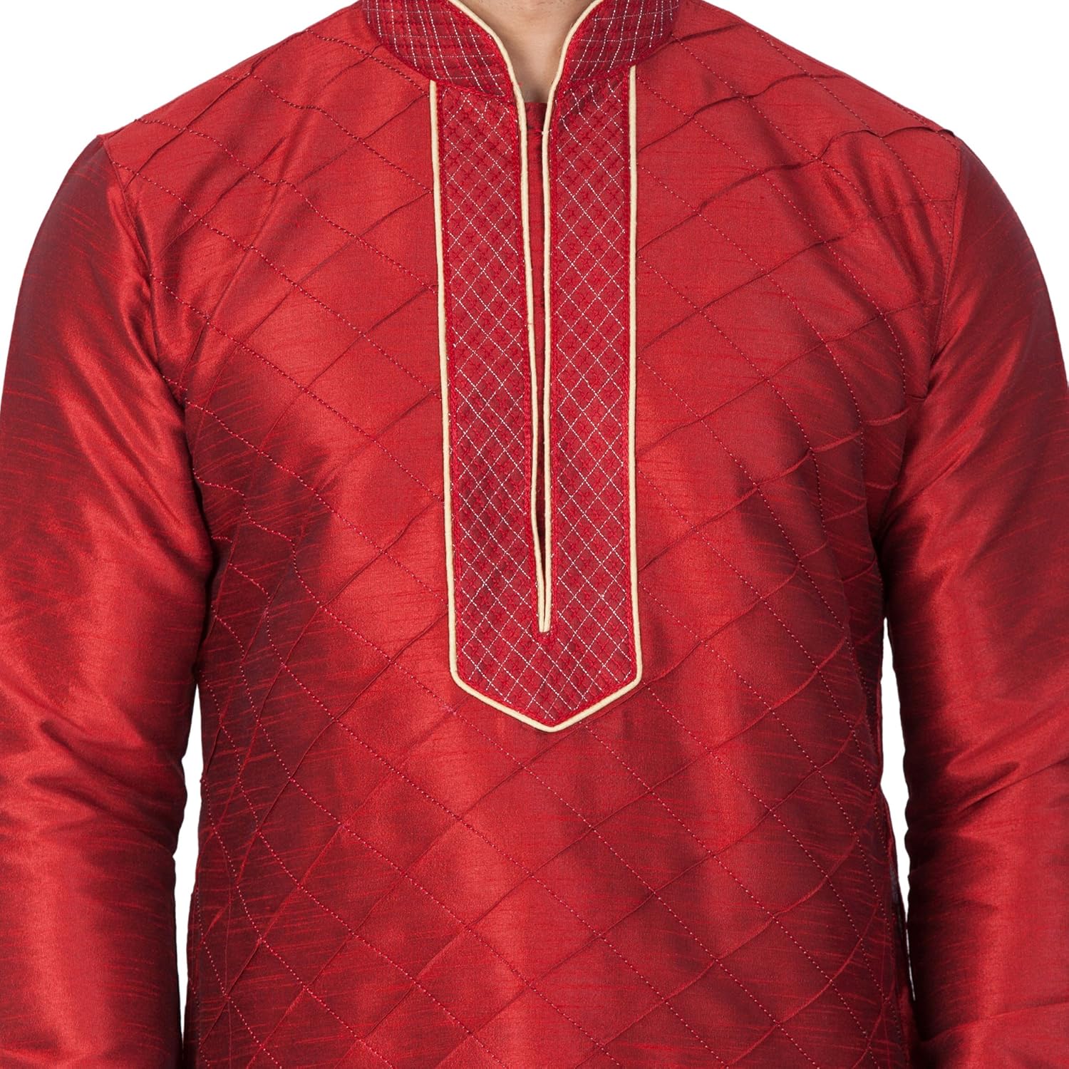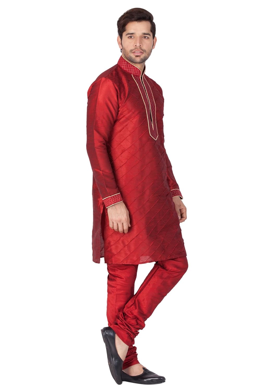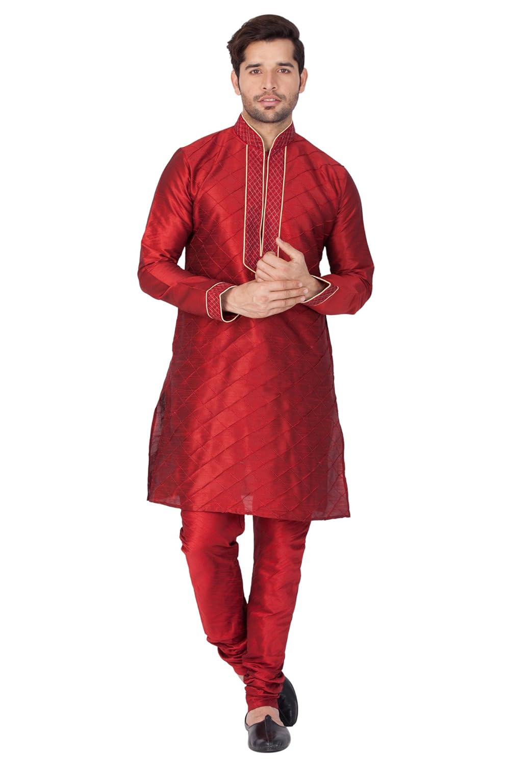 Vastramay brings to you this Stylish yet Comfortable Men Maroon Men Cotton Silk Pintex Kurta and Churidar Pyjama Set. Adorn it for a perfect Classy & Trendy look. Pair it with a juti or a mojari for the Royal feel. |