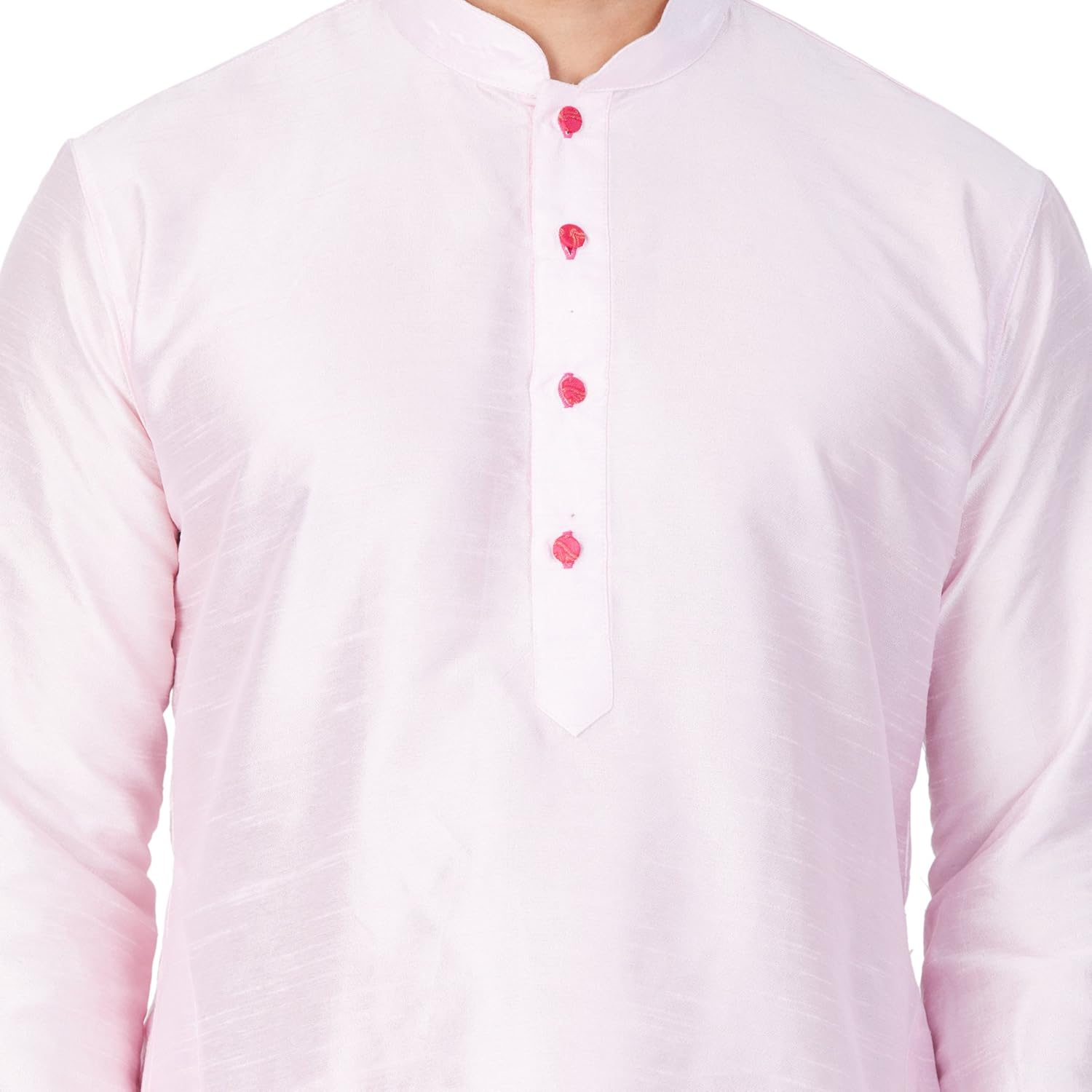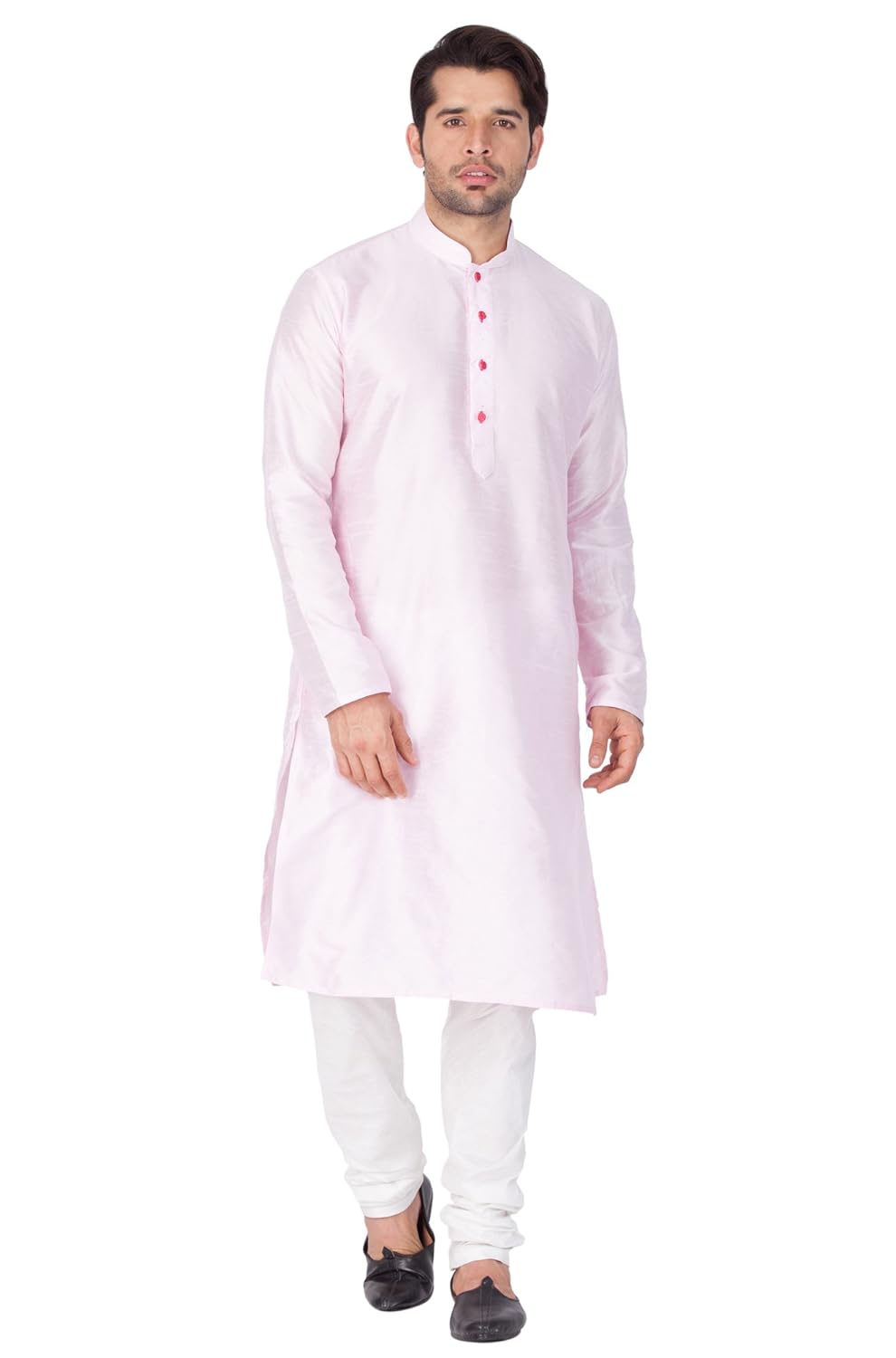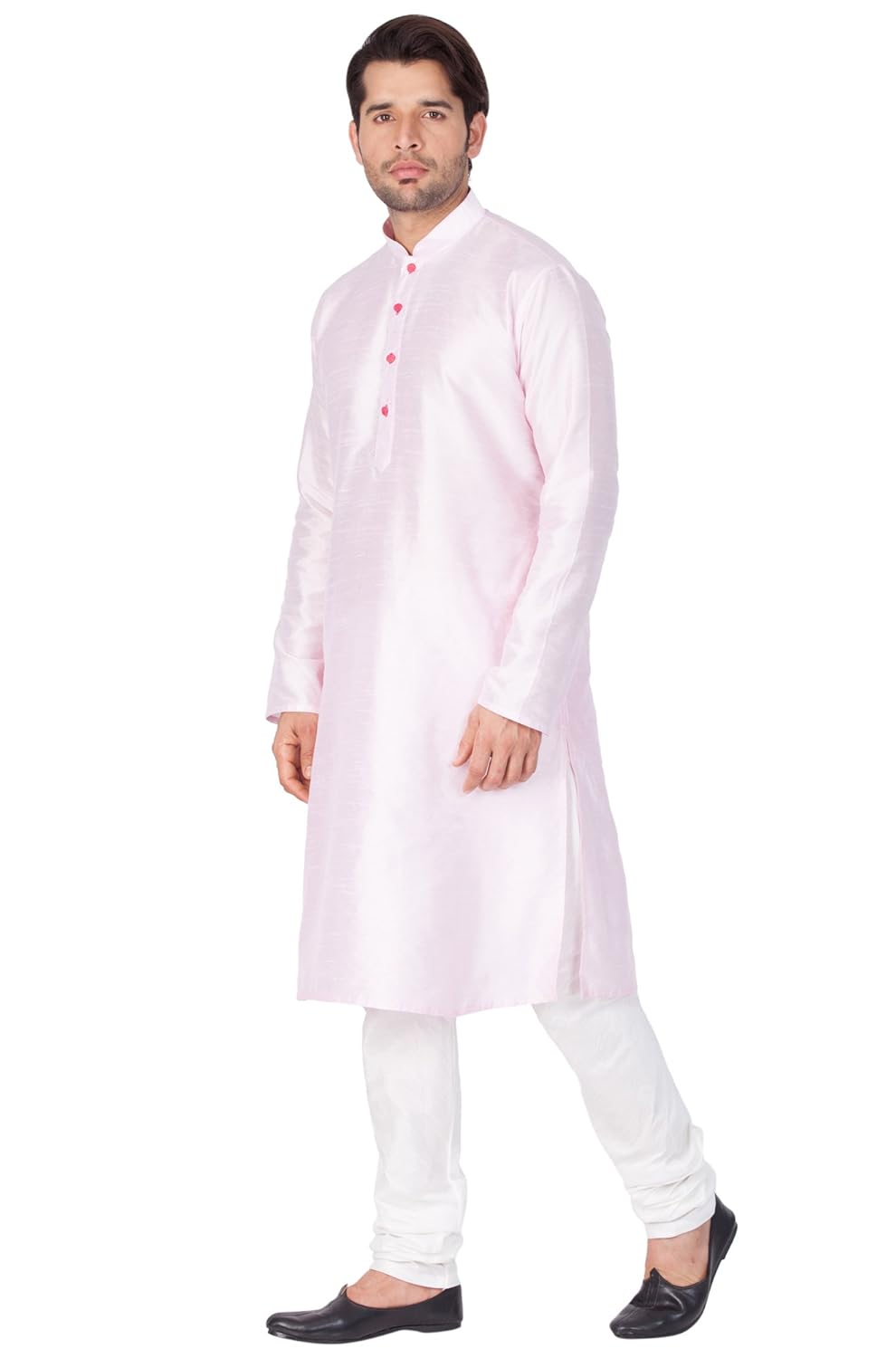 Vastramay brings to you this Stylish yet Comfortable Men Pink Men Cotton Silk Solid Sof Pastel Pink Kurta and Churidar Pyjama Set. Adorn it for a perfect Classy & Trendy look. Pair it with a juti or a mojari for the Royal look. |