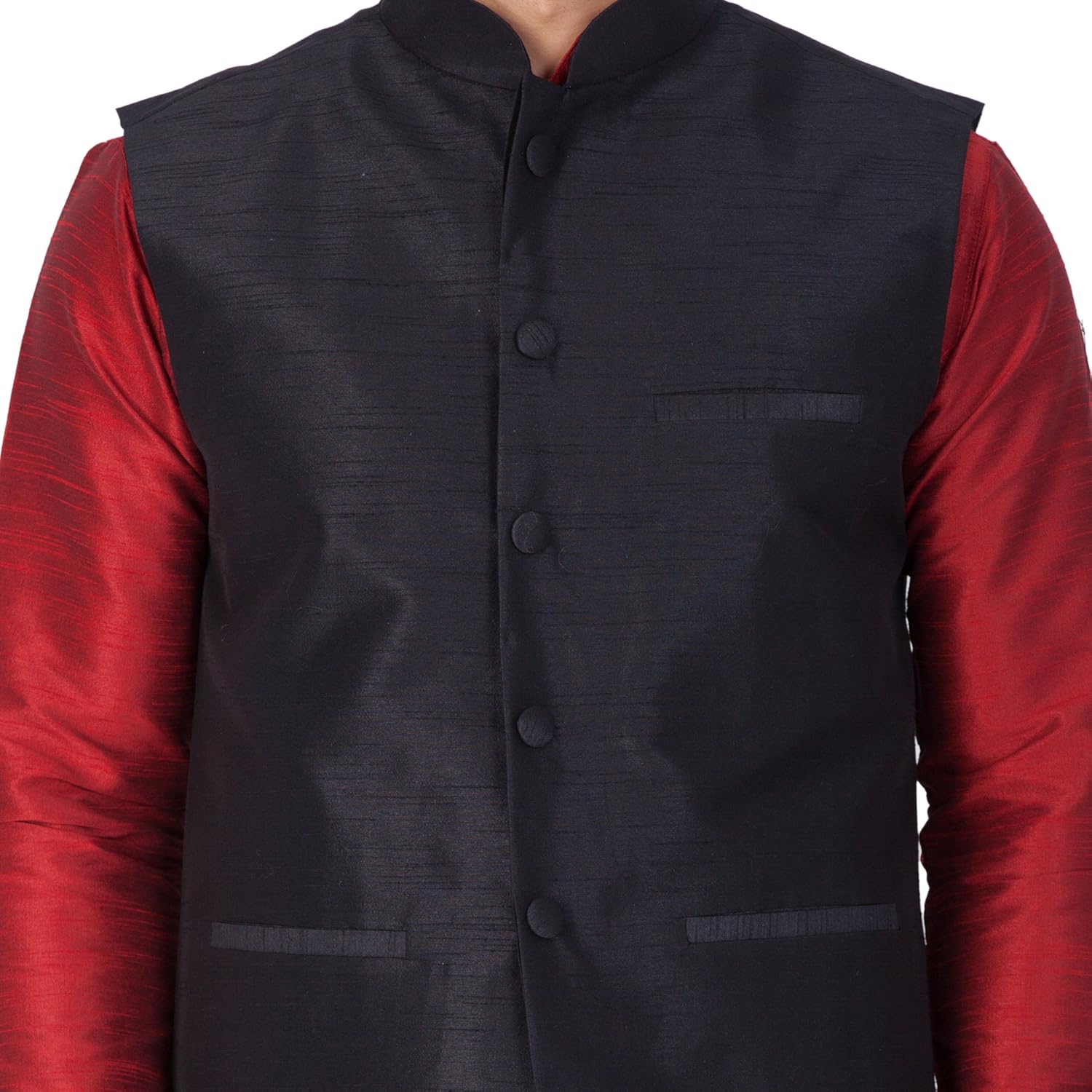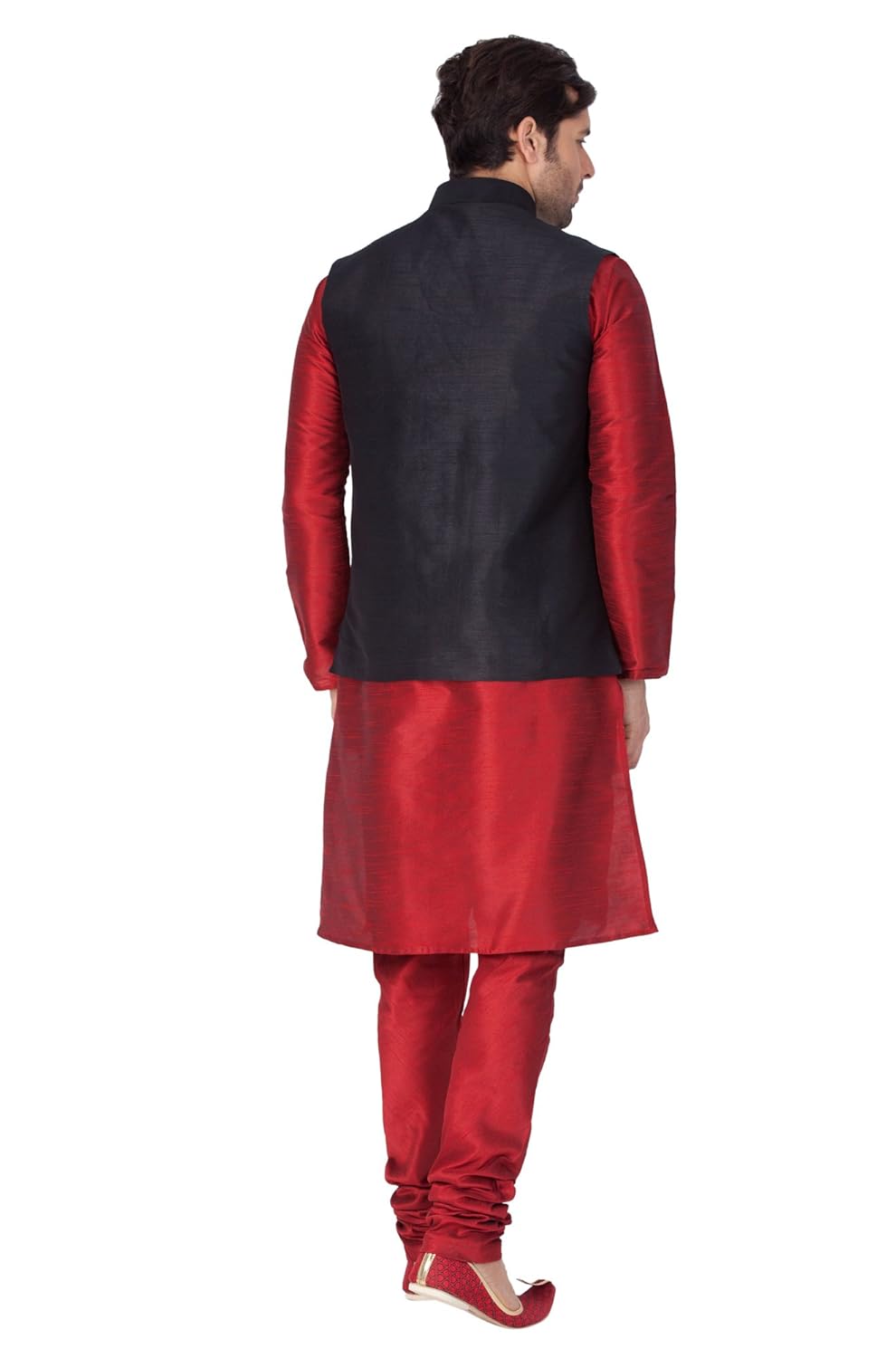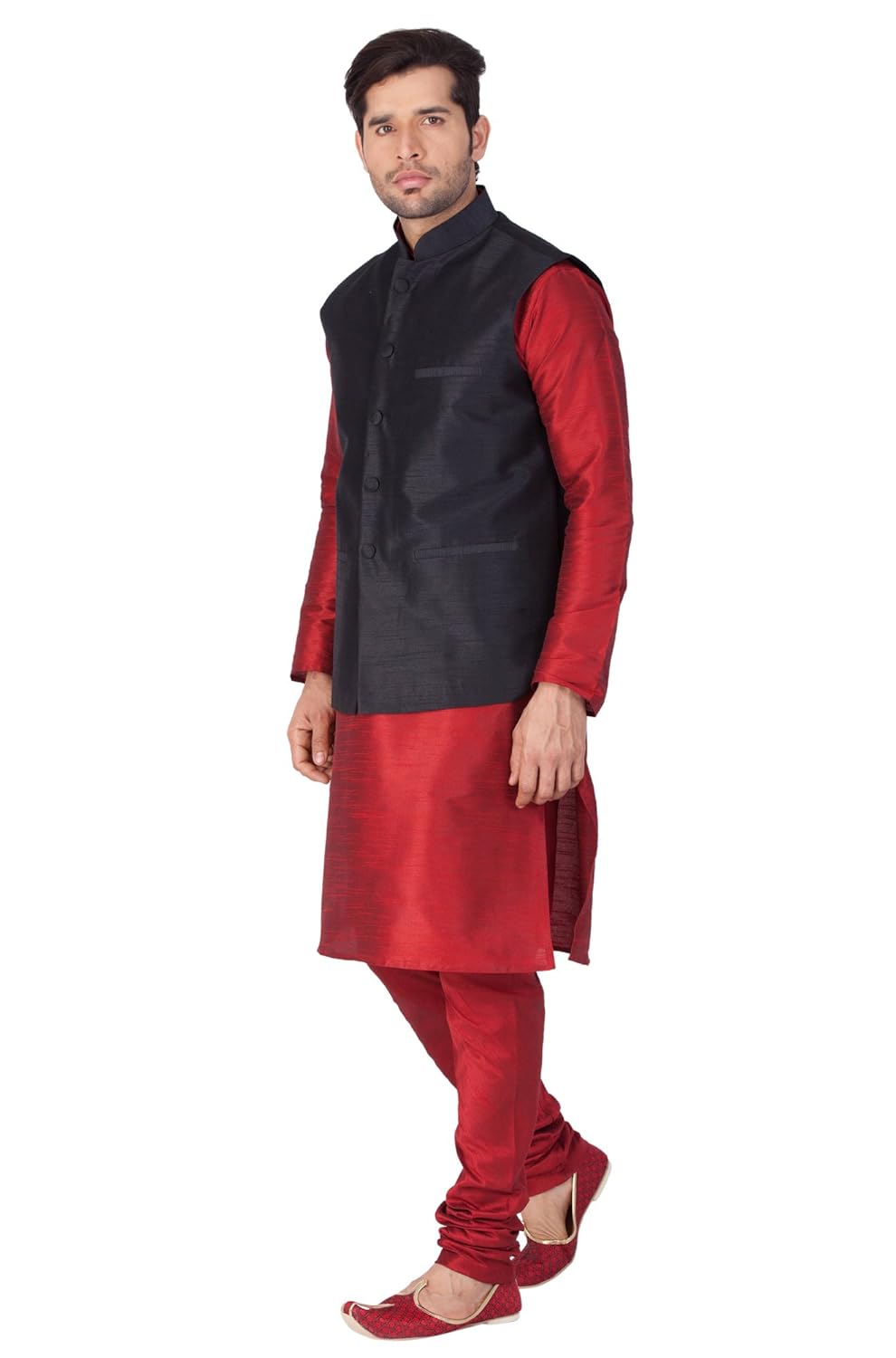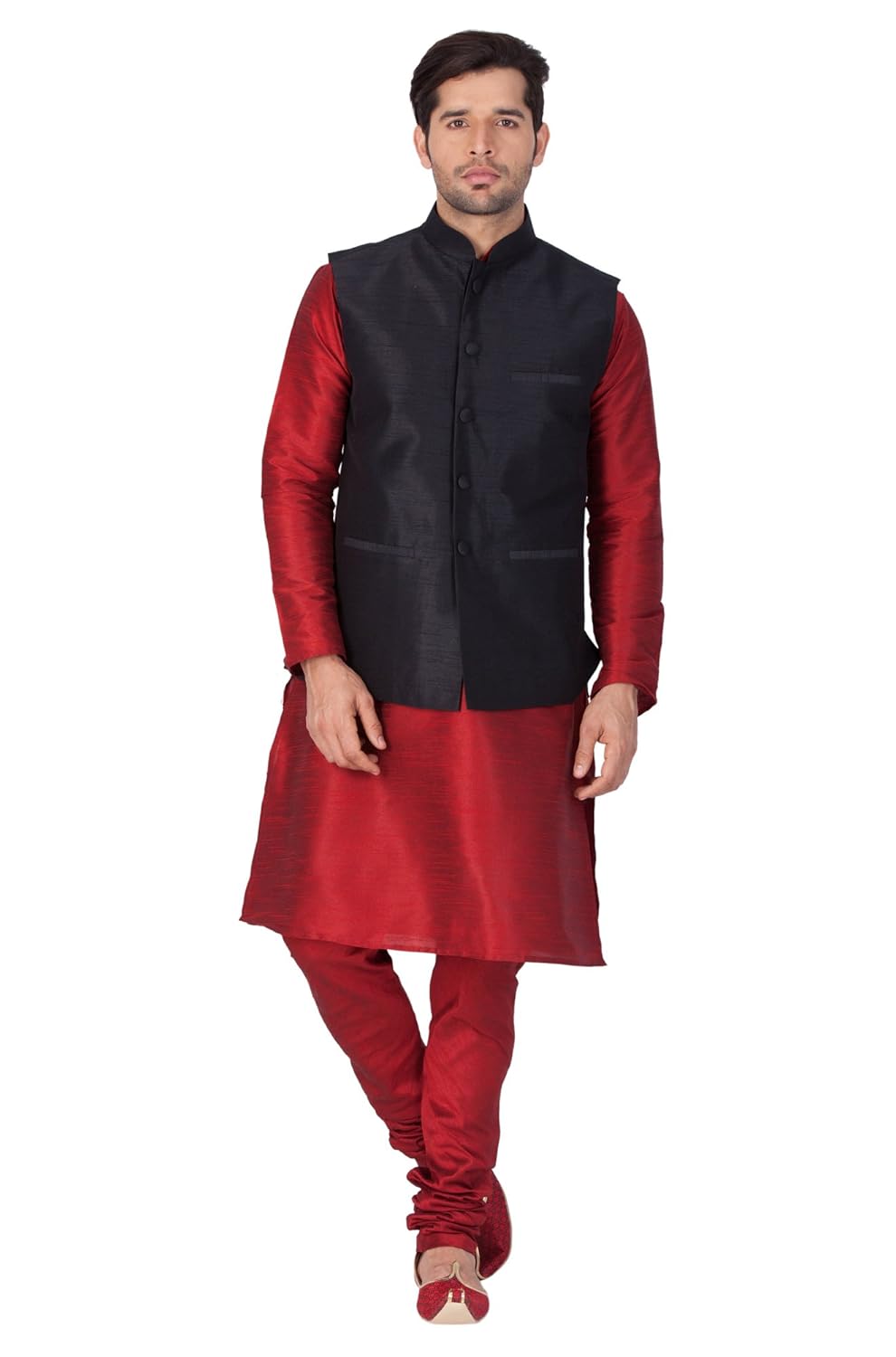Vastramay brings to you this Stylish yet Comfortable Men Maroon Men Solid Modi Jacket, a Cotton Silk Solid Kurta and Churidar Pyjama Set. Adorn it for a perfect Classy & Trendy look. Pair it with a juti or a mojari for the Royal feel. |