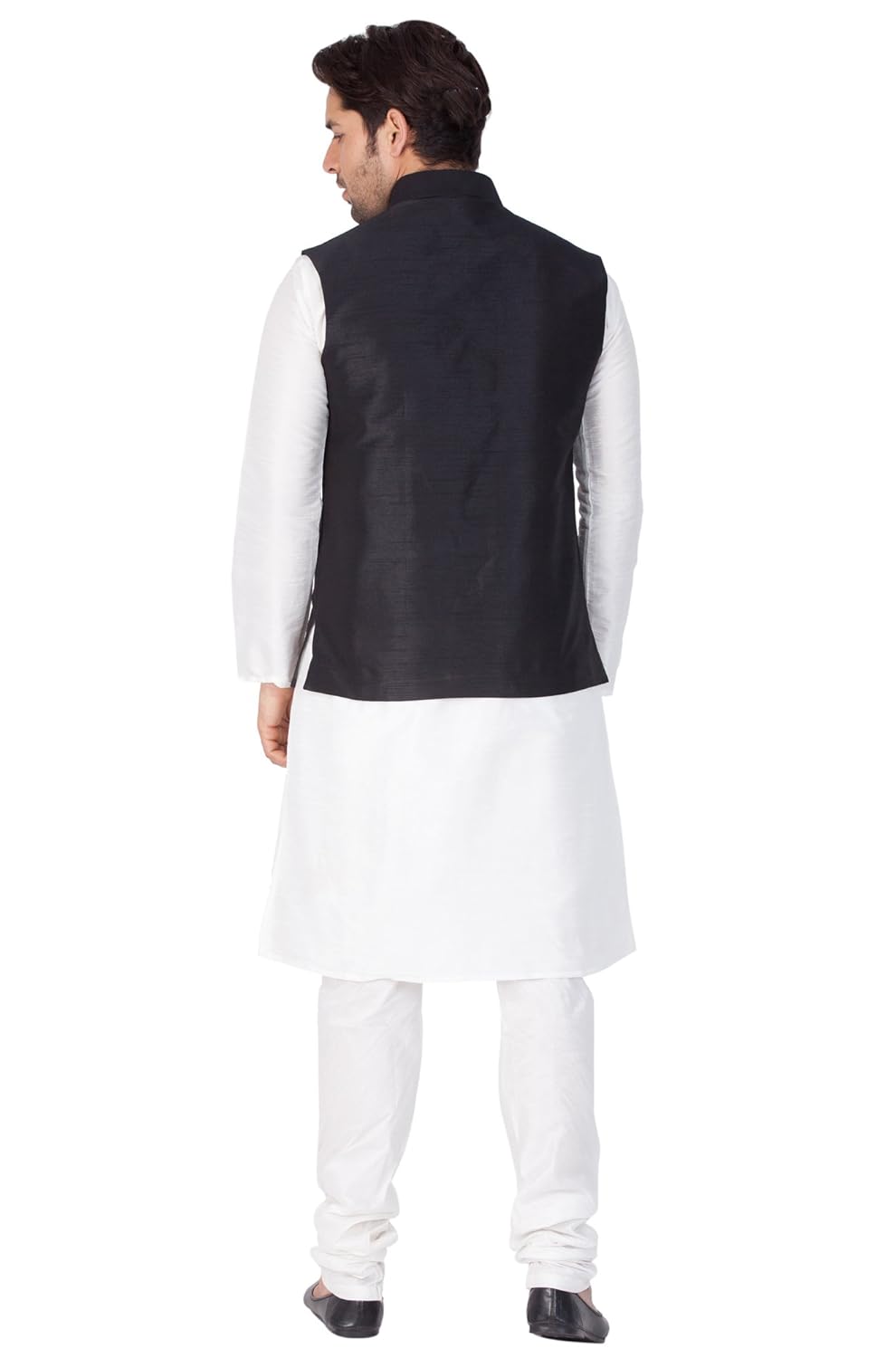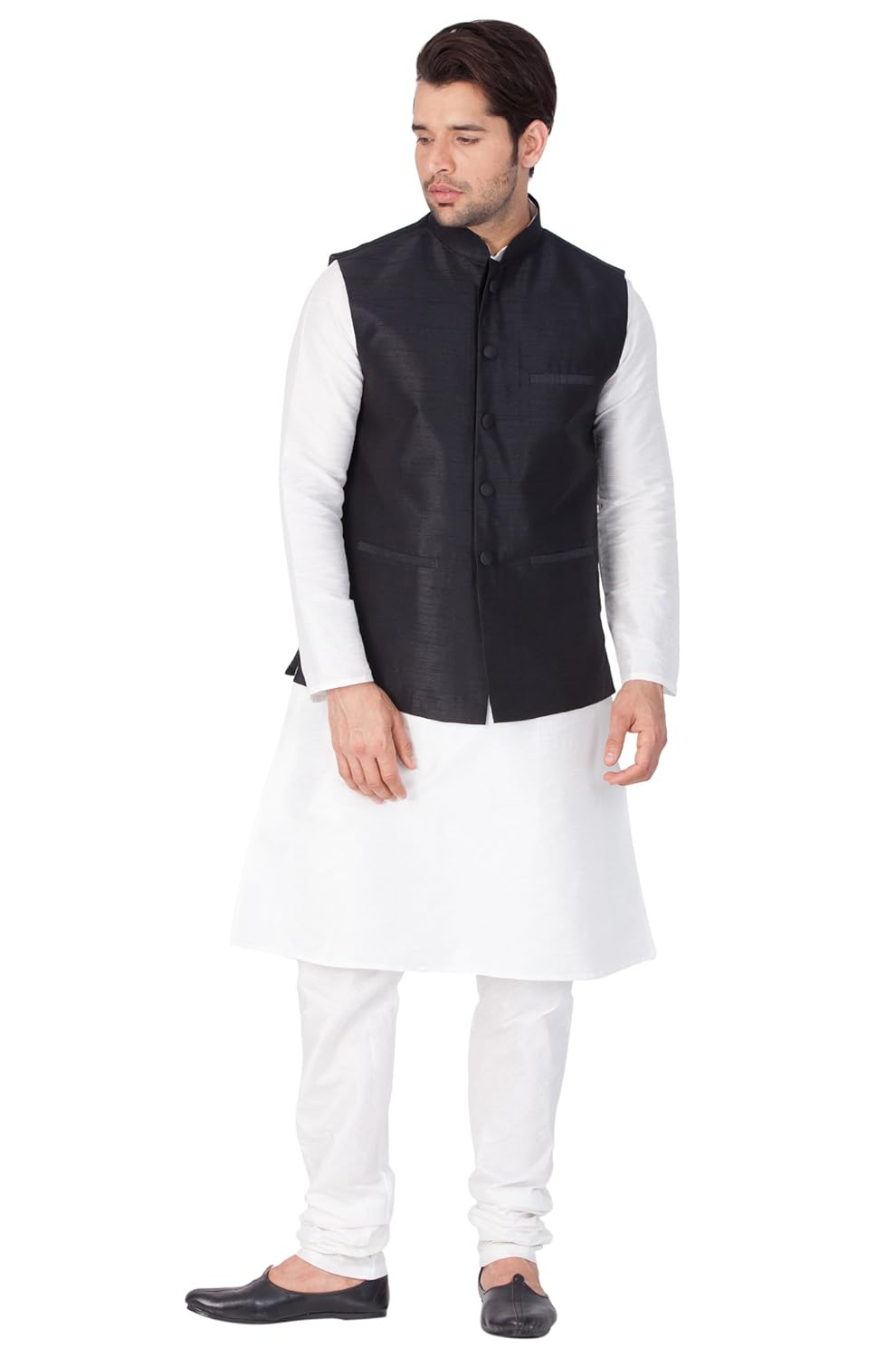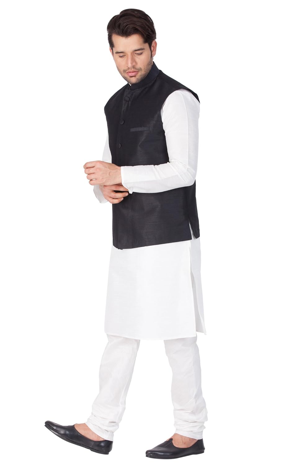 Vastramay brings to you this Stylish yet Comfortable Men White Men Solid Modi Jacket, a Cotton Silk Solid Kurta and Churidar Pyjama Set. Adorn it for a perfect Classy & Trendy look. Pair it with a juti or a mojari for the Royal look. |