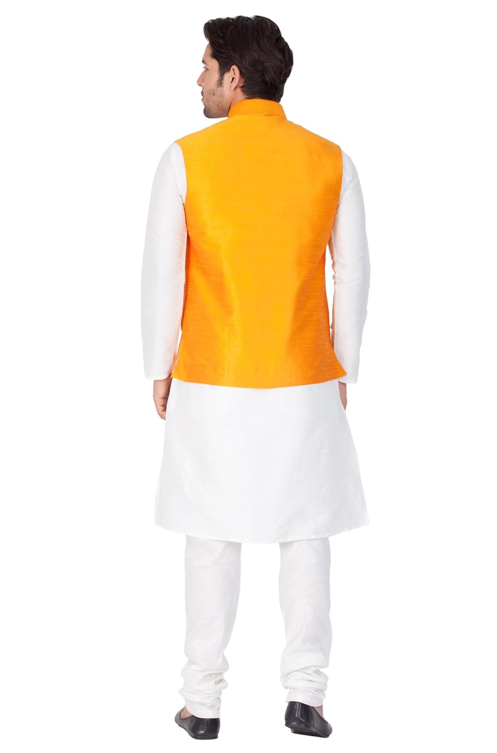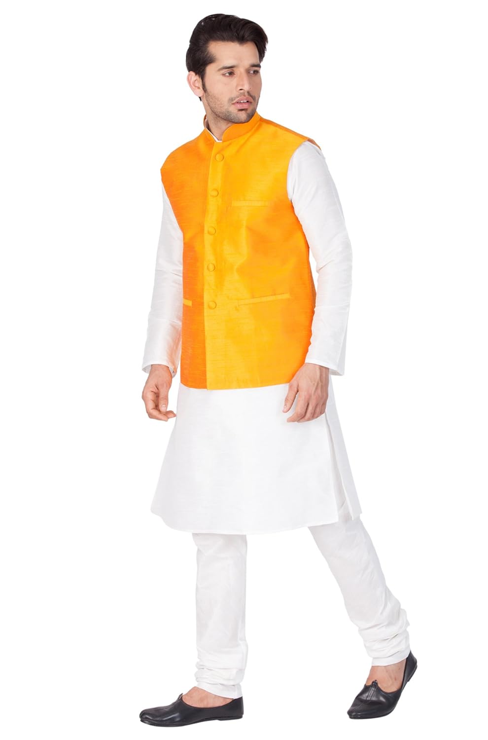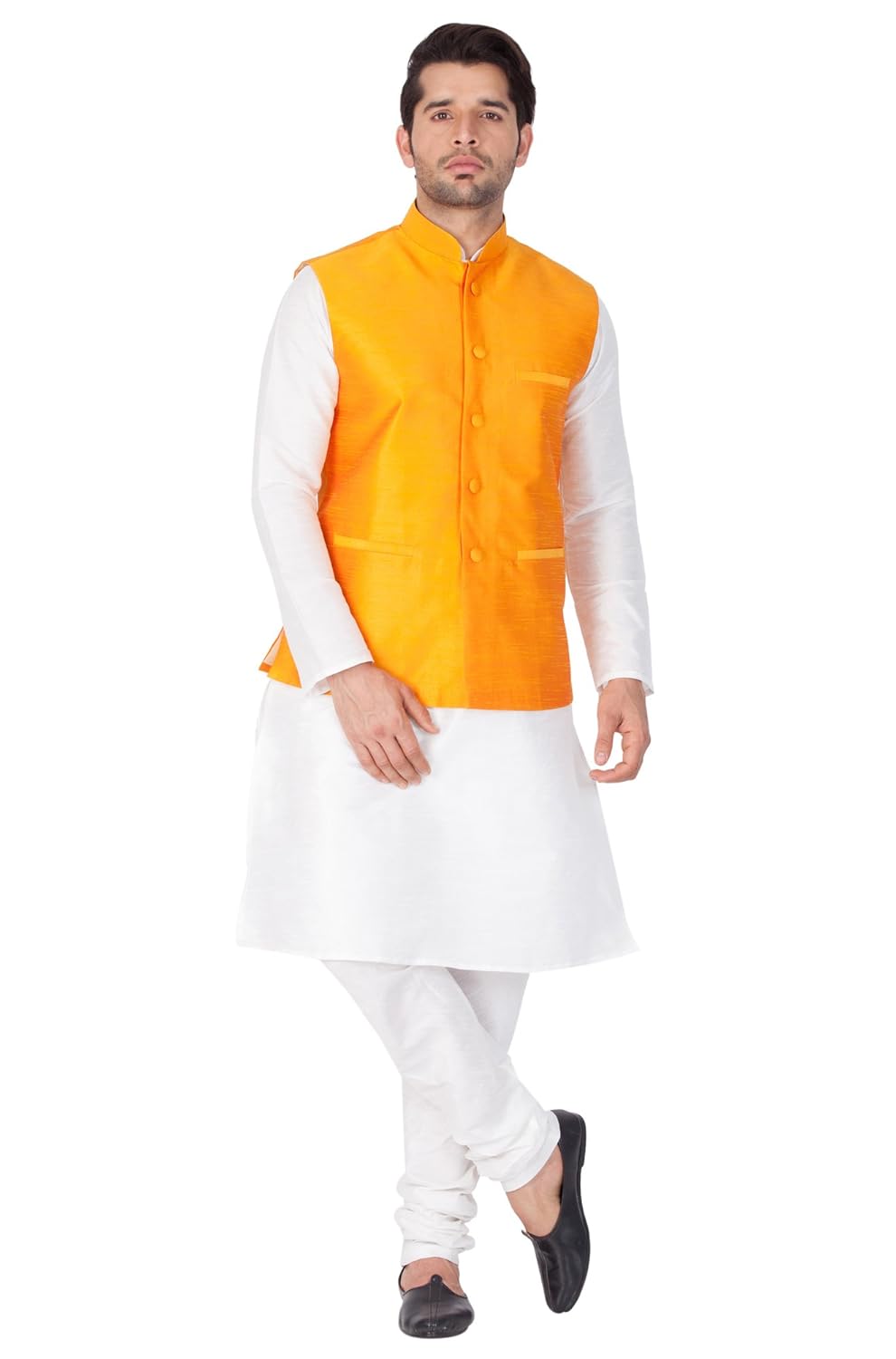 Vastramay brings to you this Stylish yet Comfortable Men White Men Cotton Silk Modi Jacket, a Cotton Silk Solid Kurta and Churidar Pyjama Set. . Adorn it for a perfect Classy & Trendy look. Pair it with a juti or a mojari for the Royal look. |