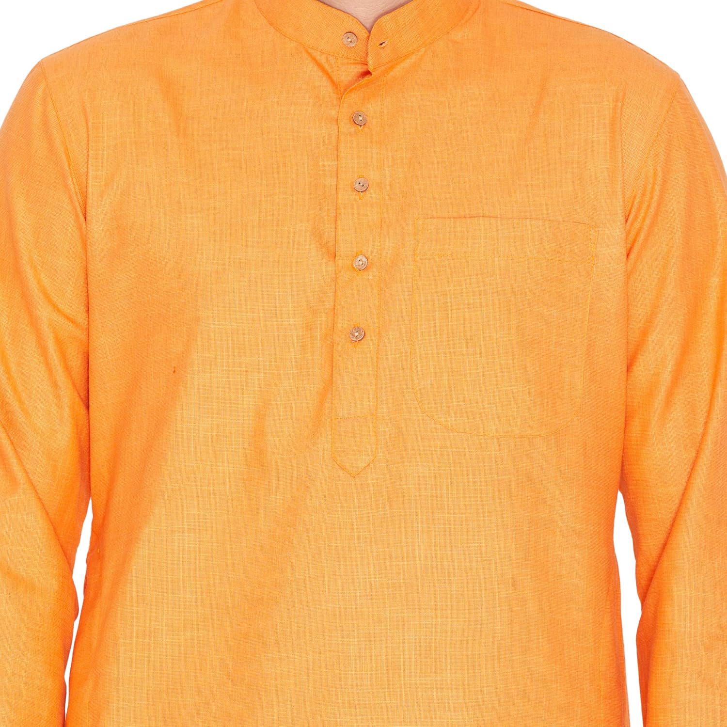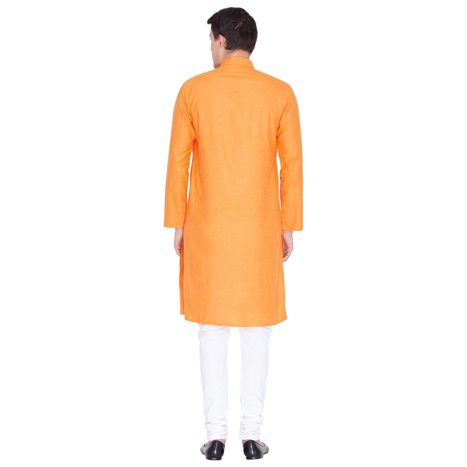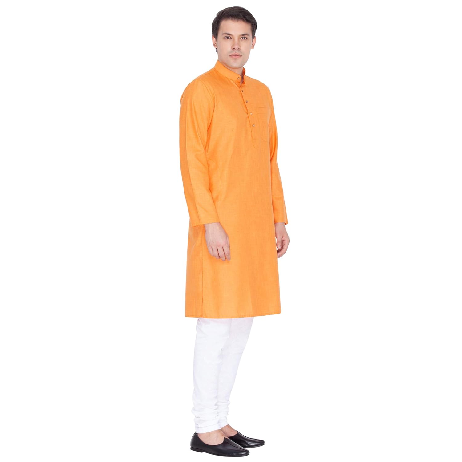 Vastramay brings to you this Stylish yet Comfortable Men Saffron and White Linen Cotton Solid Stylish Kurta and Churidar Pyjama Set. Adorn it for a perfect Classy & Trendy look. Pair it with a juti or a mojari for the Royal feel. |