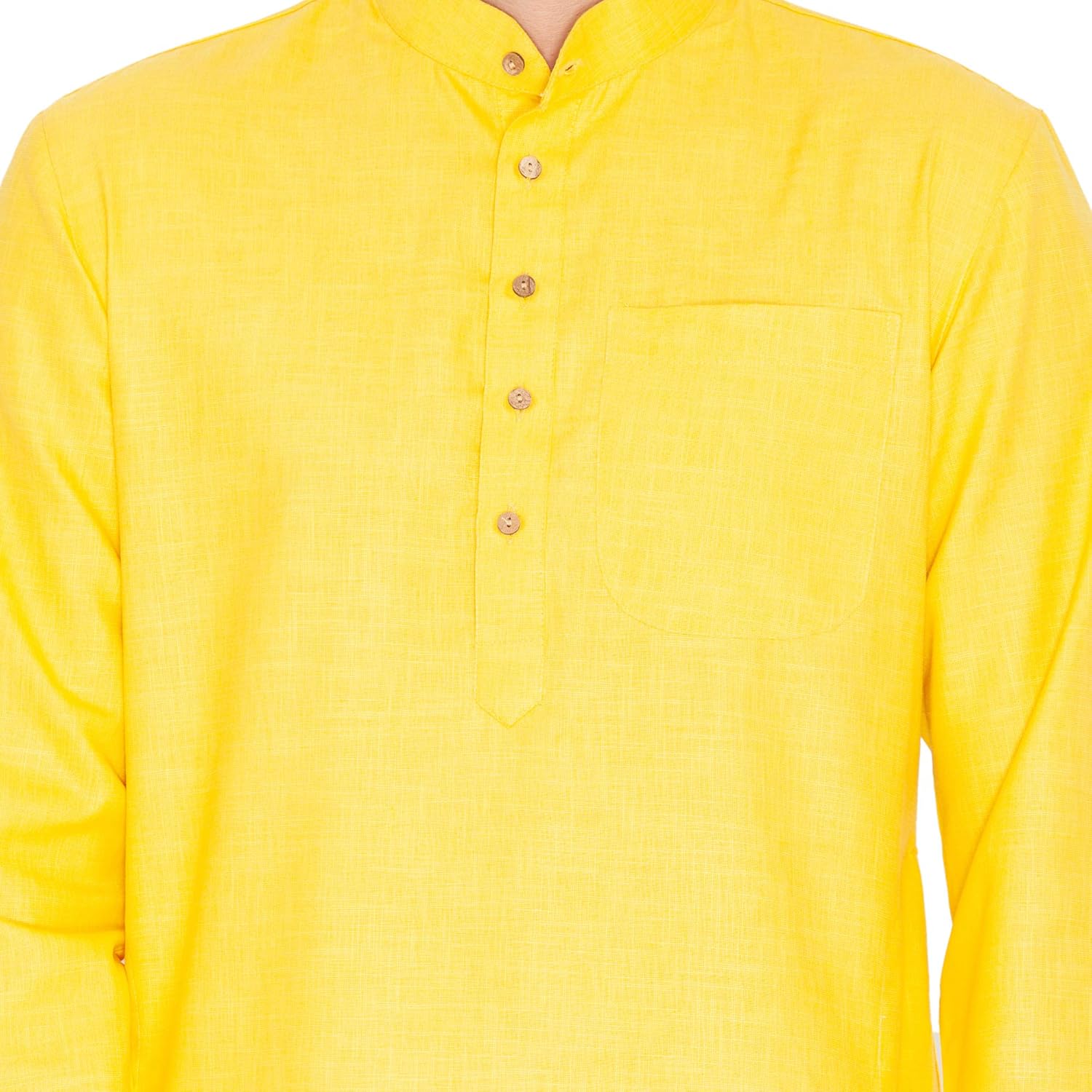 Vastramay brings to you this Stylish yet Comfortable Men Yellow and White Linen Cotton Solid Stylish Kurta and Churidar Pyjama Set. Adorn it for a perfect Classy & Trendy look. Pair it with a juti or a mojari for the Royal feel. |